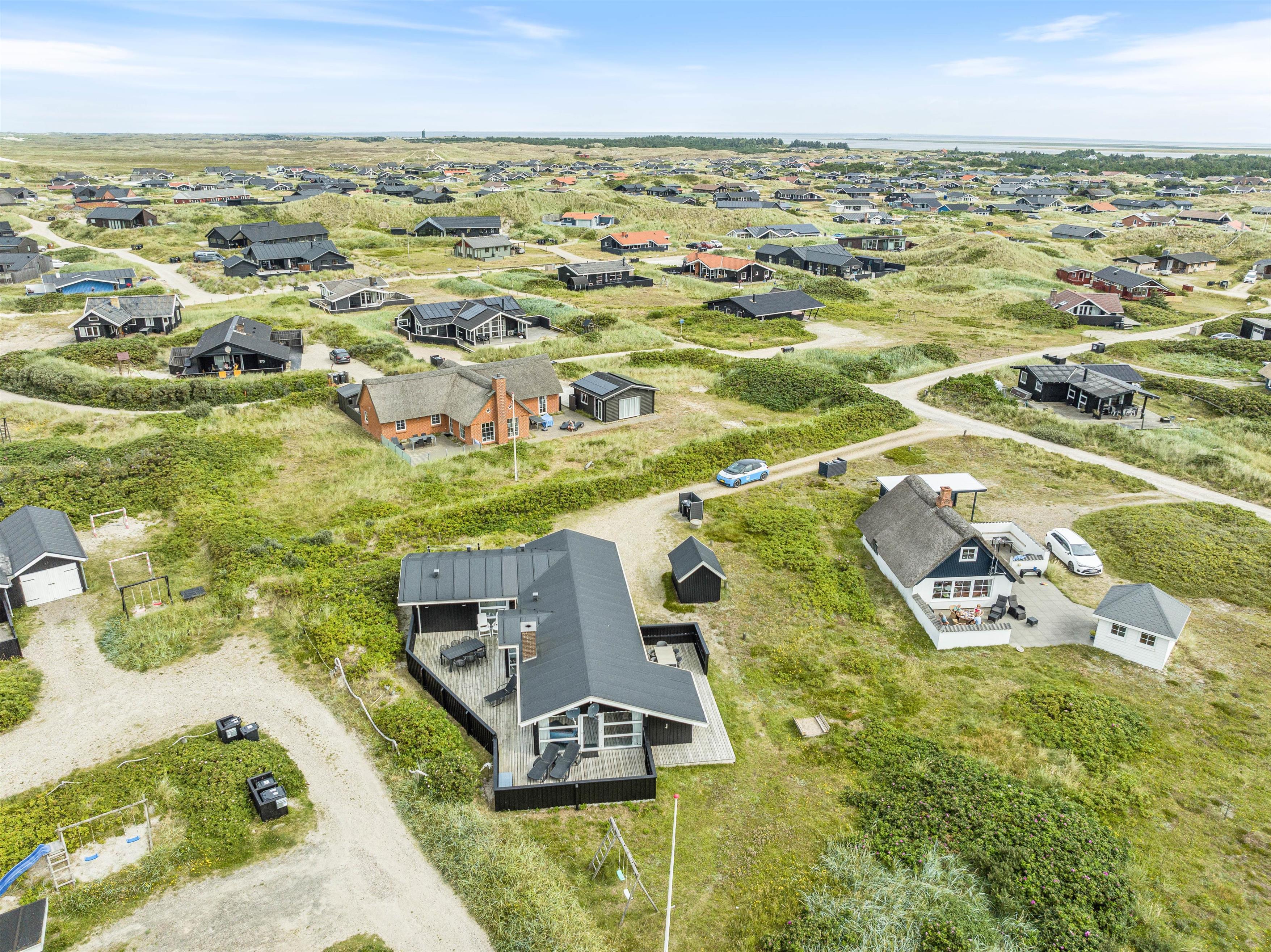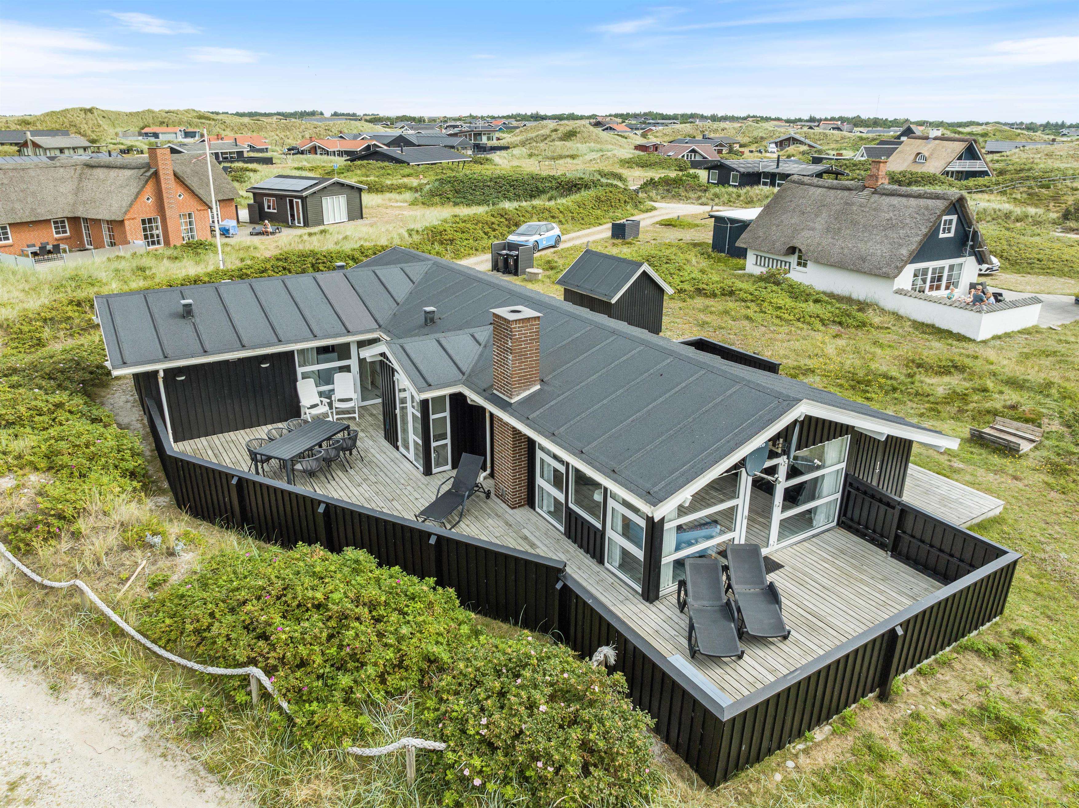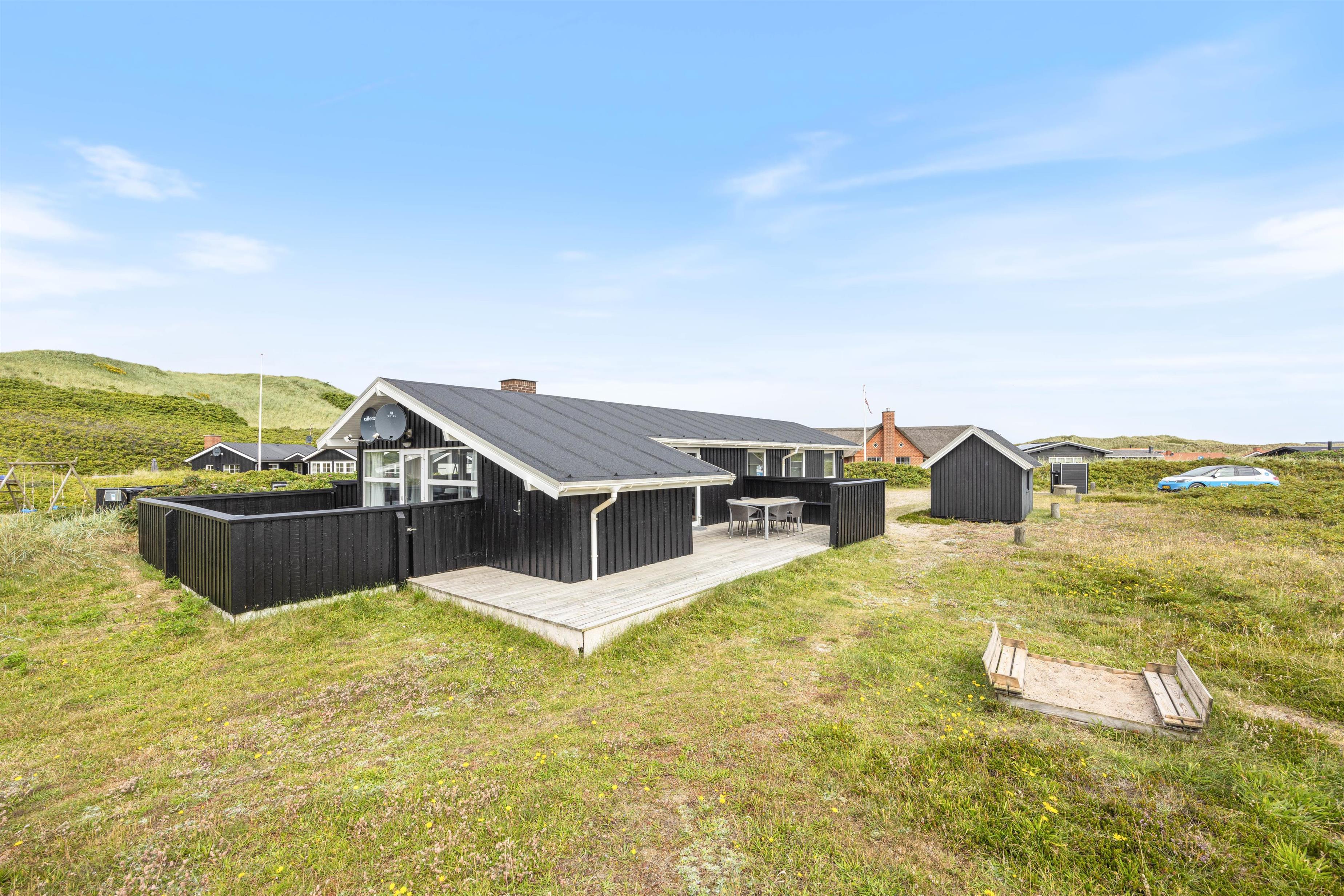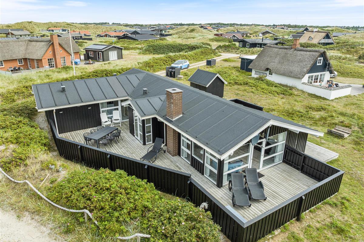 The unique location near the dunes in the beautiful natural setting of Holmsland Klit, close to the fishing village of Hvide Sande, makes this holiday home truly special.