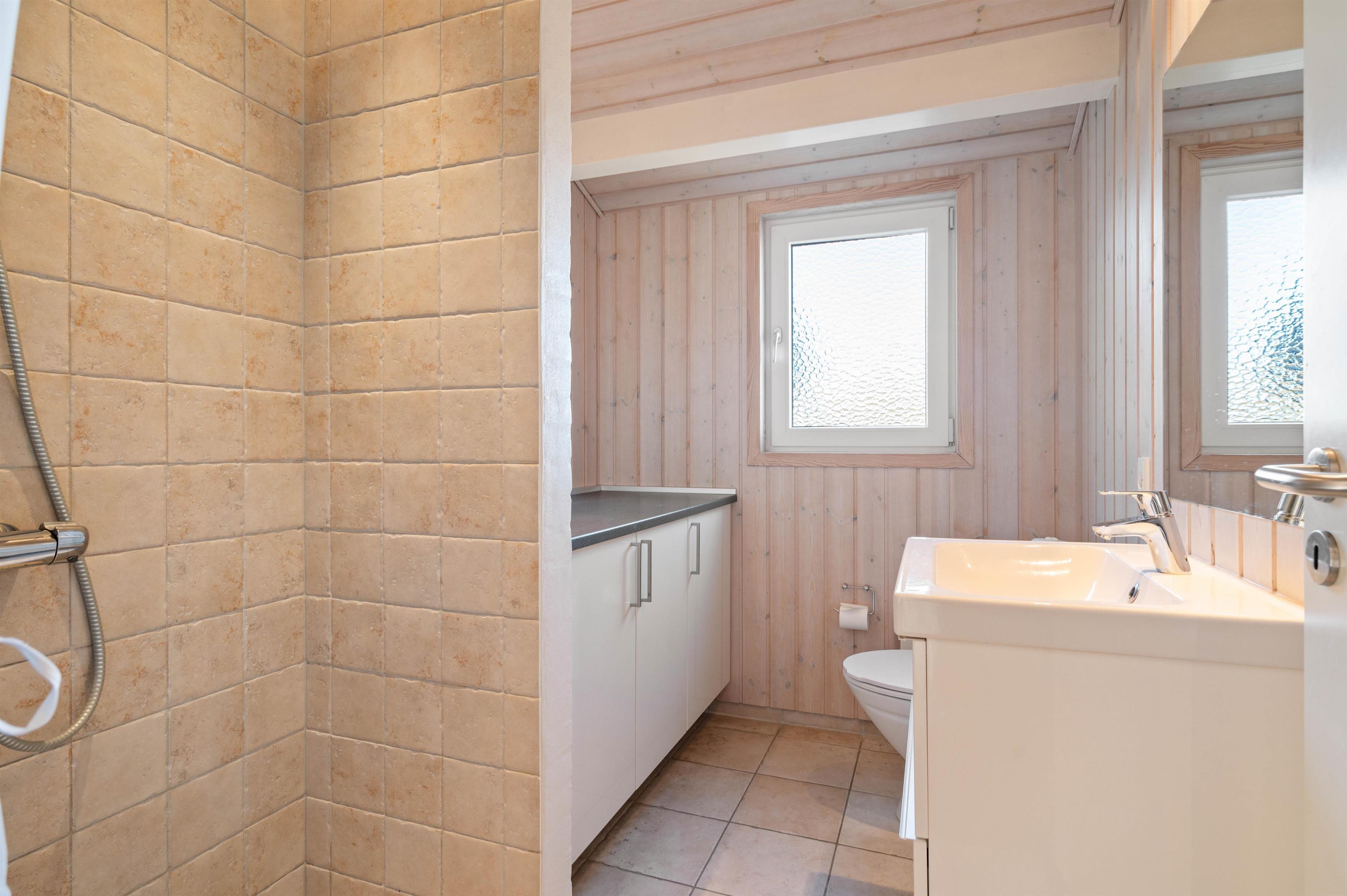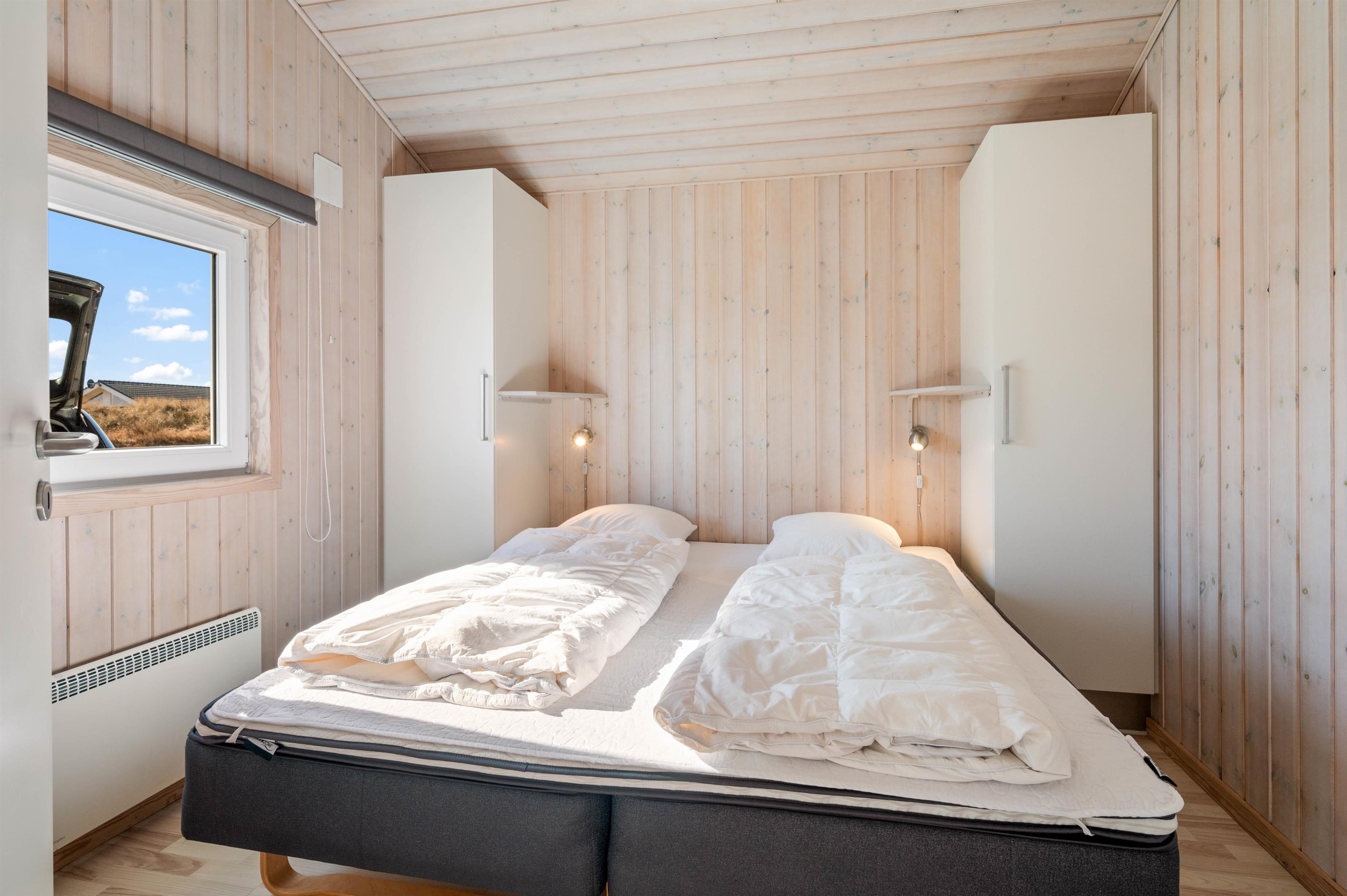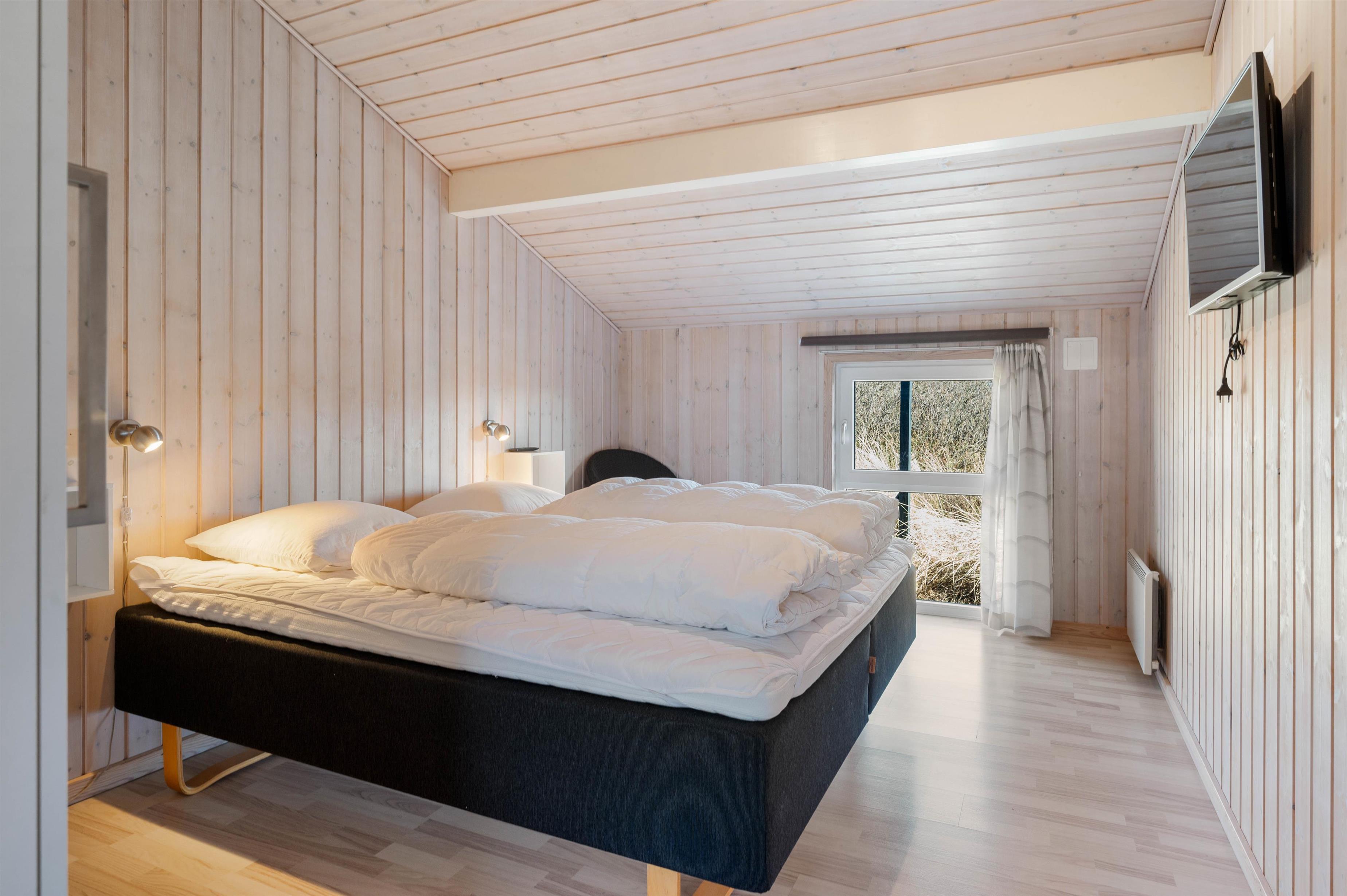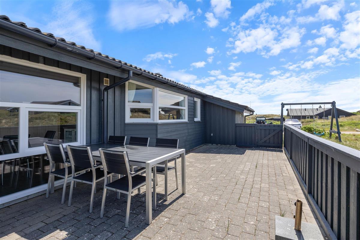 Stylishly furnished, this holiday home in Bjerregård radiates typical holiday charm. The living area features a beautiful wood-burning stove providing cosy warmth throughout the year. Spread across the sofa and armchairs, you can reflect on your day with everyone while enjoying a glass of wine and listening to the crackling of the fire.