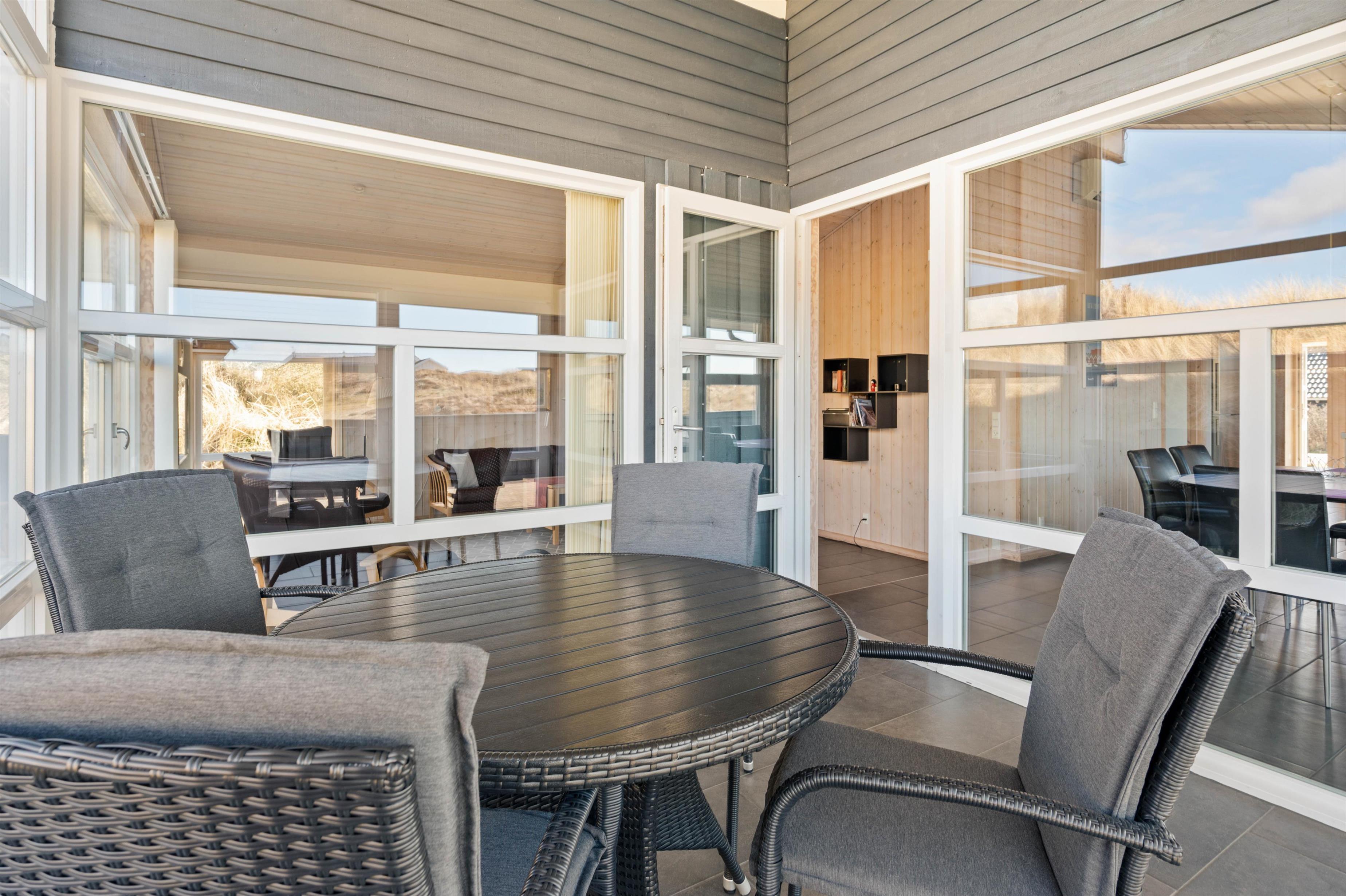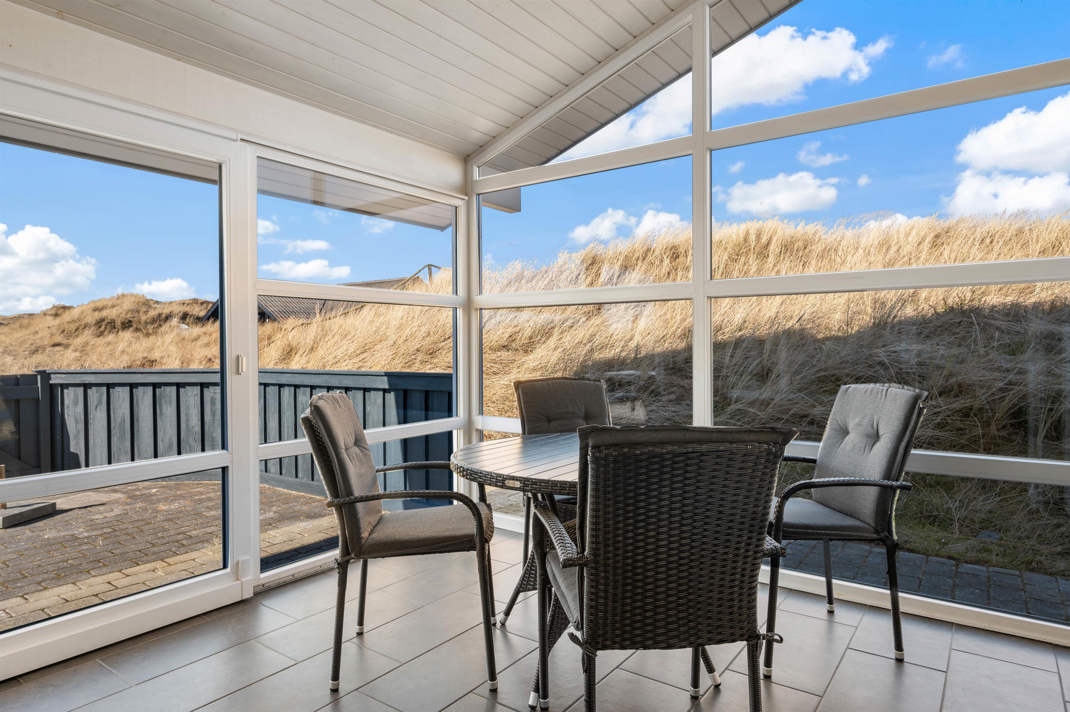The enclosed terrace is perfect for letting children and dogs enjoy some supervised outdoor time. Here you can relax on the sun lounger and enjoy the fresh air. Even on rainy days, you won't miss out on views of the dune landscape, as the cosy conservatory provides another perfect spot for relaxing with a book.