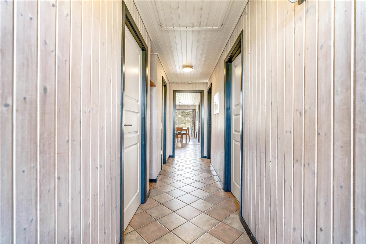 The heart of the holiday home at Nygårdsvej 37 is the living area with its wood-burning stove, providing cosy warmth on cooler days. Here you can settle in with a book or film. An energy-efficient heat pump ensures a comfortable temperature year-round.