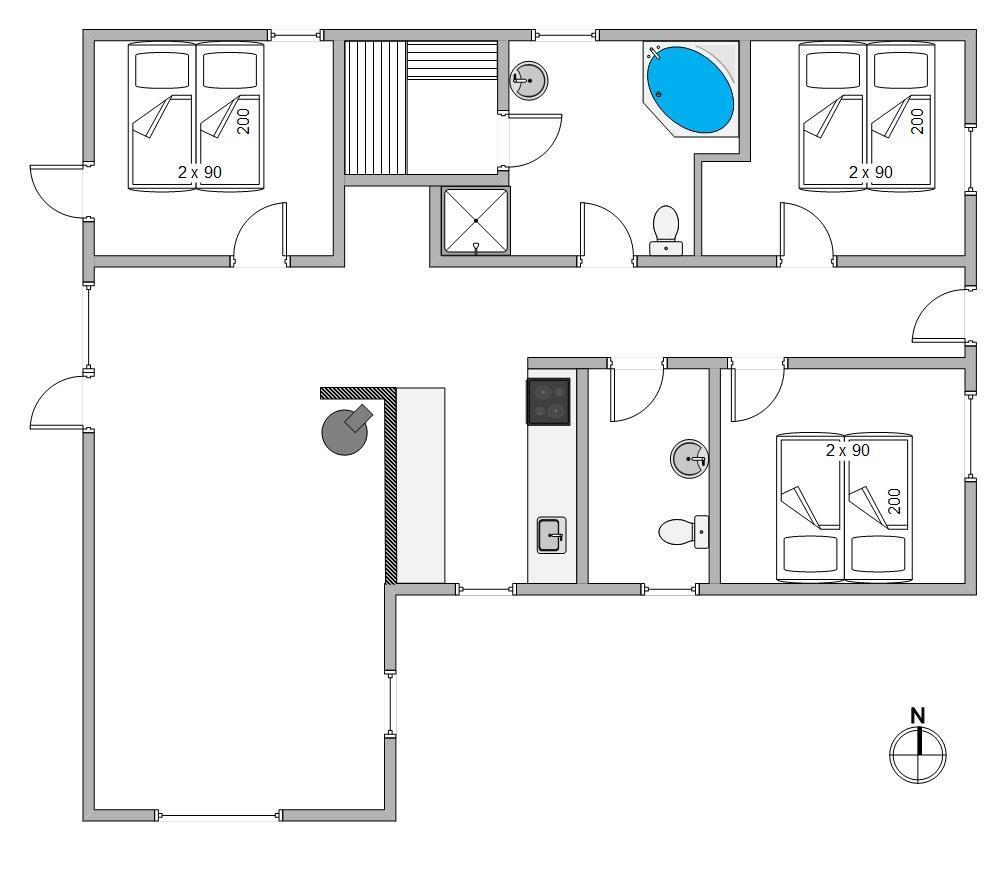 With three bedrooms, each featuring a double bed, the Bjerregård holiday home offers plenty of private space.