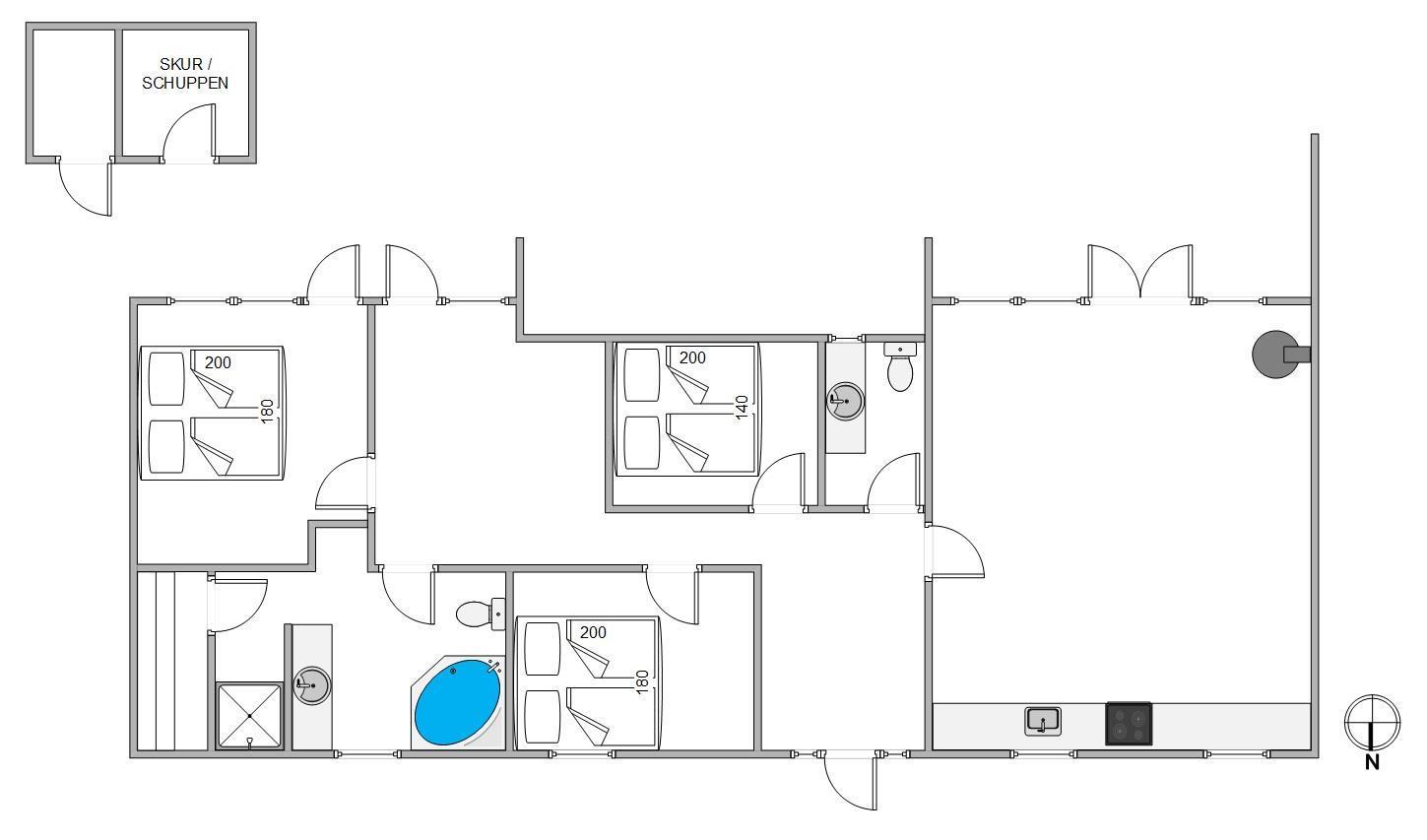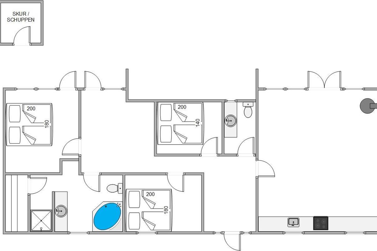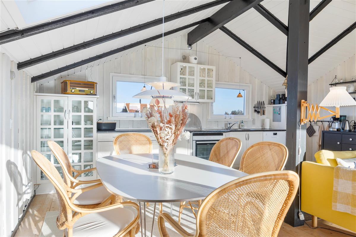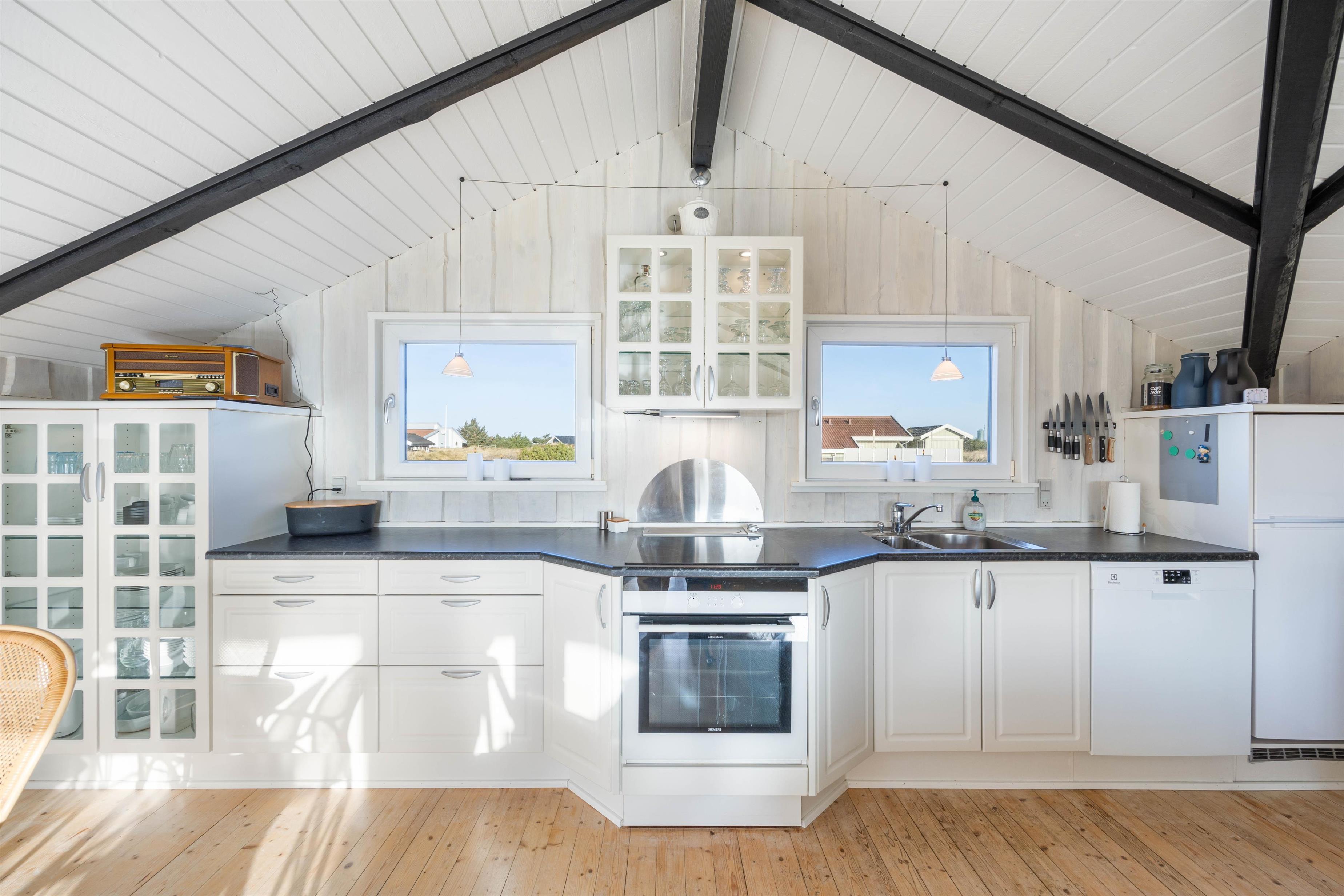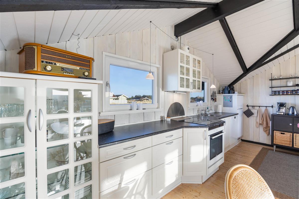 This splendid holiday home, in the northern part of Bjerregård, offers a beautiful, spacious living area with open-plan kitchen, comfortable seating and dining area, forming the heart of the summer house. Here you can cook together, enjoy board games at the dining table and snuggle up on the sofas while the wood crackles in the wood-burning stove. The holiday home receives three German TV channels.