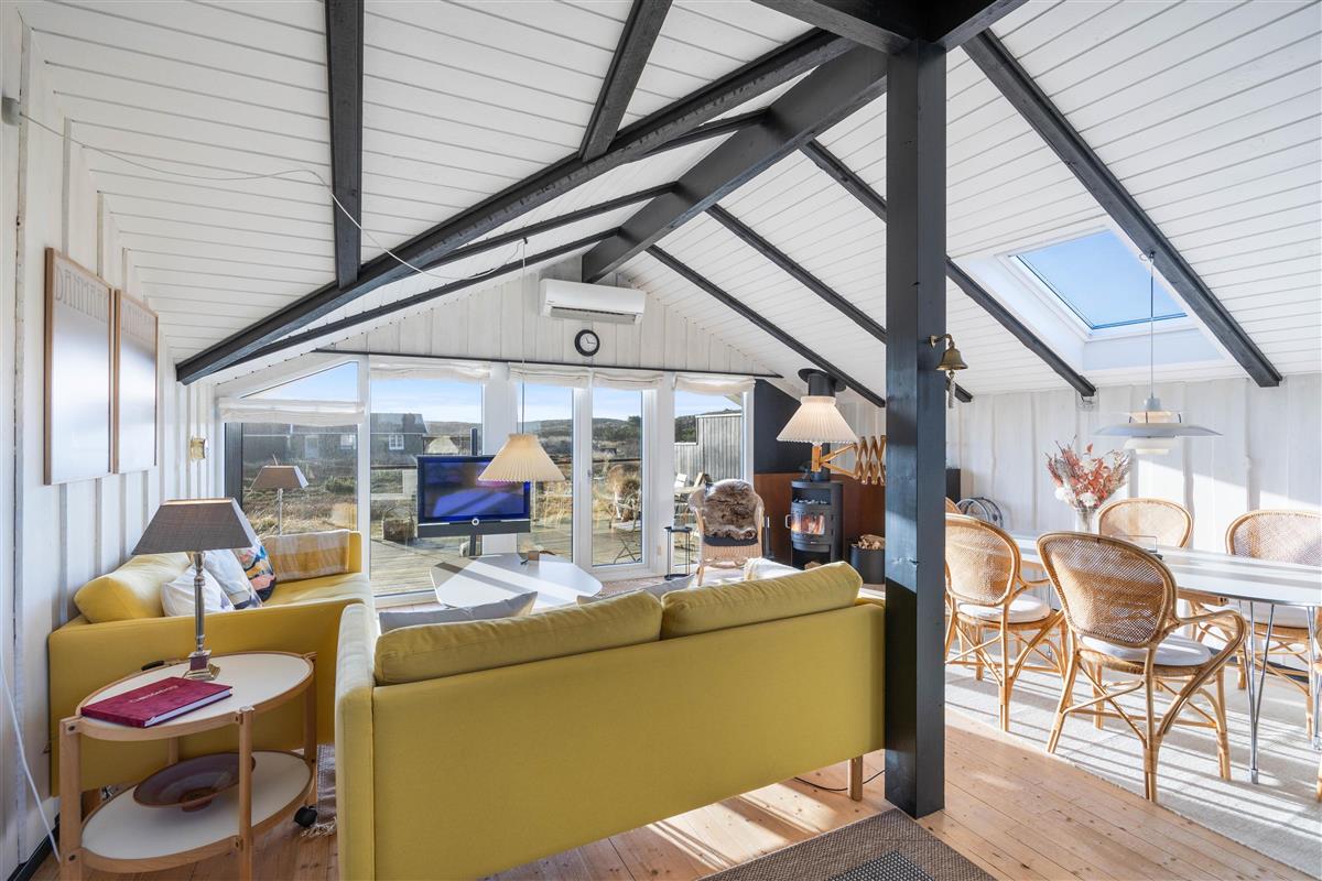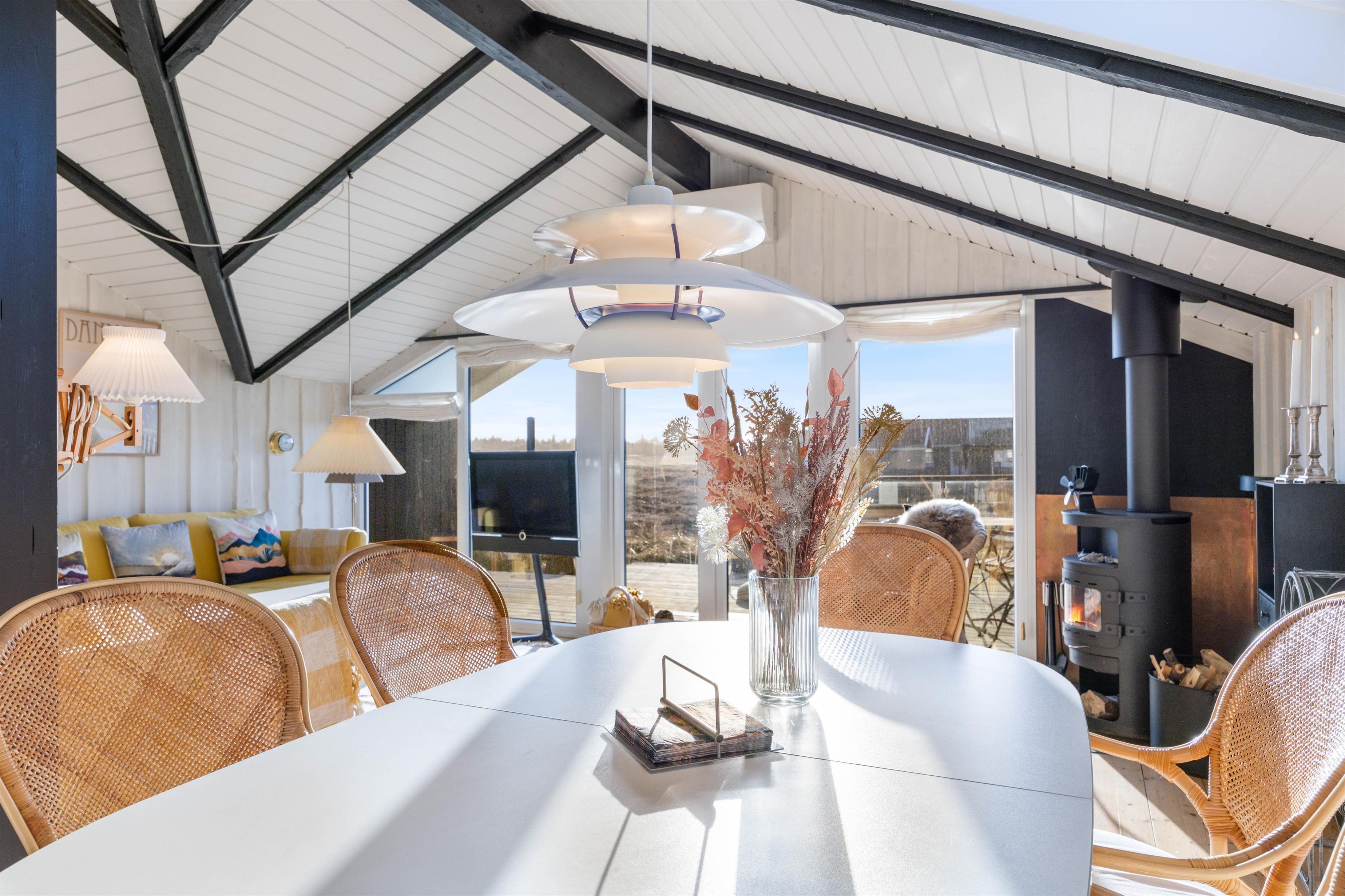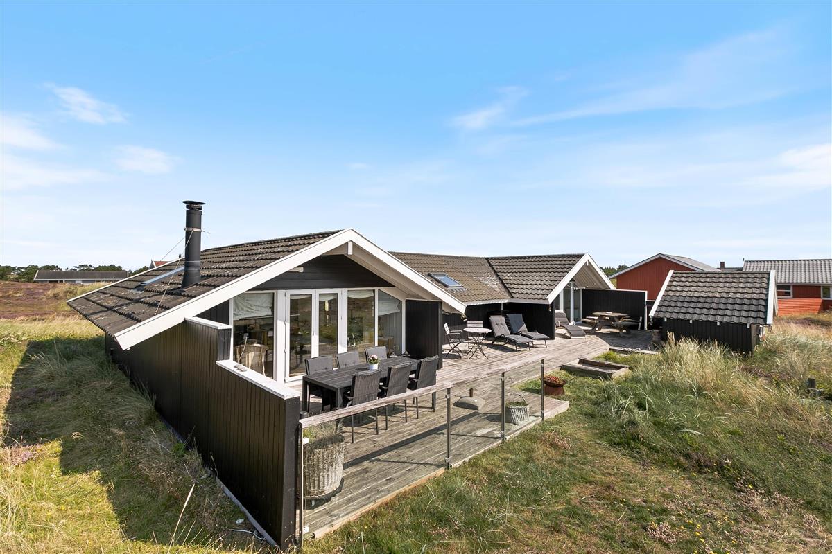 Looking for a typical Danish holiday home with sauna, hot tub and fireplace, where your two family dogs are welcome to join your holiday? Then this cosy holiday home at Bilbergsvej 65, on the Danish West Coast, is perfect for you. The 103 square metres are practically arranged, offering space and privacy for up to six guests. The spacious south-facing terrace is perfect for sunbathing and barbecue evenings.