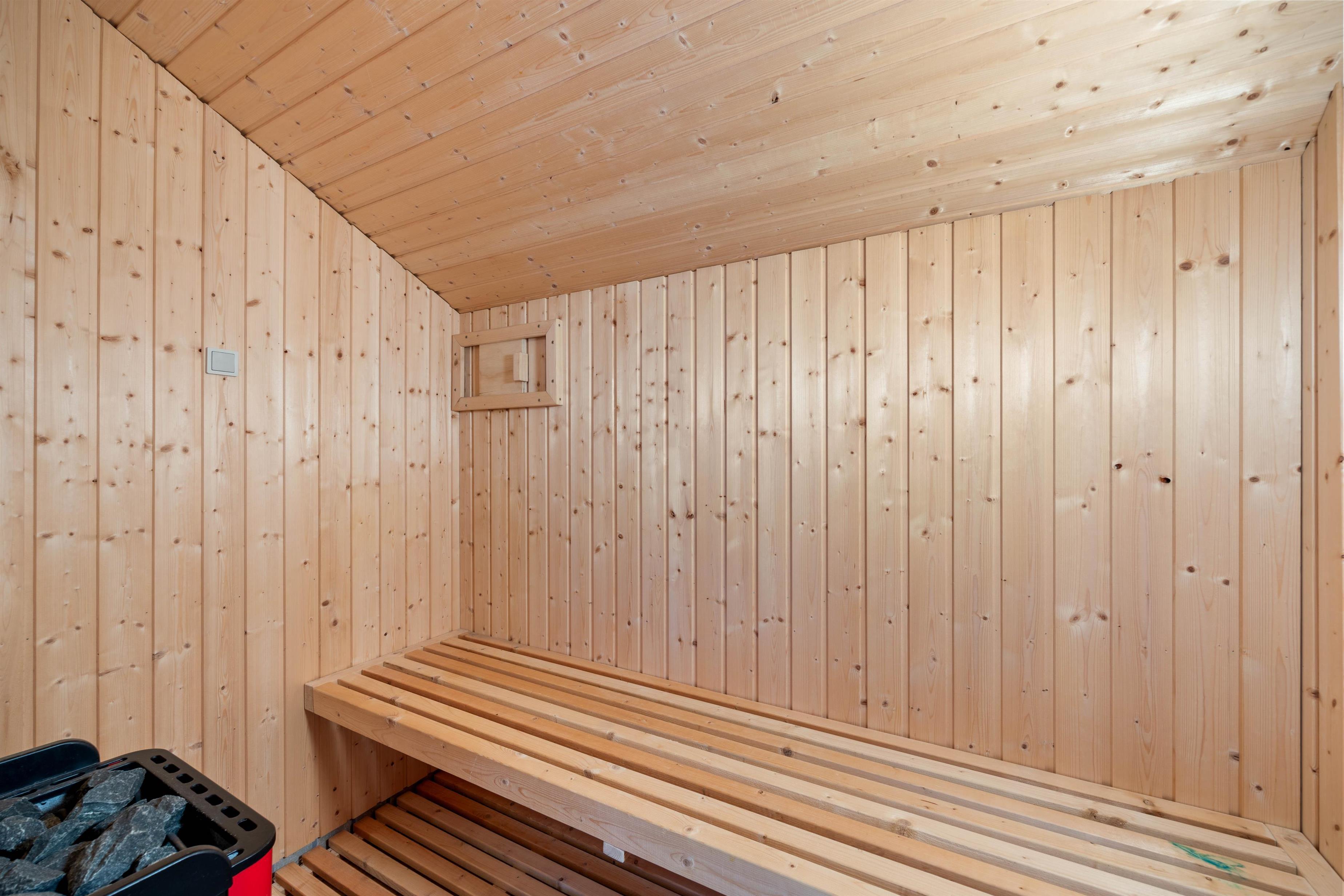 This well-equipped holiday home features both a full bathroom and a guest WC. You'll also find two practical household helpers in the form of a washing machine and tumble dryer. This ensures you'll always have fresh towels ready for a wellness evening in the sauna or after enjoying the hot tub. Here you can truly unwind and forget the stresses of everyday life.