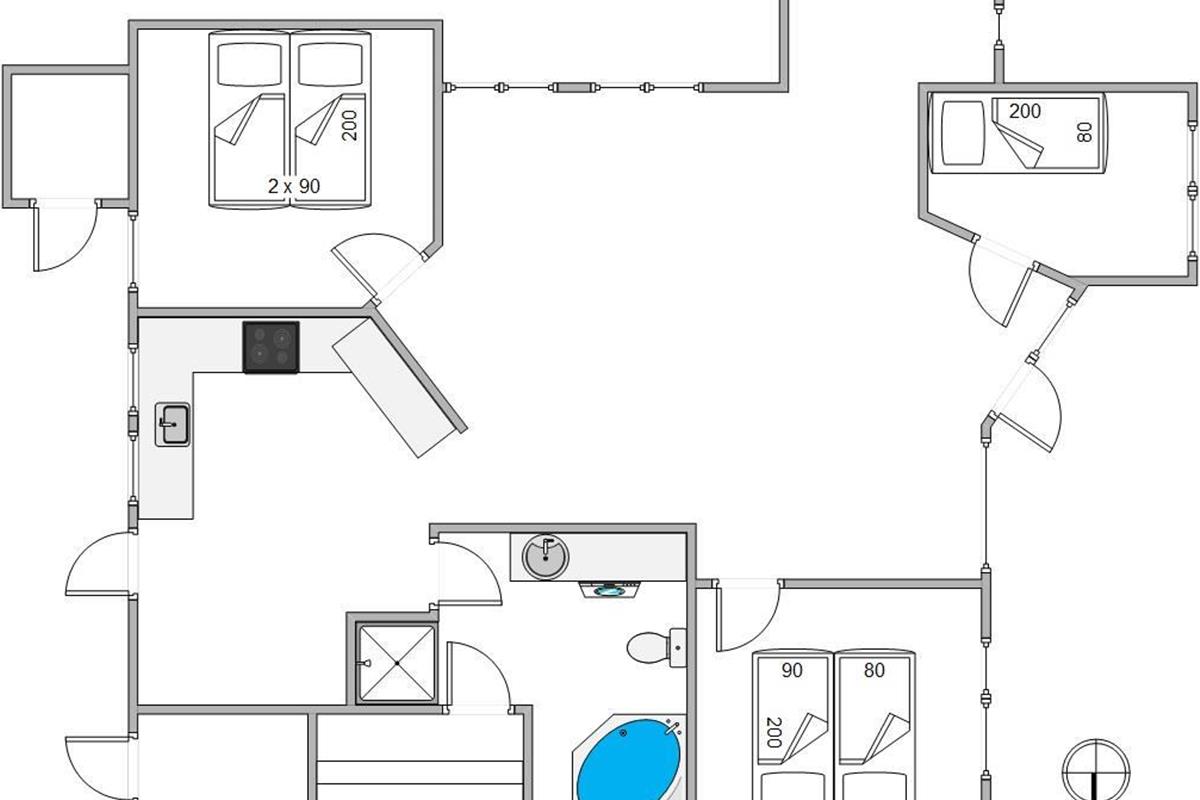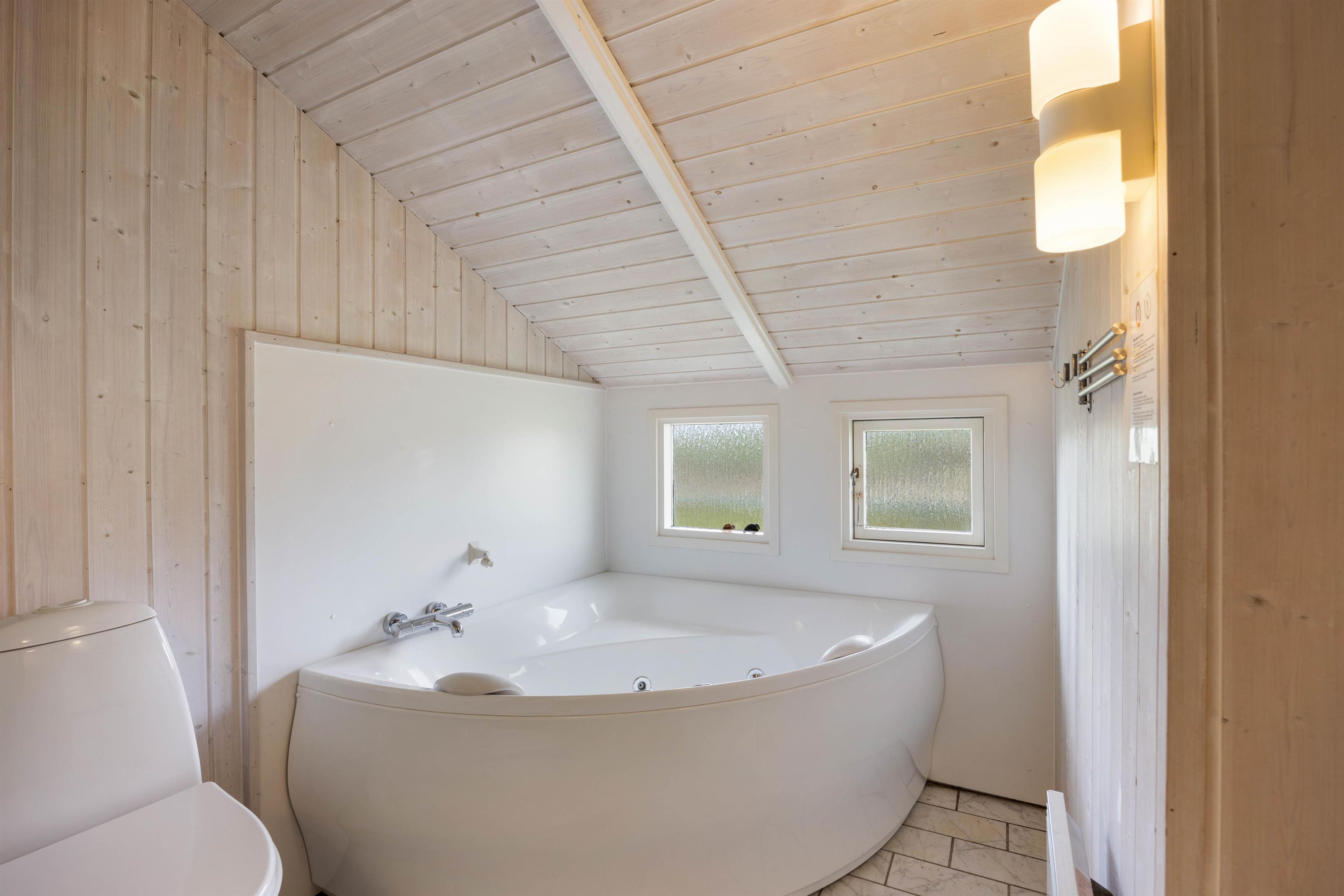 The area around the holiday home in Bjerregård offers numerous options for activities and outings. The sea and miles of sandy beach are just 150 metres away, waiting to be explored. The nearest shop is only 1,300 metres away, perfect for picking up fresh morning bread rolls or barbecue supplies.