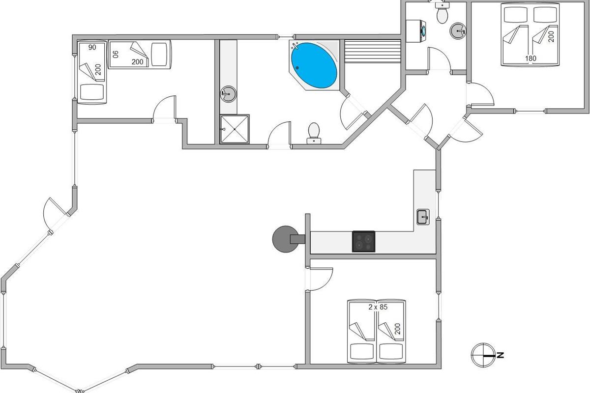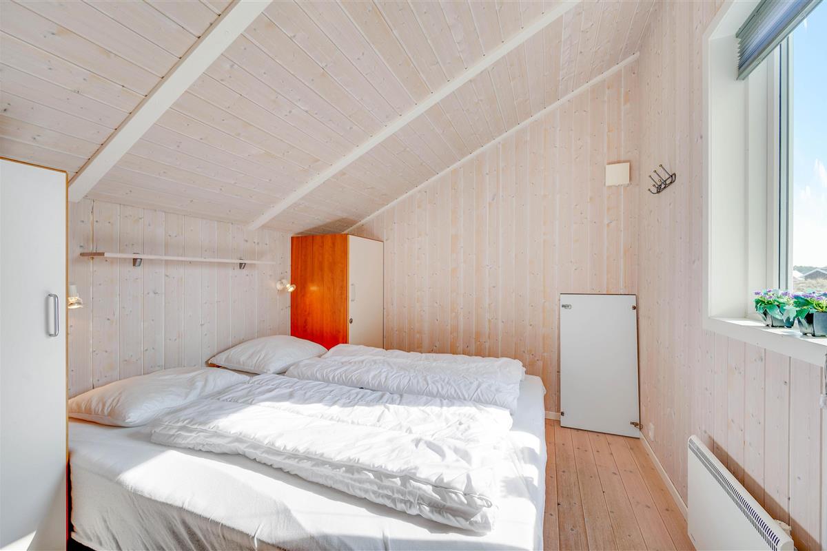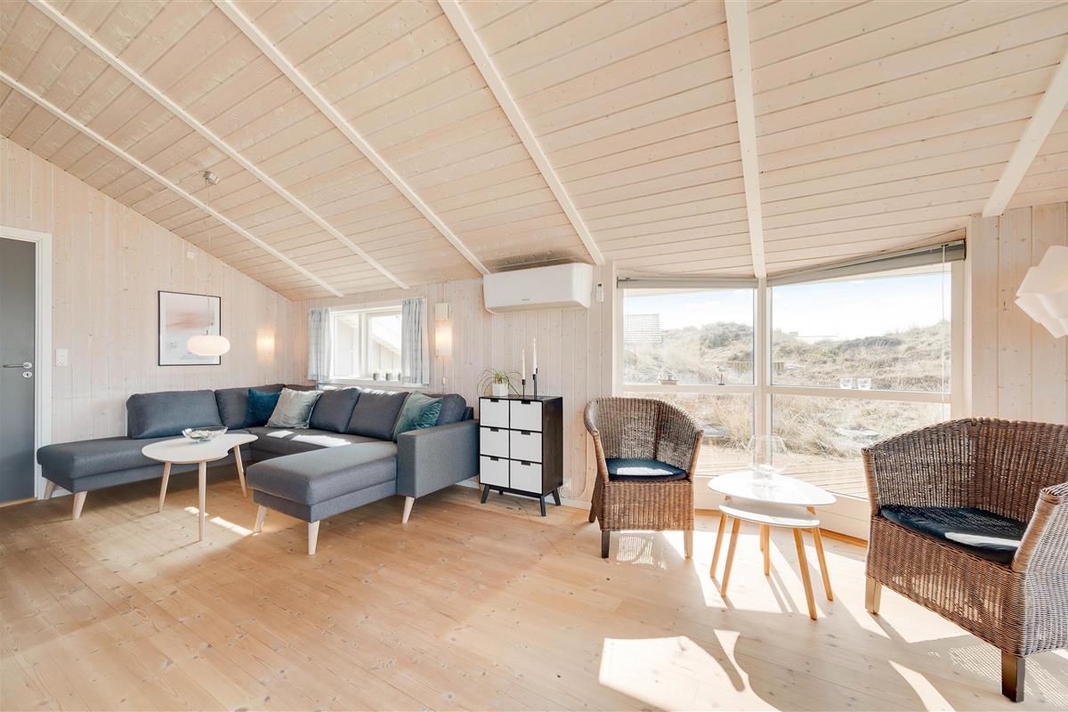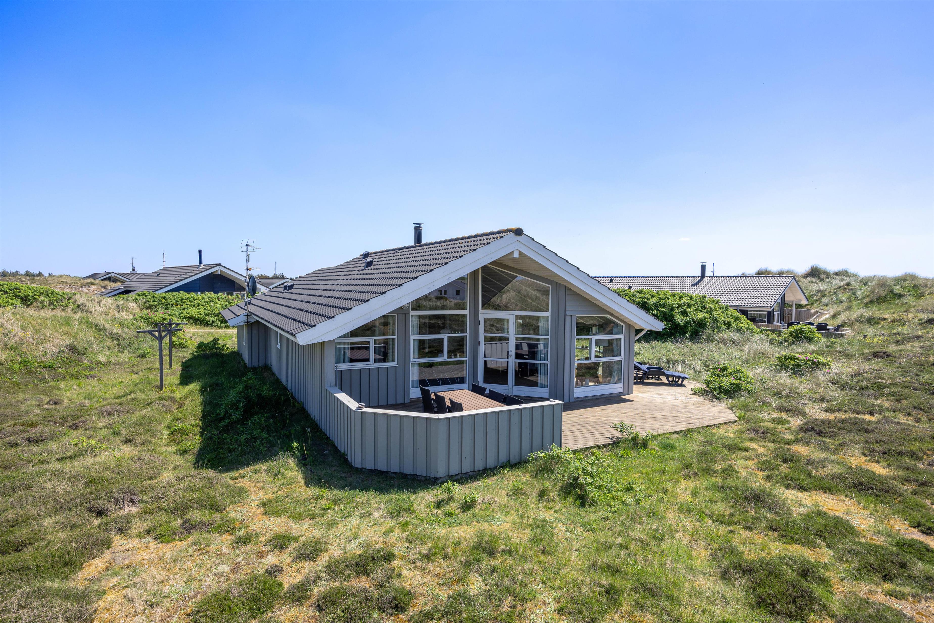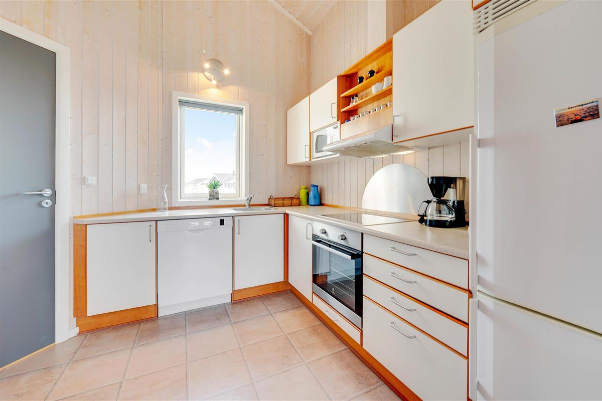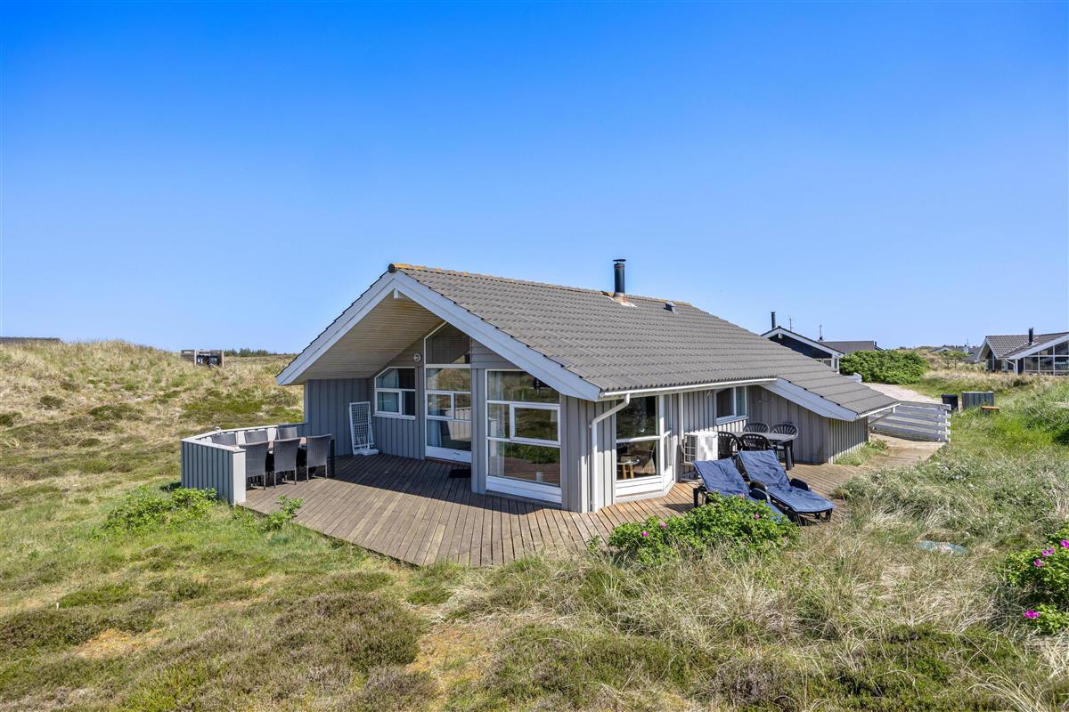 A truly beautiful and exceptionally well-maintained holiday home in a prime location on a naturally sheltered dune plot in Bjerregård, close to the beach and extensive heathland areas. The house accommodates 6 people in 3 bedrooms. All rooms are furnished with comfortable beds and wardrobes. There's a spacious bathroom with underfloor heating, whirlpool and sauna access, plus a small guest WC. The well-equipped kitchen opens onto the dining and living areas. The living room features wooden flooring and attractive furnishings, including a wood-burning stove. The holiday home also offers complimentary WiFi - simply bring your computer.