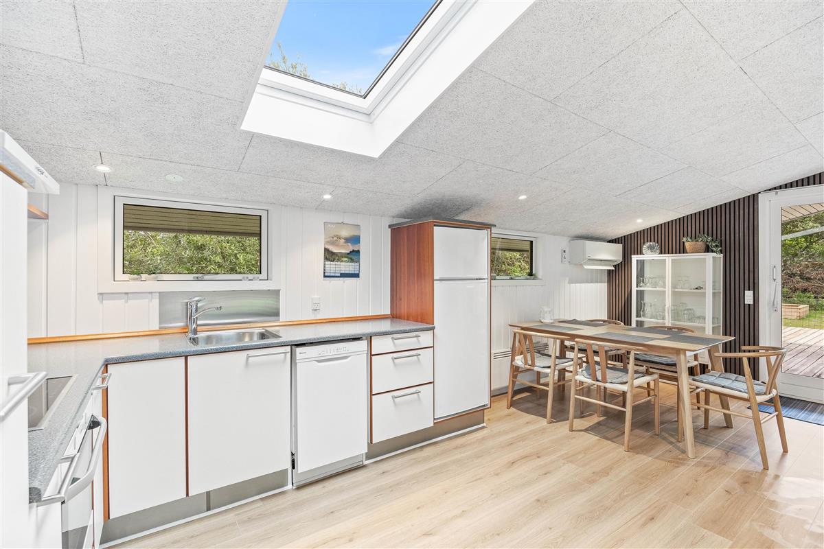 The holiday home is situated in the peaceful and naturally beautiful setting of Bjerregård, just 850 metres from the North Sea. A short walk takes you to the beach, where you can swim, sunbathe or enjoy long walks along the shore. For daily shopping needs, the nearest shop is only 500 metres away, making it convenient to get all your essentials.
