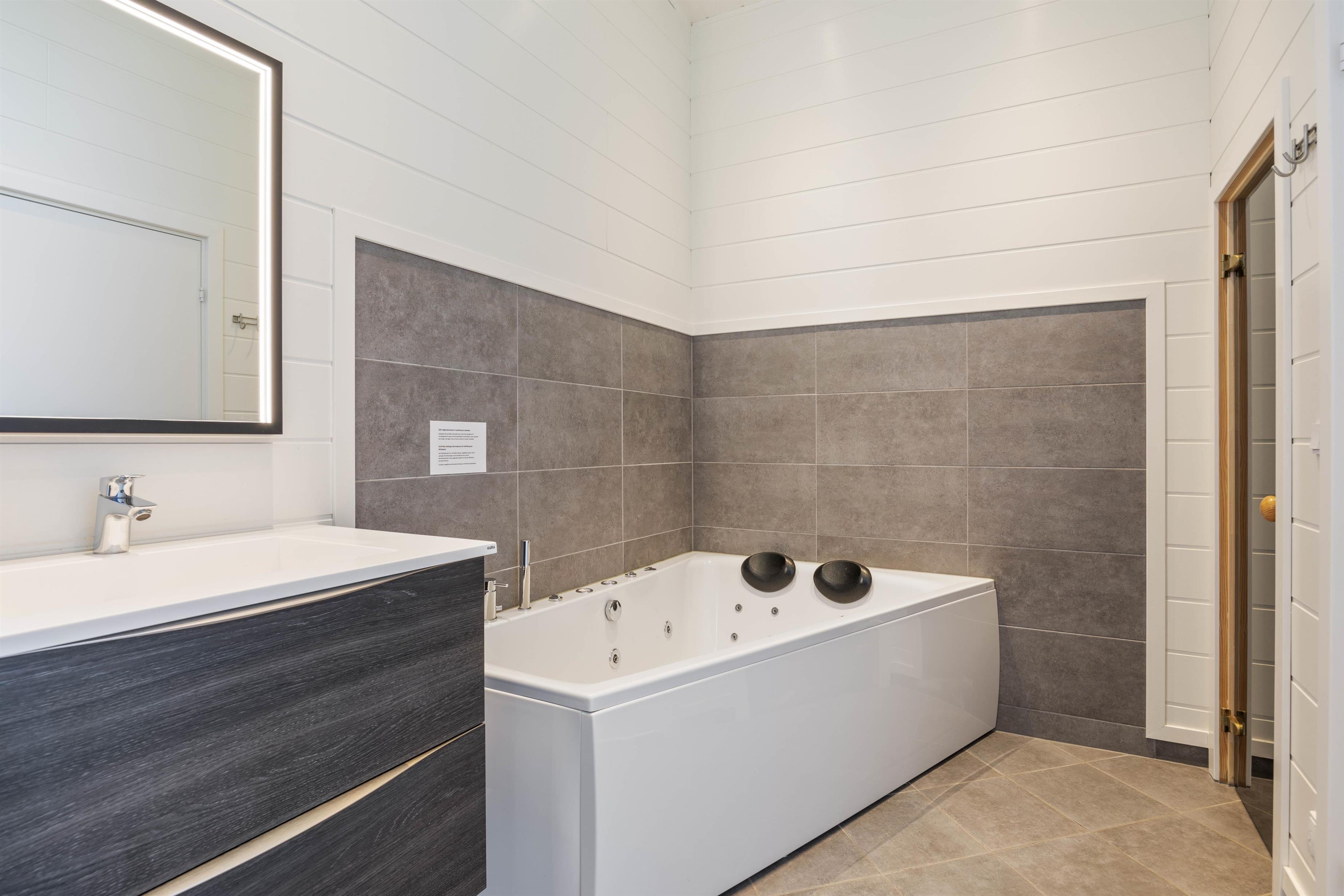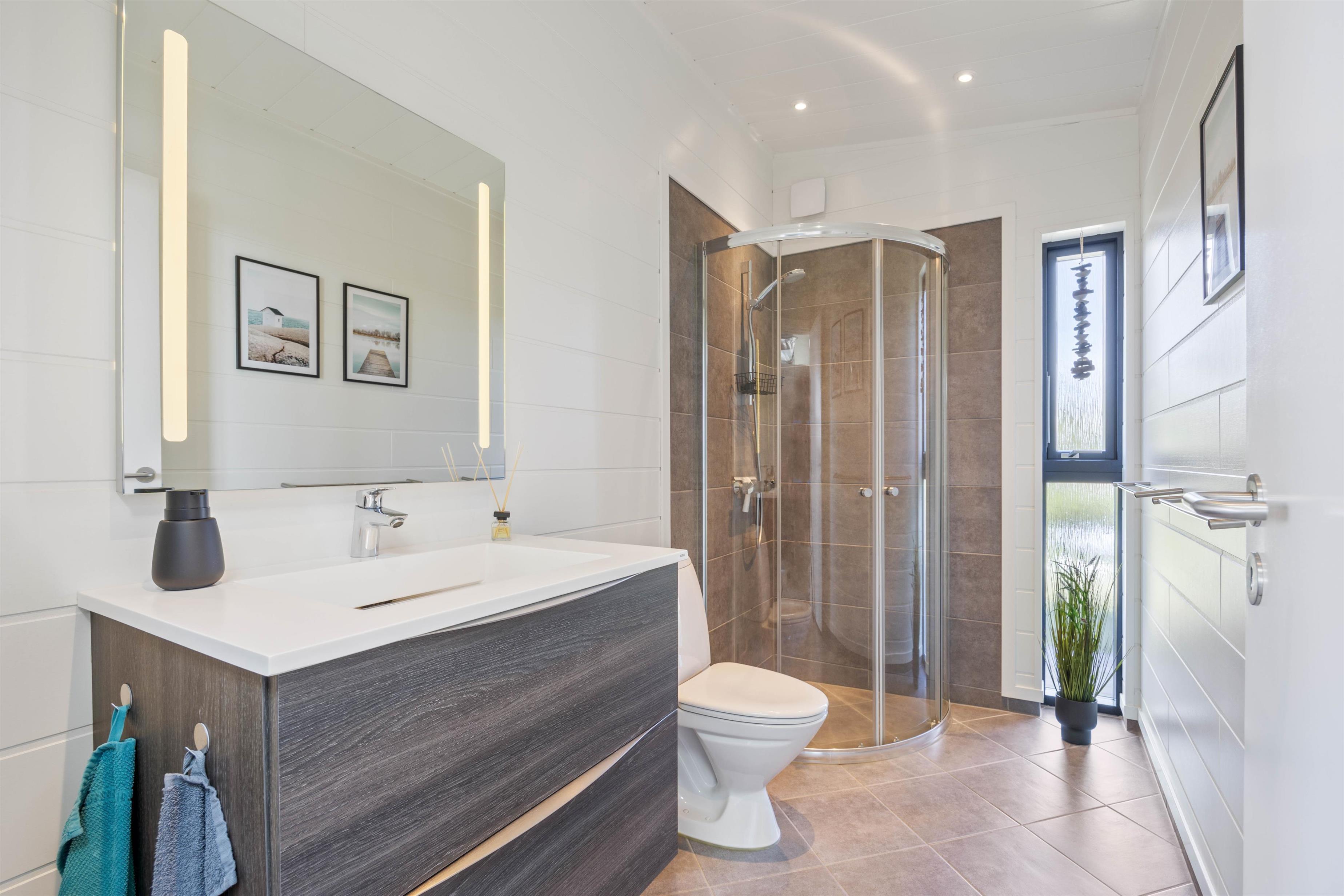 The holiday home features laminate flooring throughout, creating a pleasant and comfortable atmosphere in the living spaces. A heat pump and excellent insulation keep energy consumption and electricity costs low.