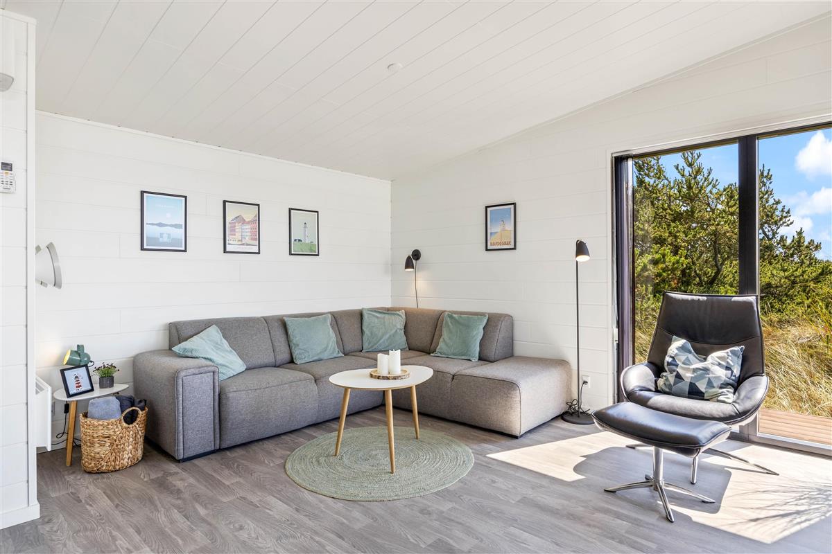 The holiday home features modern, high-quality and comfortable furnishings, providing an ideal base for a relaxing, premium holiday on the Danish North Sea coast.