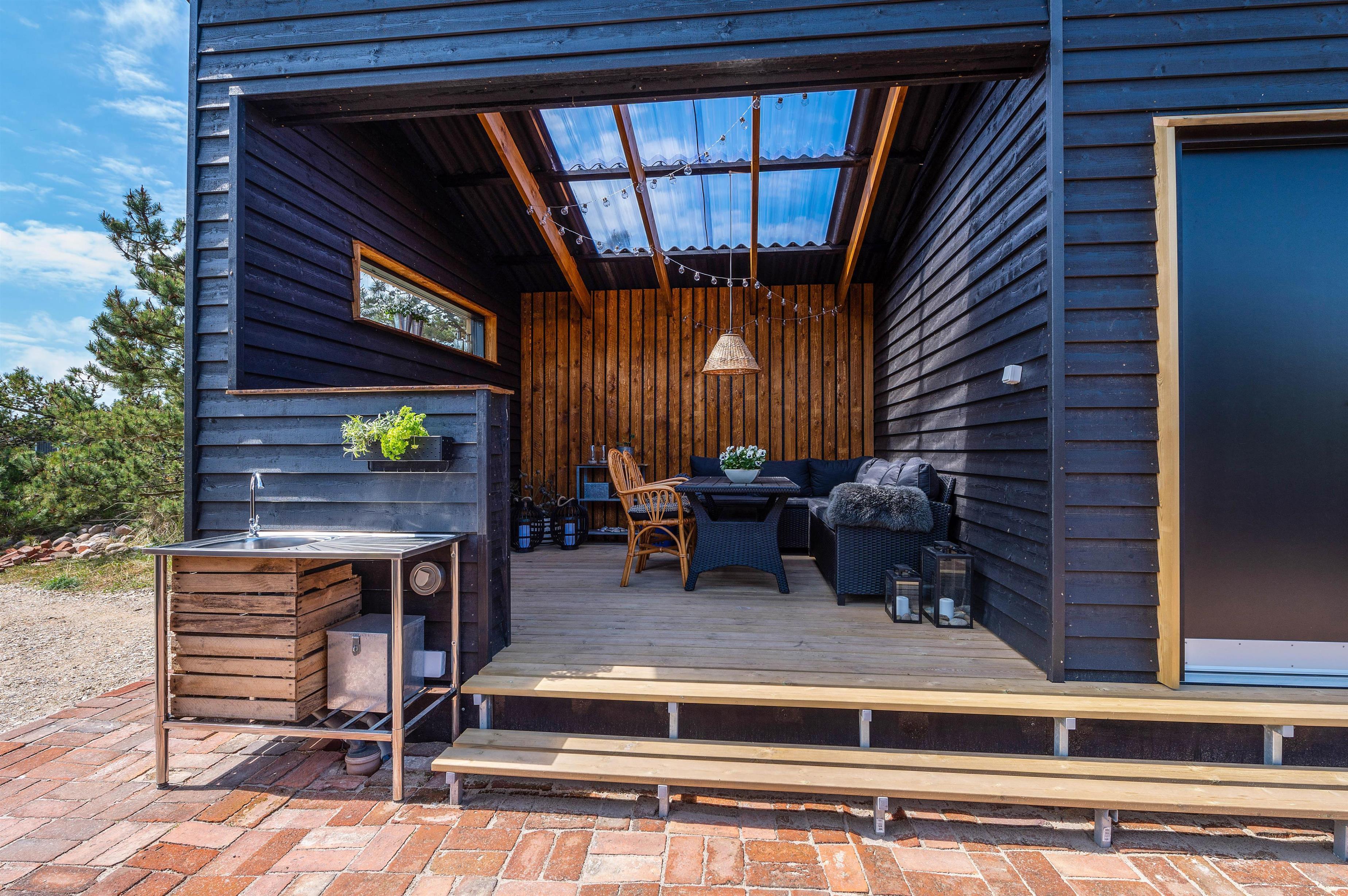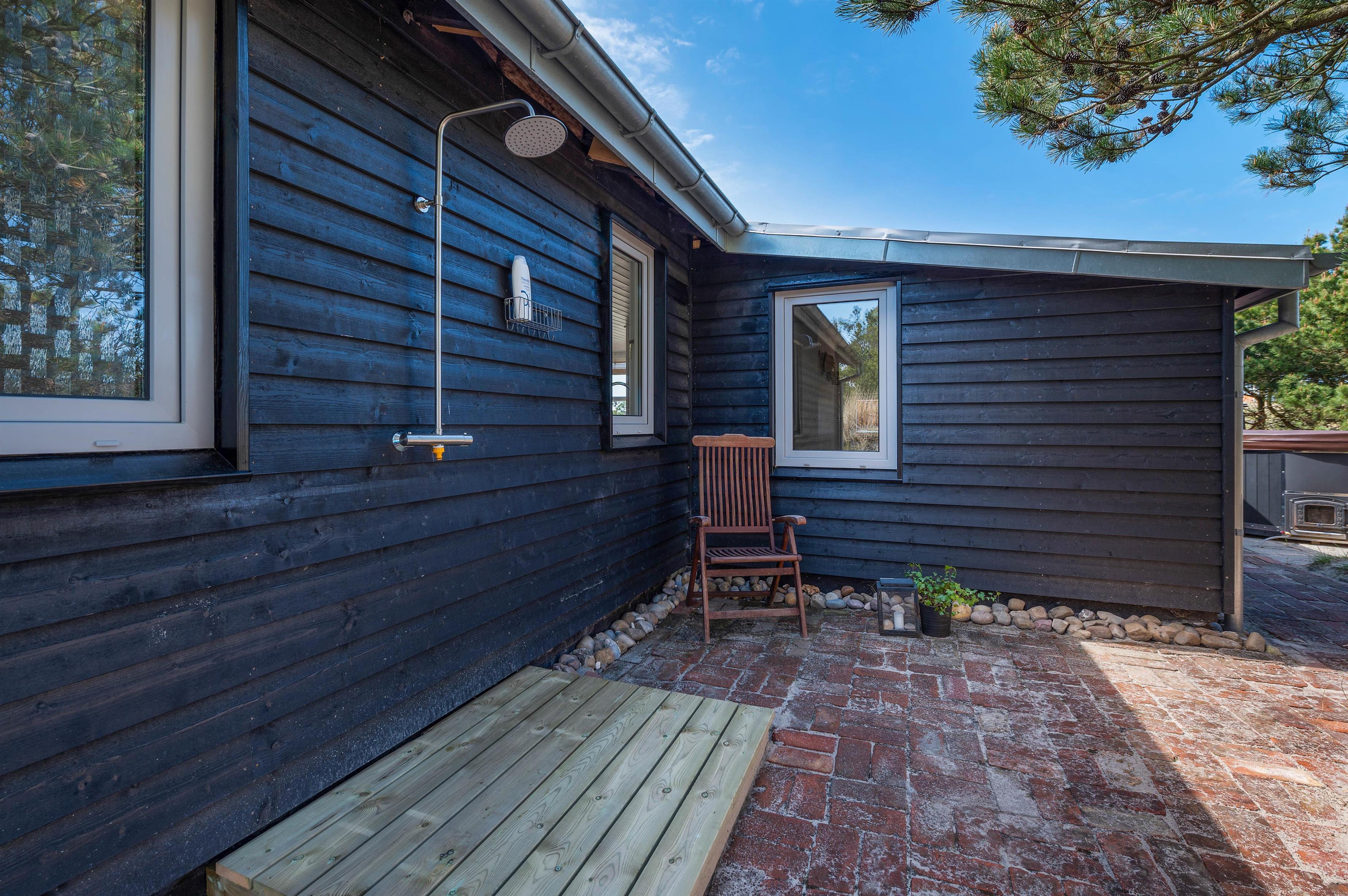 If it gets too warm, an outdoor shower at the holiday home offers perfect cooling relief (available from April to November). For evening relaxation under the stars, there's a heatable Nordic hot tub right in the garden. A lovingly decorated covered terrace on the western side of the holiday home invites you to end your day with a barbecue by candlelight.