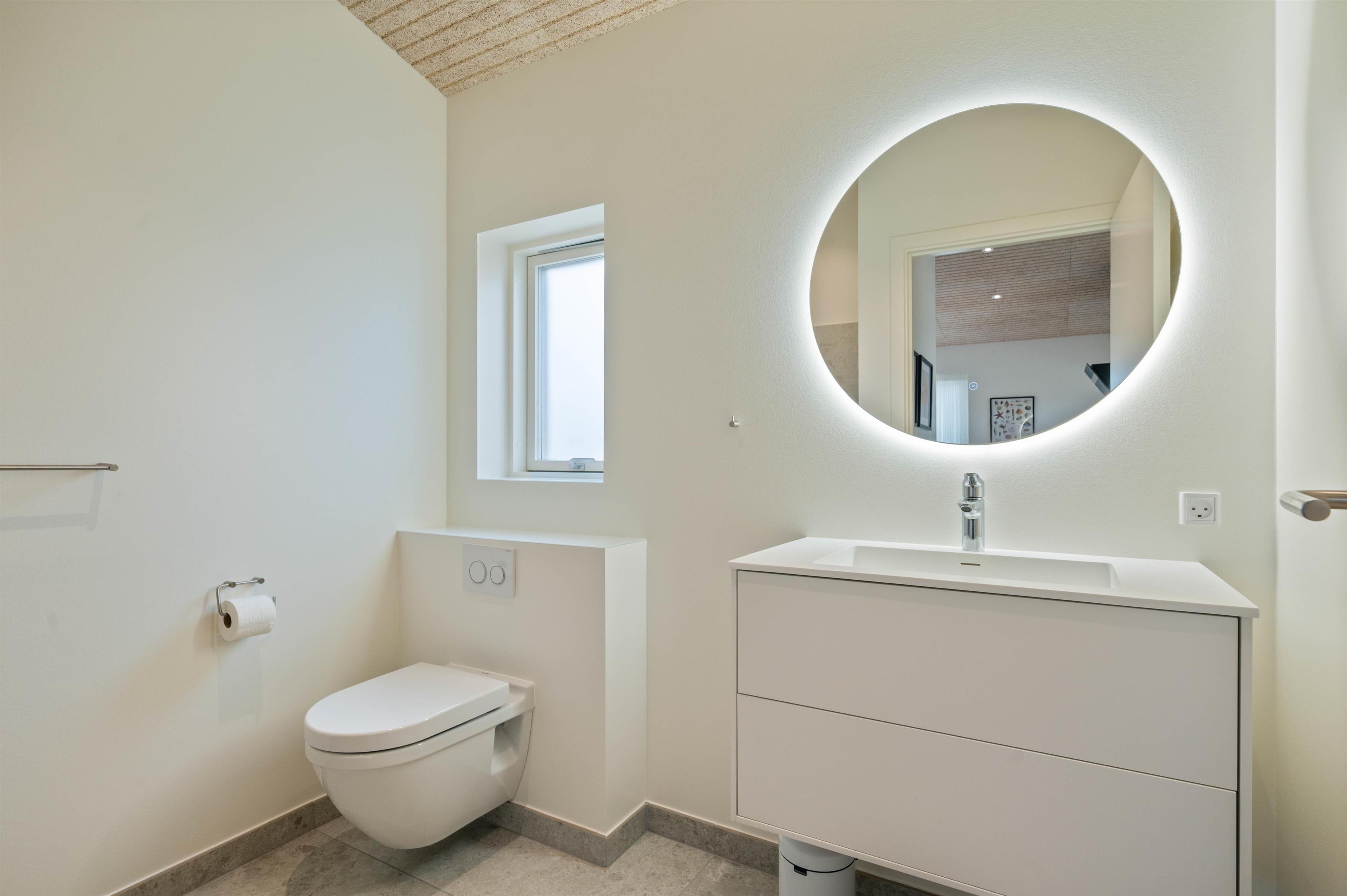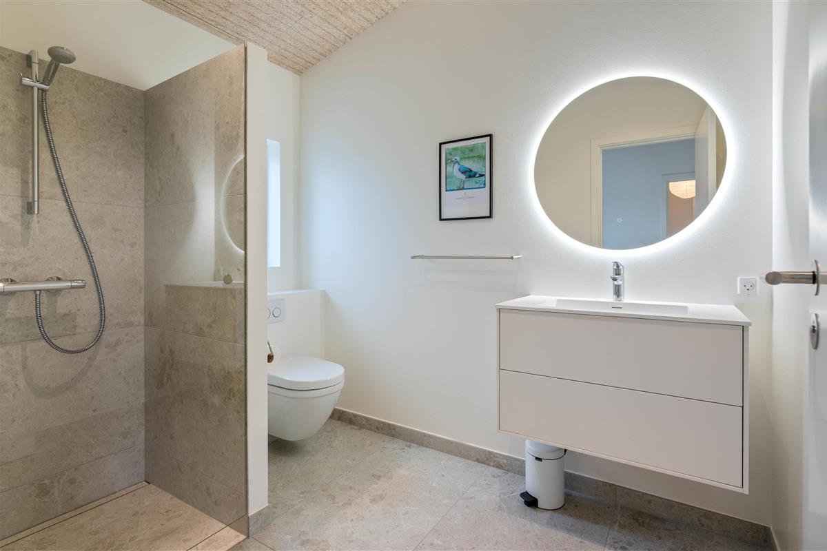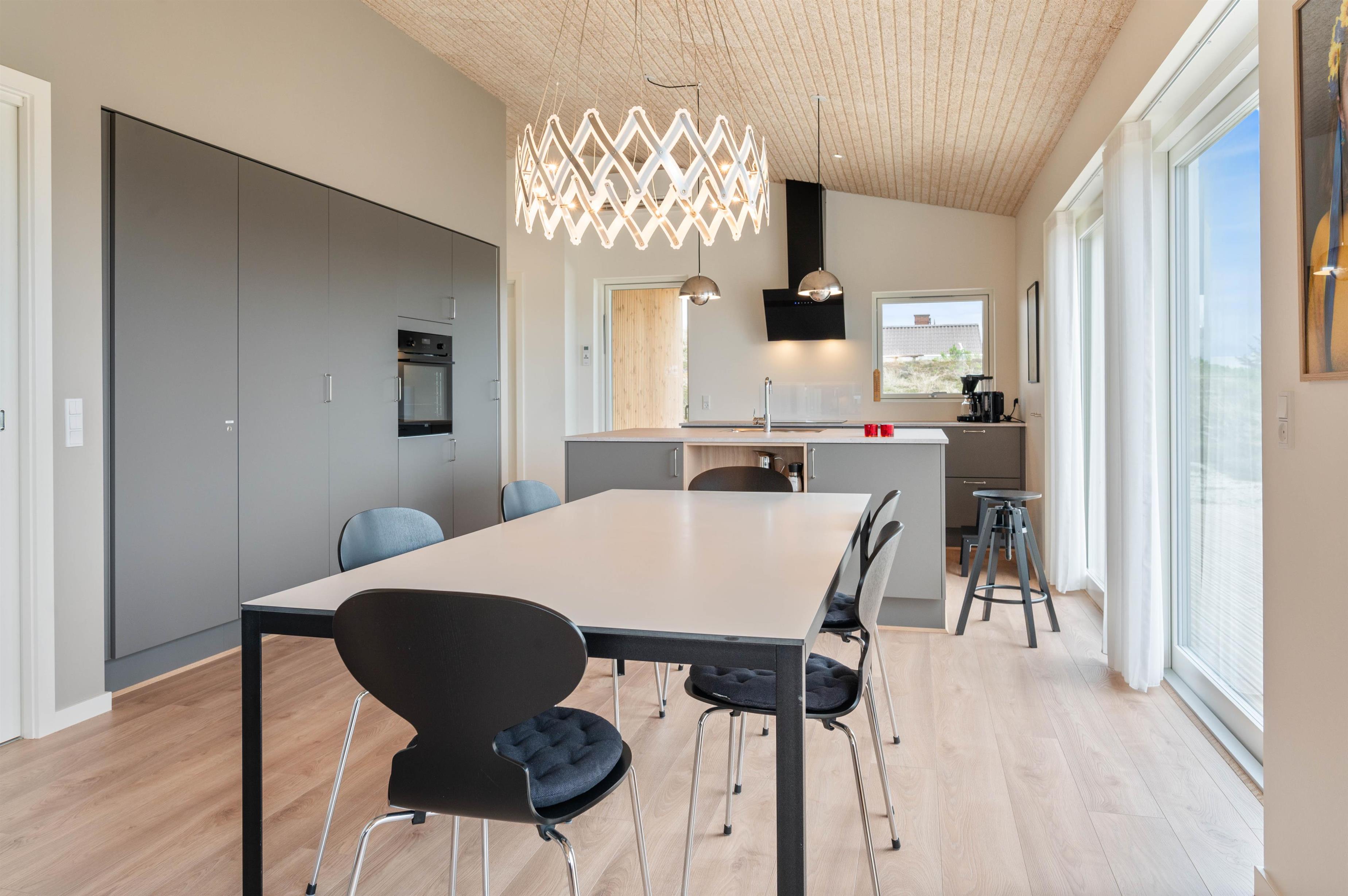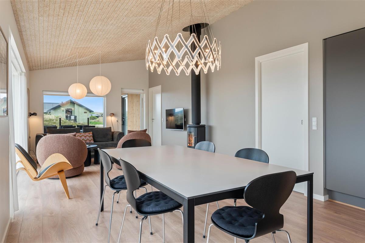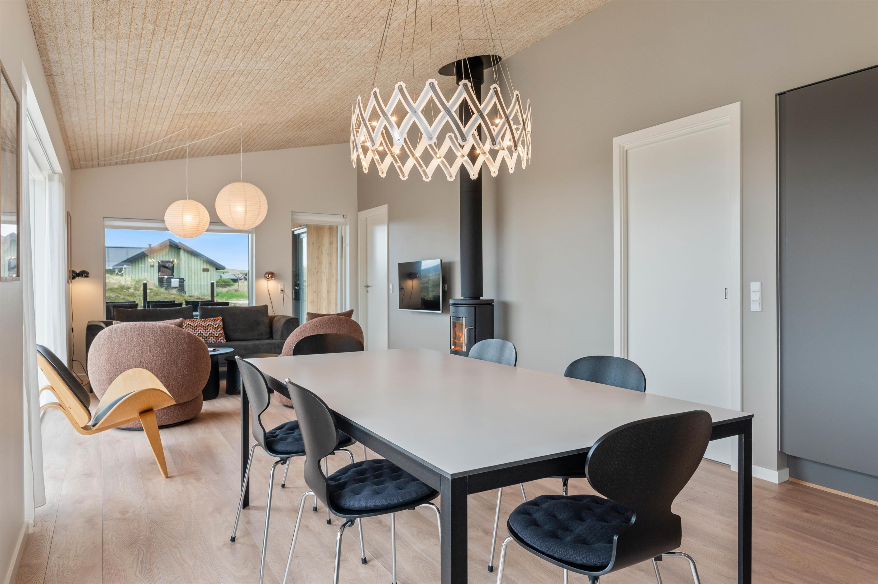 The holiday home at Arvidvej 250 is built in typical Scandinavian style and furnished with attention to detail. Make yourself comfortable on the living room sofa to watch a film or read your favourite book while wood crackles in the wood-burning stove. The energy-efficient heat pump also allows you to set your ideal temperature throughout the holiday home.