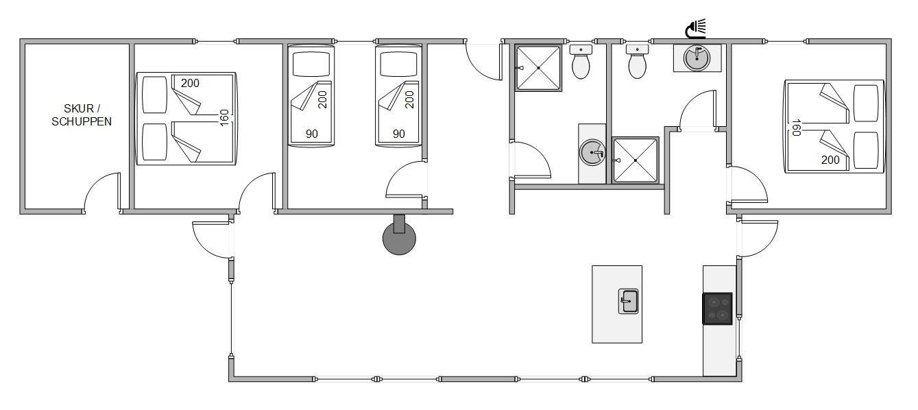 The well-equipped kitchen is perfect for preparing delicious meals together. Afterwards, the dishwasher takes care of the cleaning up. The 70-litre freezer will particularly appeal to anglers – plenty of space for your catch. A washing machine and tumble dryer are also provided for your convenience.