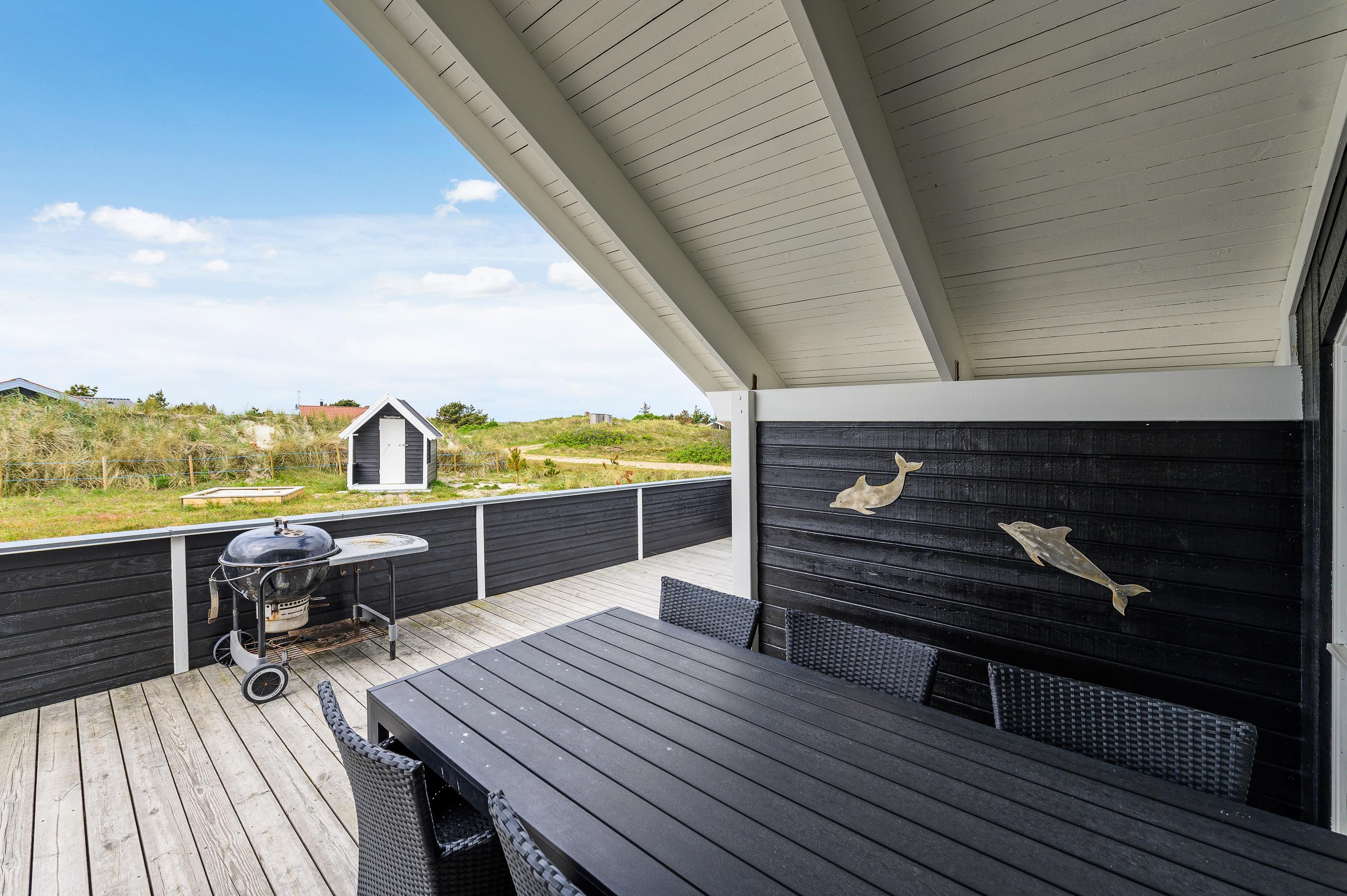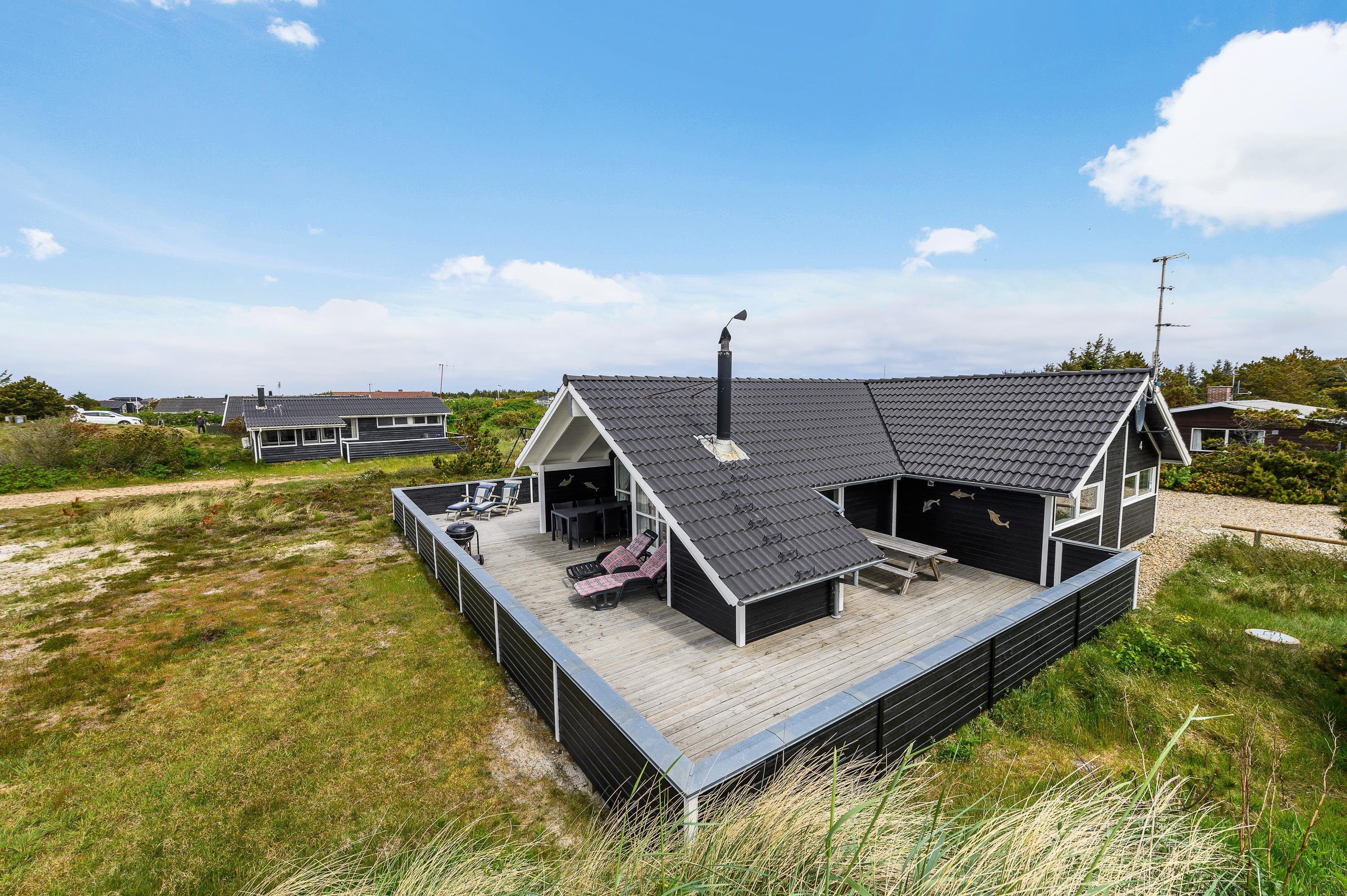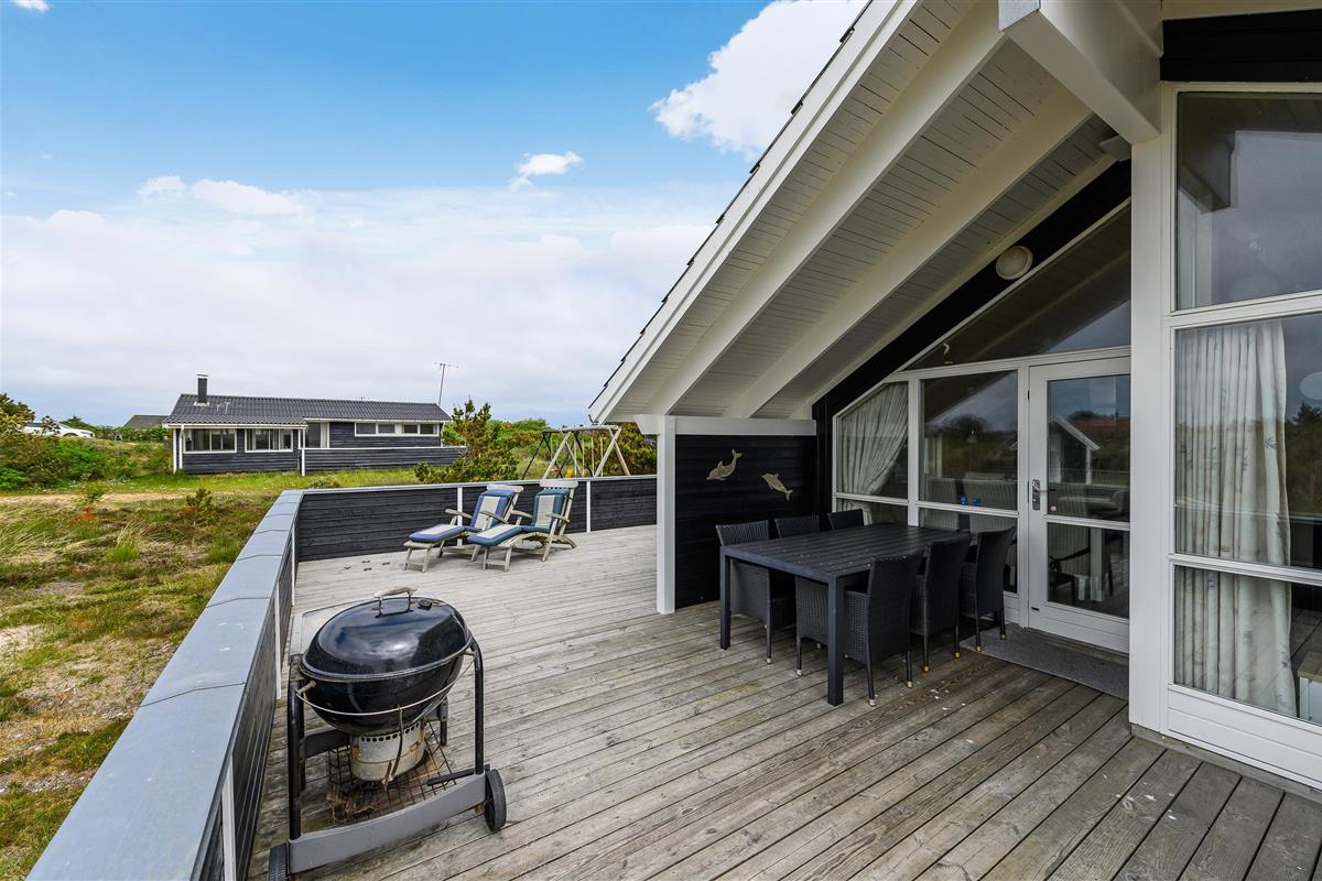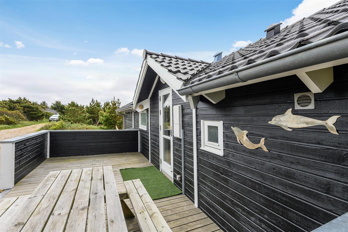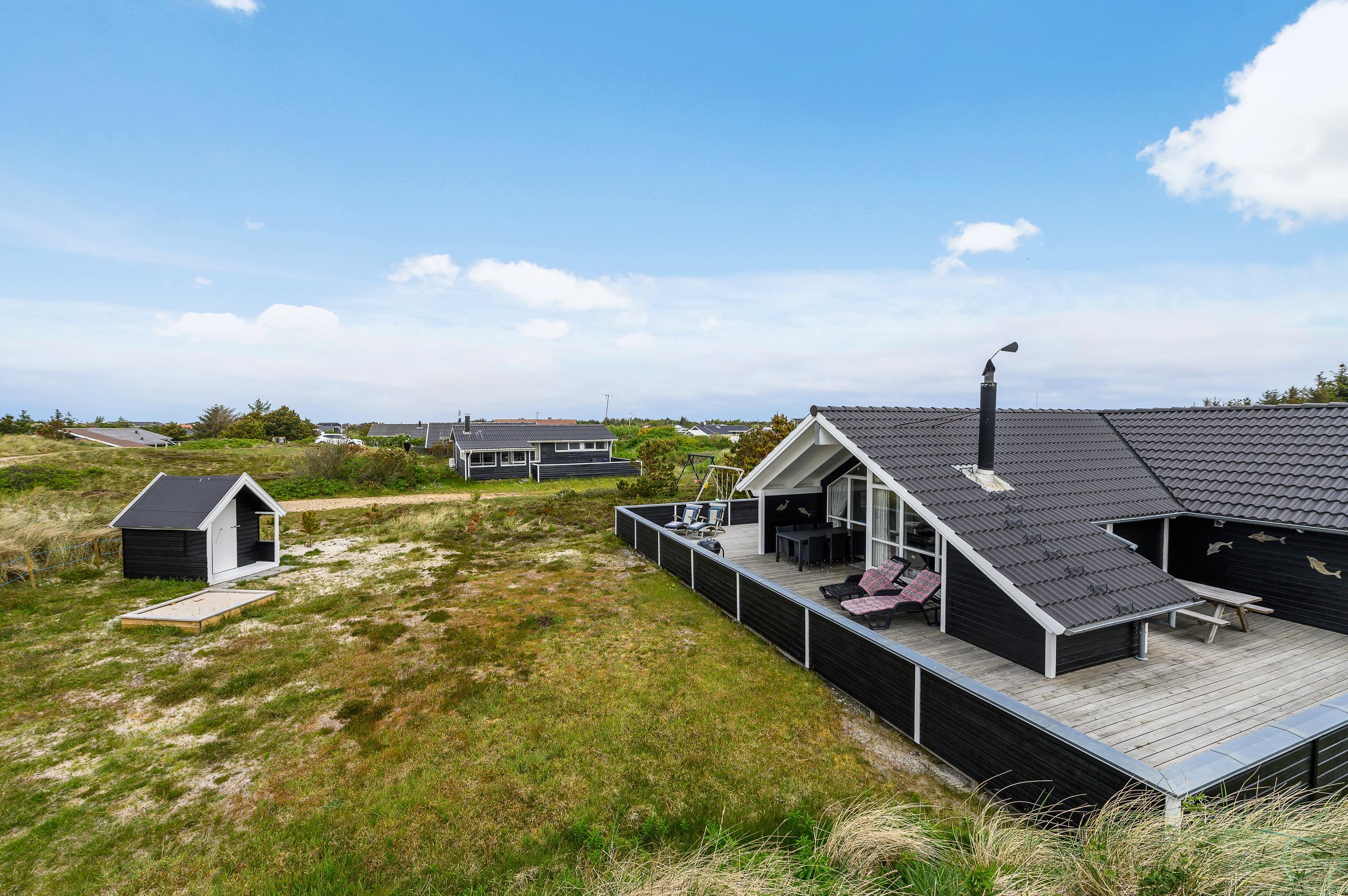 The house features two terraces made from premium wood. The large, sheltered east-facing terrace is perfect for enjoying the morning sun. The vast, fully enclosed terrace is ideal for families with dogs or young children. You'll always find a wind-protected spot to enjoy the sunshine on the sun lounger. The house has its own driveway and is perfectly positioned in the second row, with additional protection from a vegetation-covered dune. For younger guests, there's a lovely playhouse, sandpit, and swings.