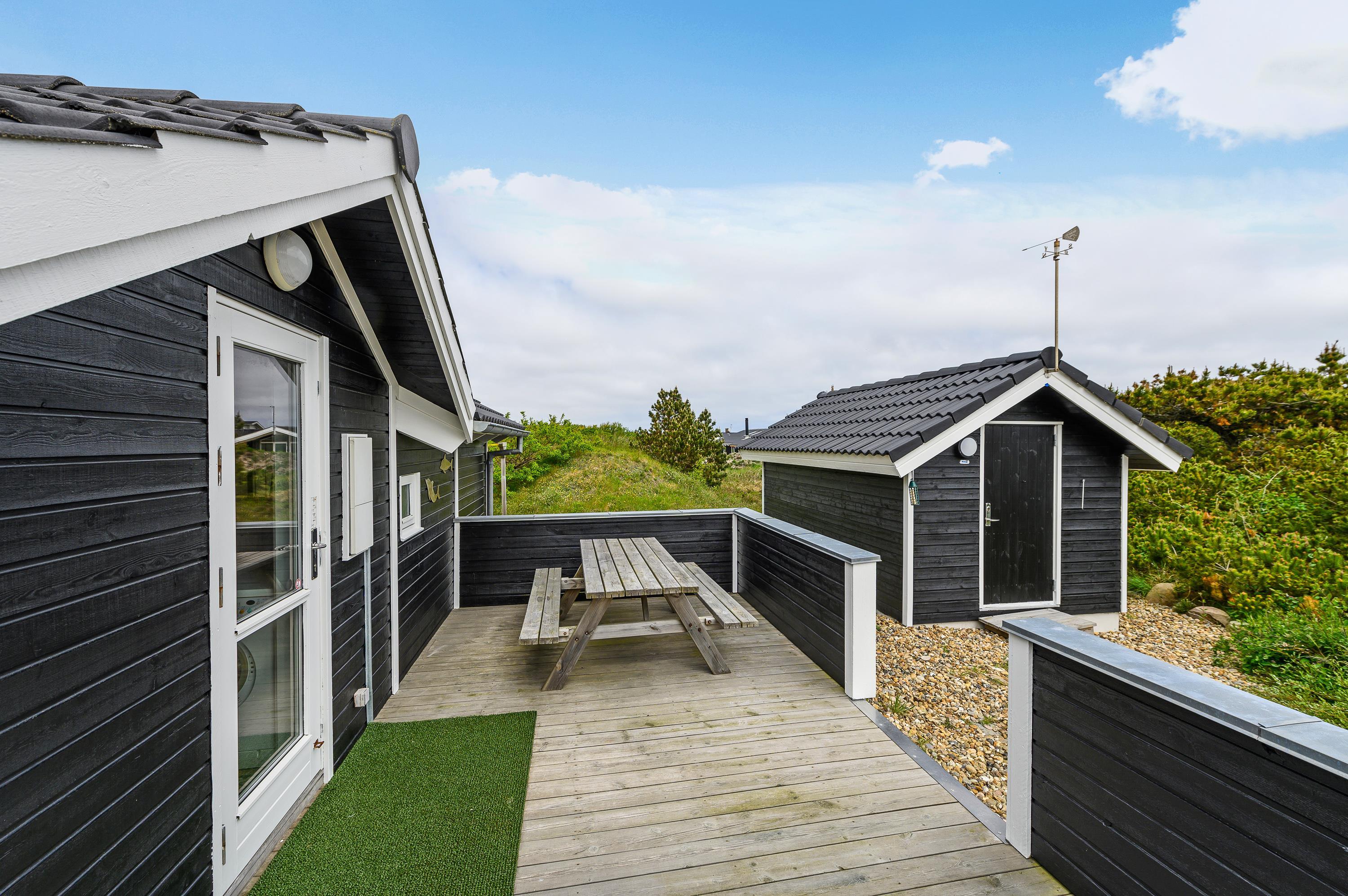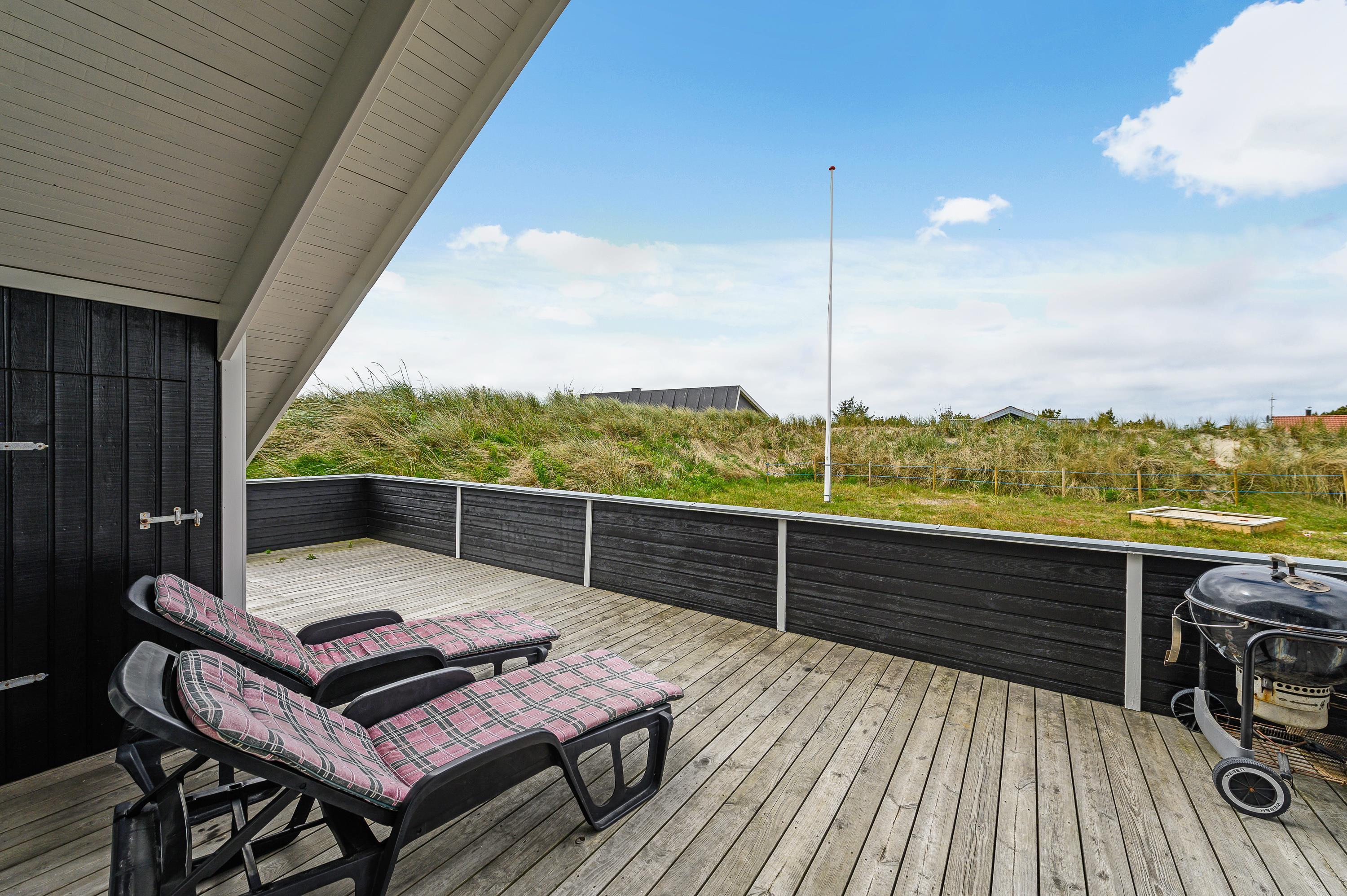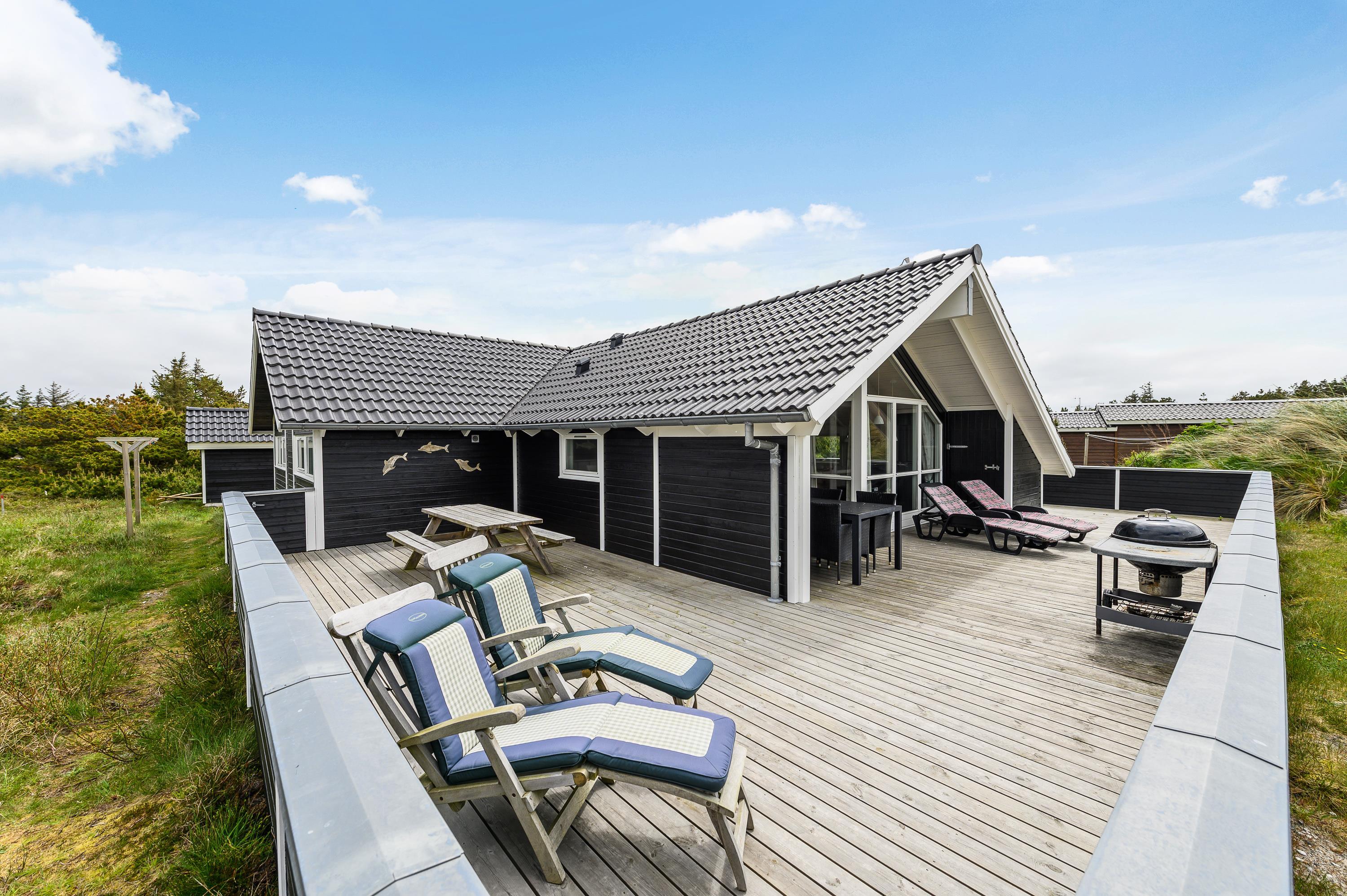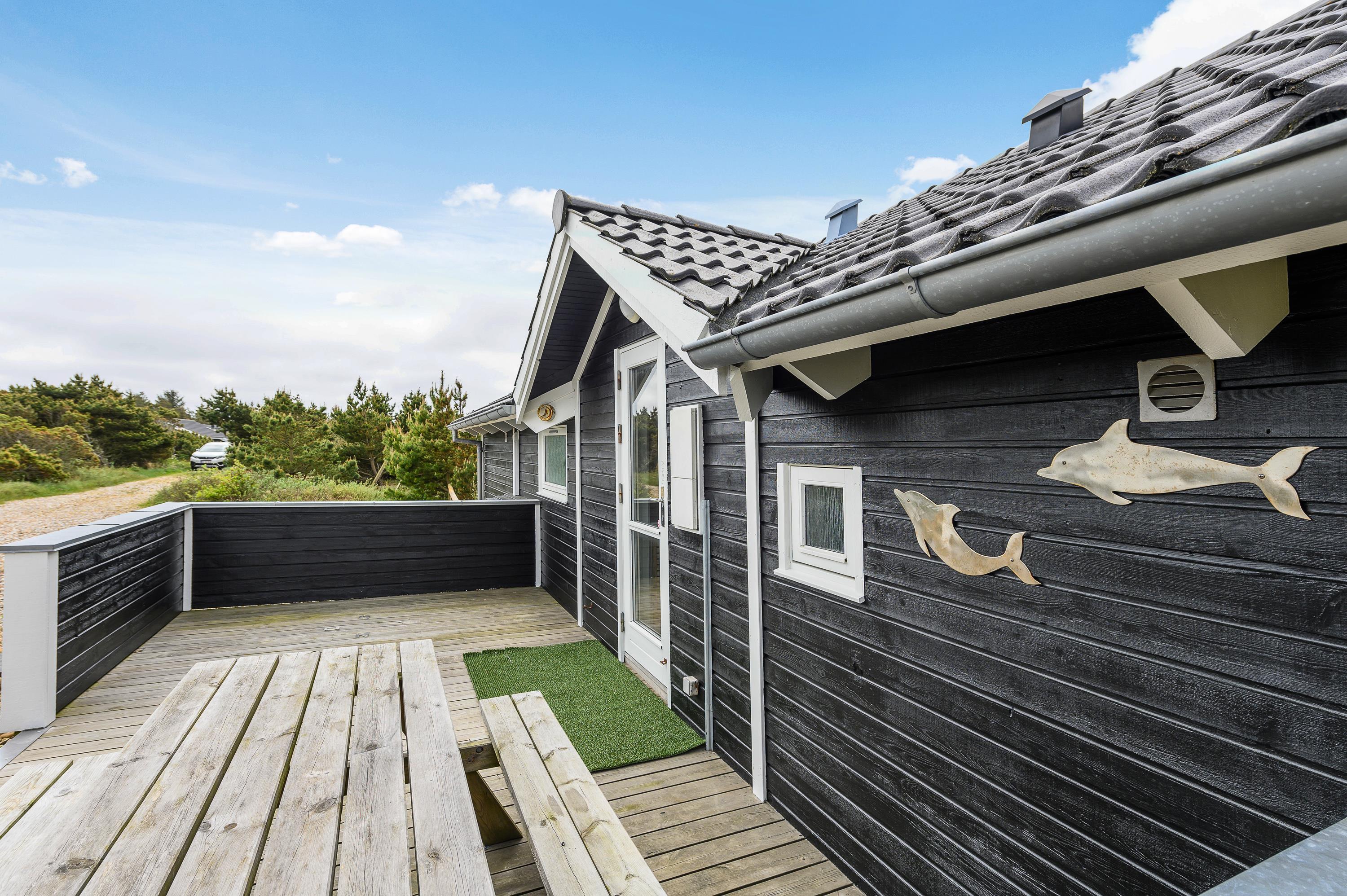 The house features two terraces made from premium wood. The large, sheltered east-facing terrace is perfect for enjoying the morning sun. The vast, fully enclosed terrace is ideal for families with dogs or young children. You'll always find a wind-protected spot to enjoy the sunshine on the sun lounger. The house has its own driveway and is perfectly positioned in the second row, with additional protection from a vegetation-covered dune. For younger guests, there's a lovely playhouse, sandpit, and swings.