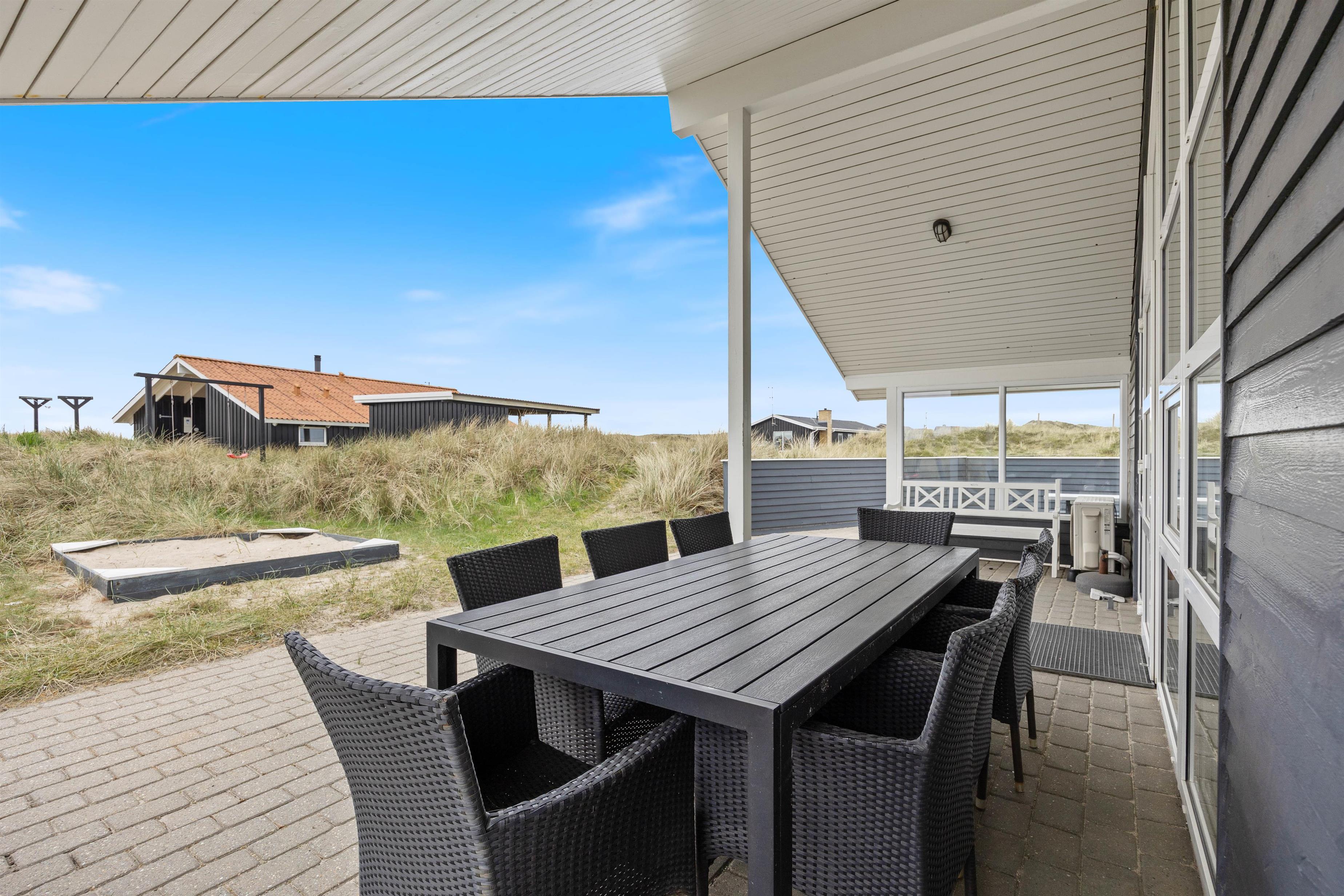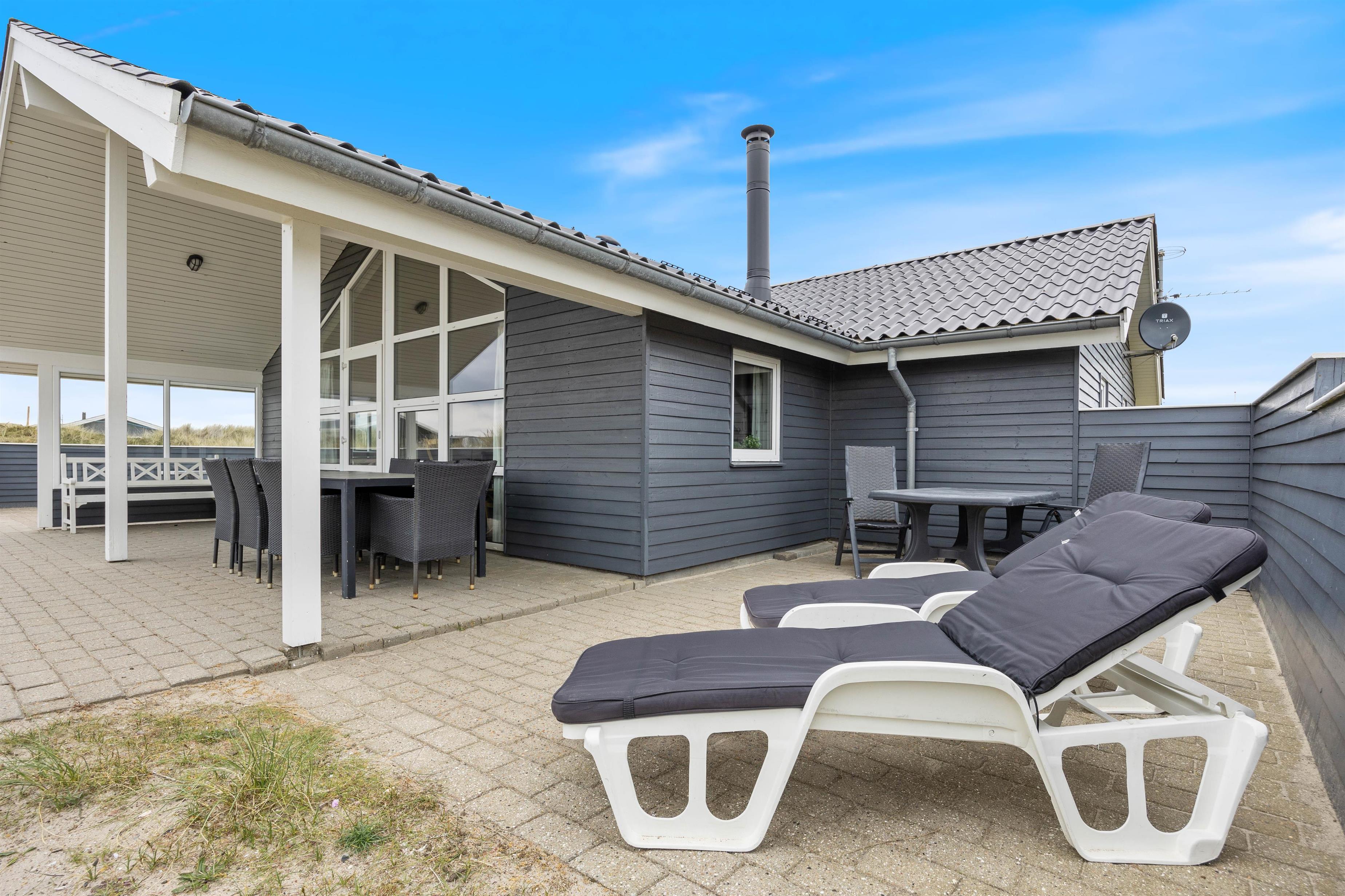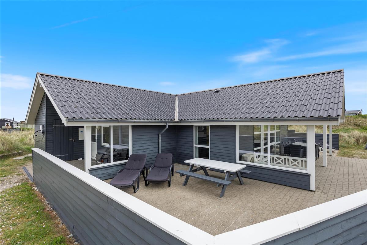 Well-maintained holiday home near the beach, spaciously designed and well-furnished, ideal for larger families. The large bathroom features a sauna and a whirlpool for six people. The holiday home also offers beautiful, sheltered and partially covered terraces.