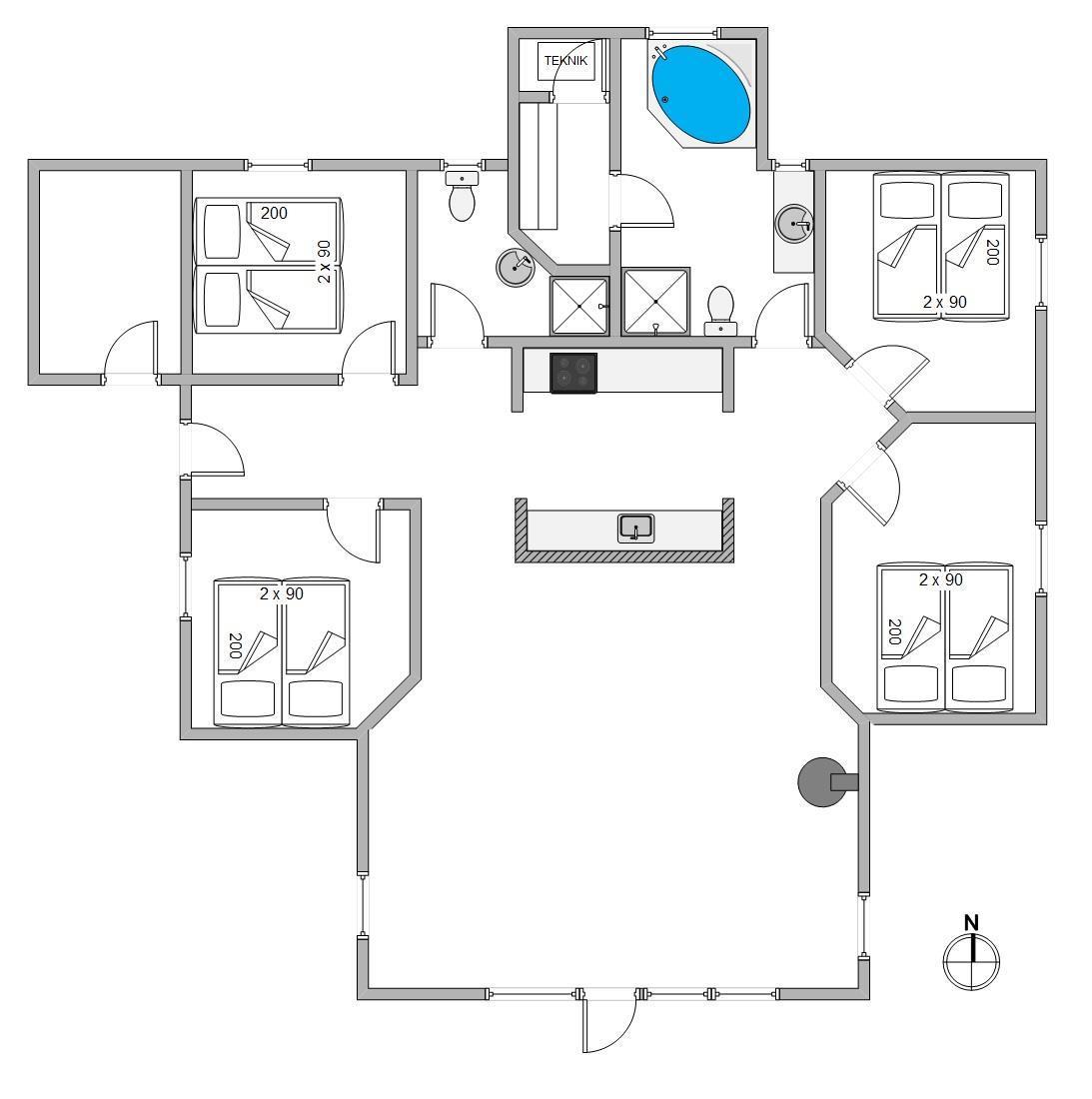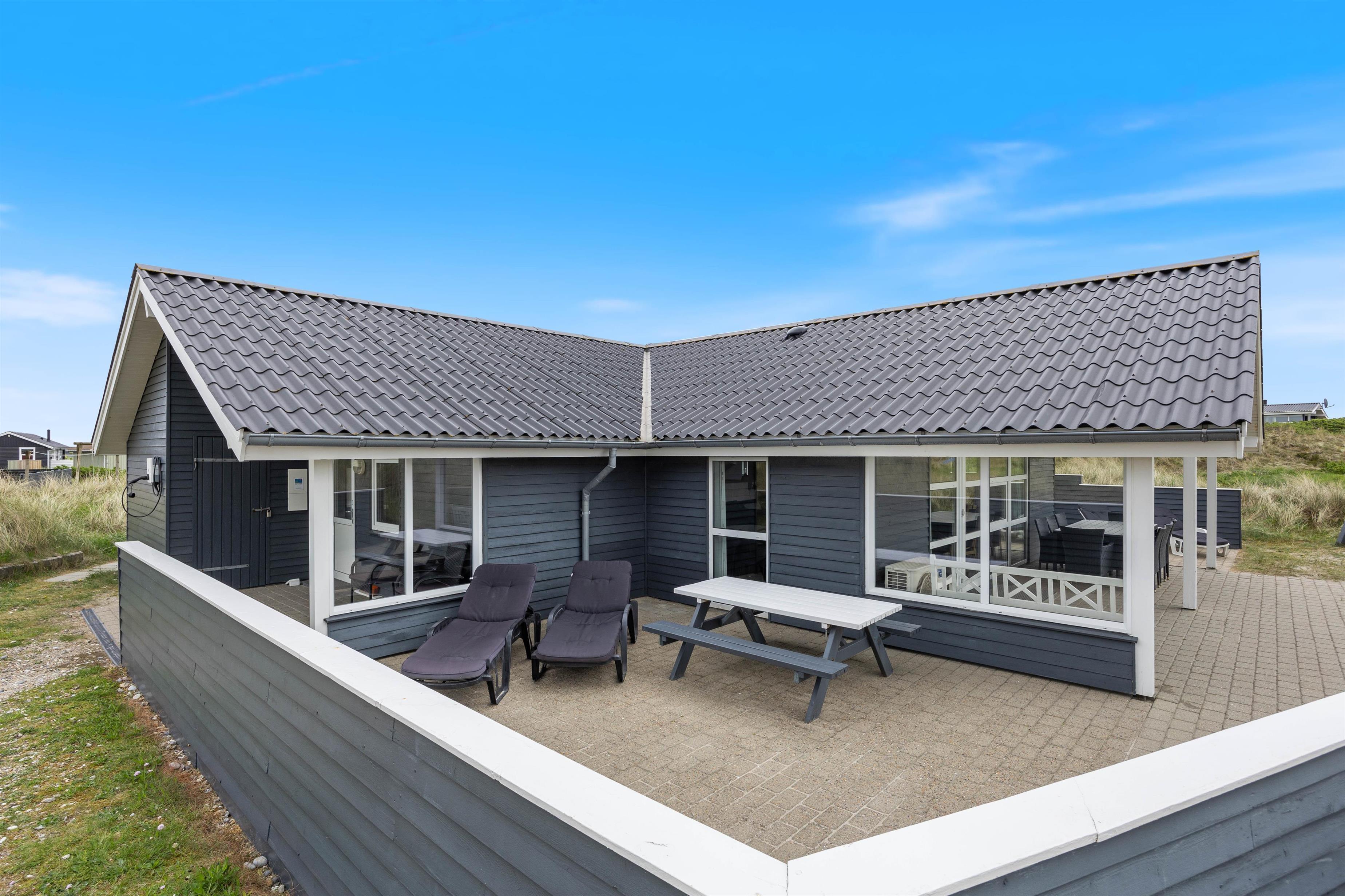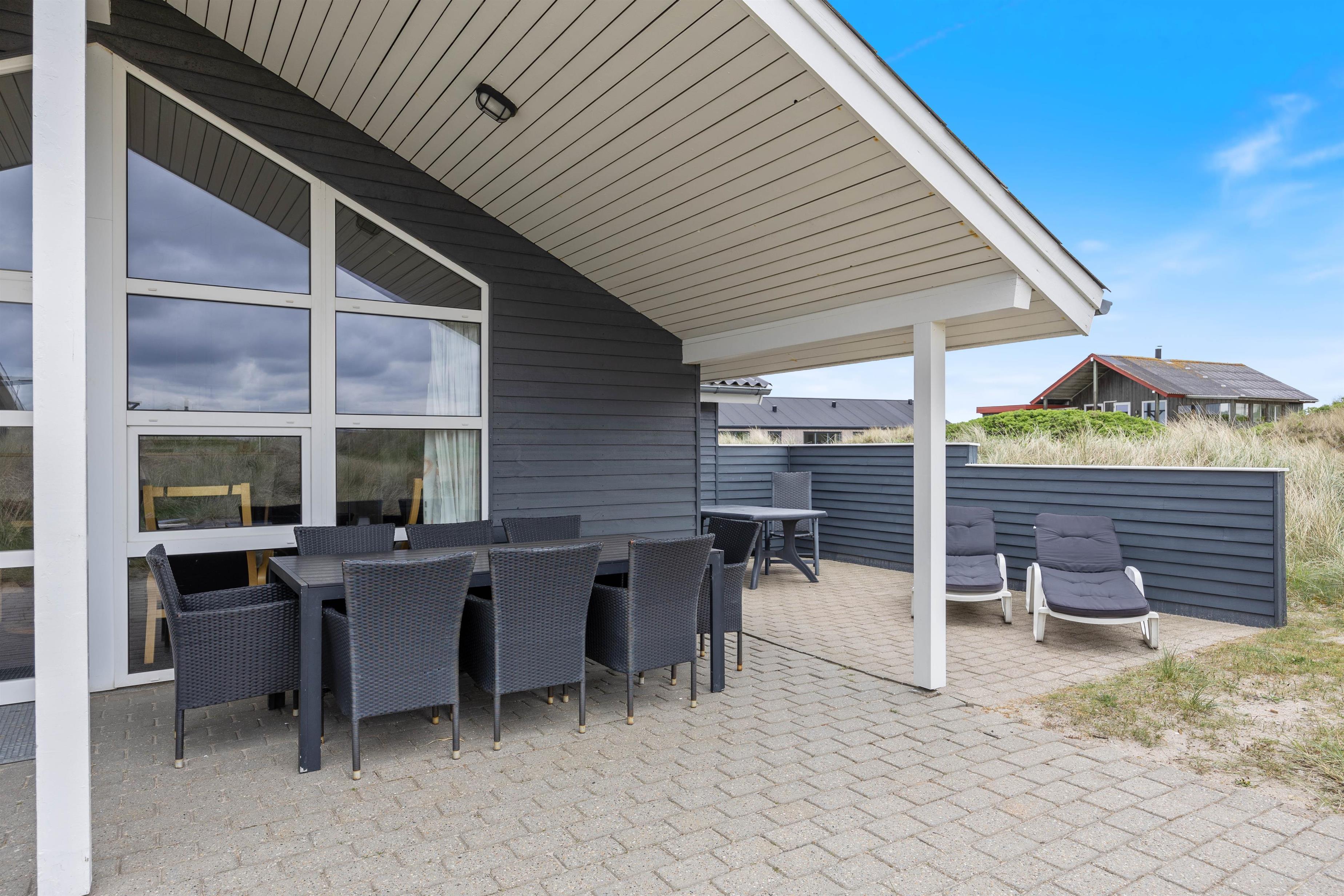 Well-maintained holiday home near the beach, spaciously designed and well-furnished, ideal for larger families. The large bathroom features a sauna and a whirlpool for six people. The holiday home also offers beautiful, sheltered and partially covered terraces.