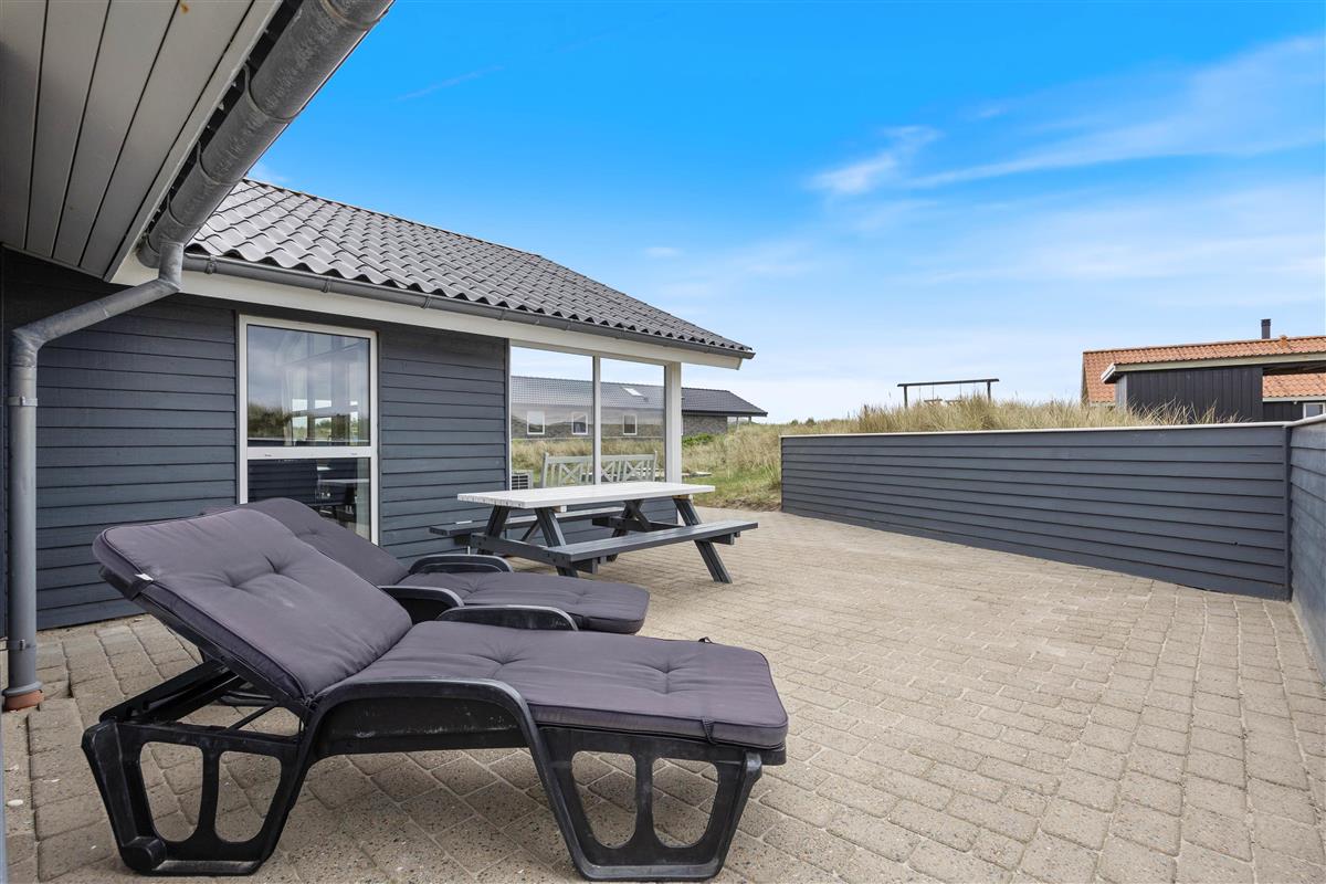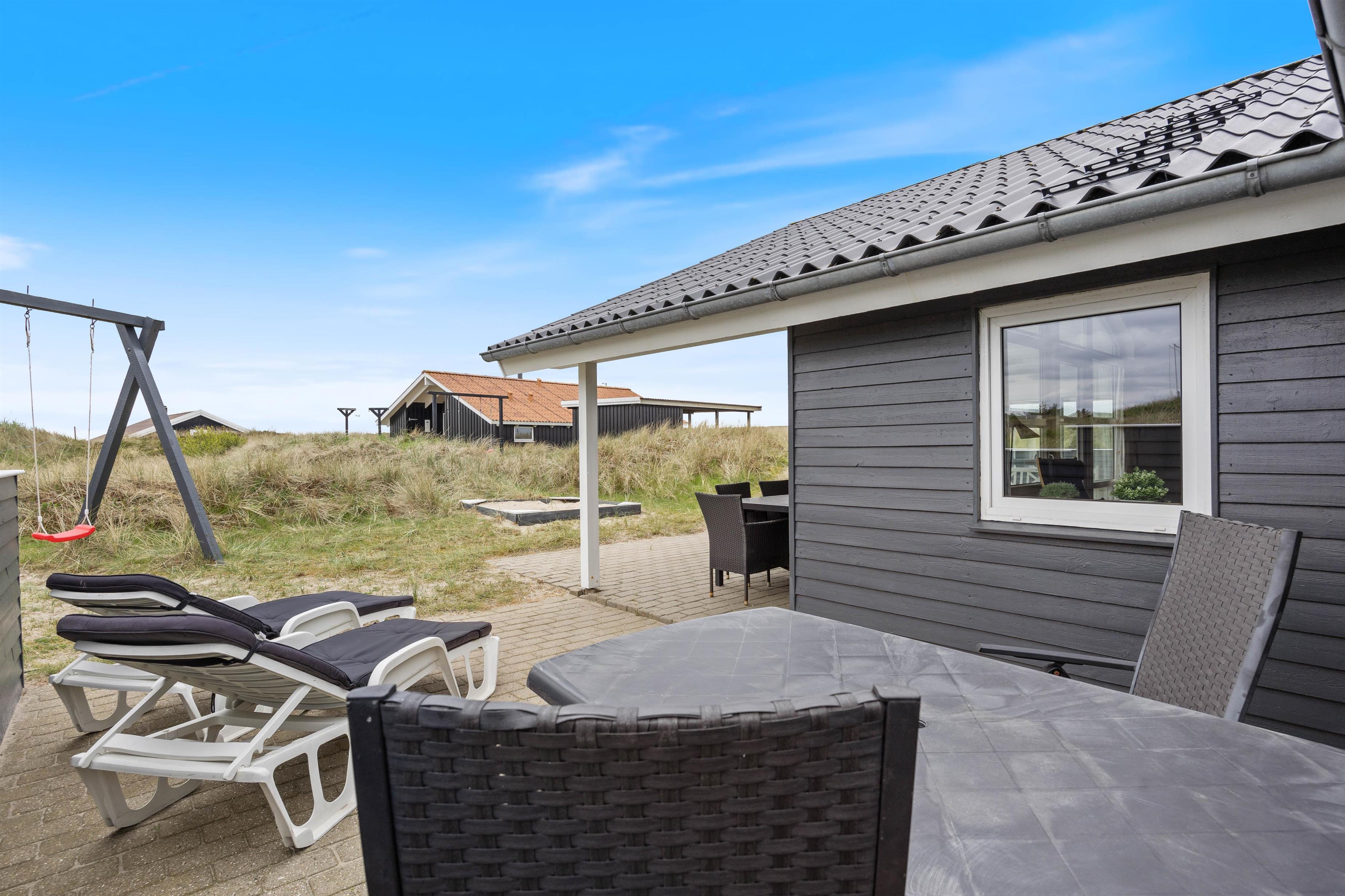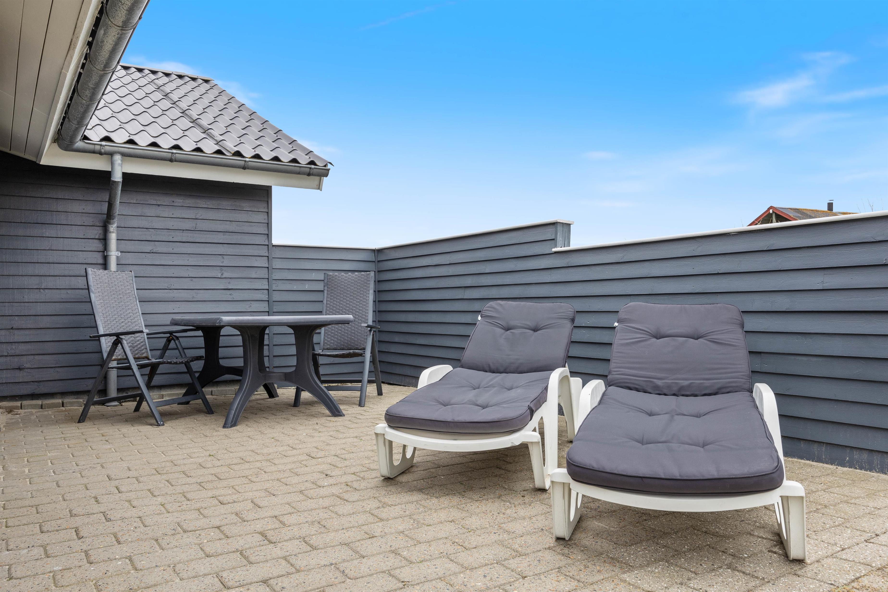 The holiday home features sheltered and partially covered terraces, furnished with garden furniture and sun loungers for you to enjoy the sunshine. There's also a barbecue, perfect for evening family cookouts.