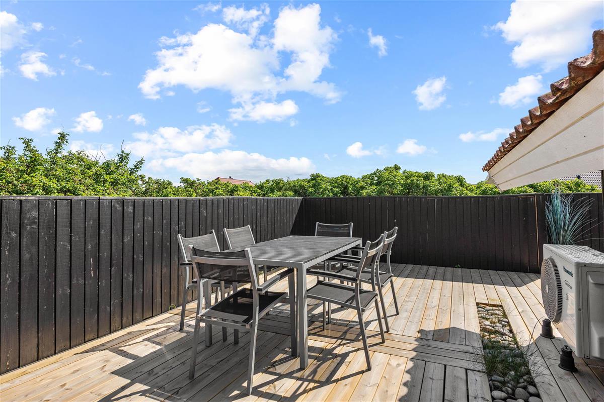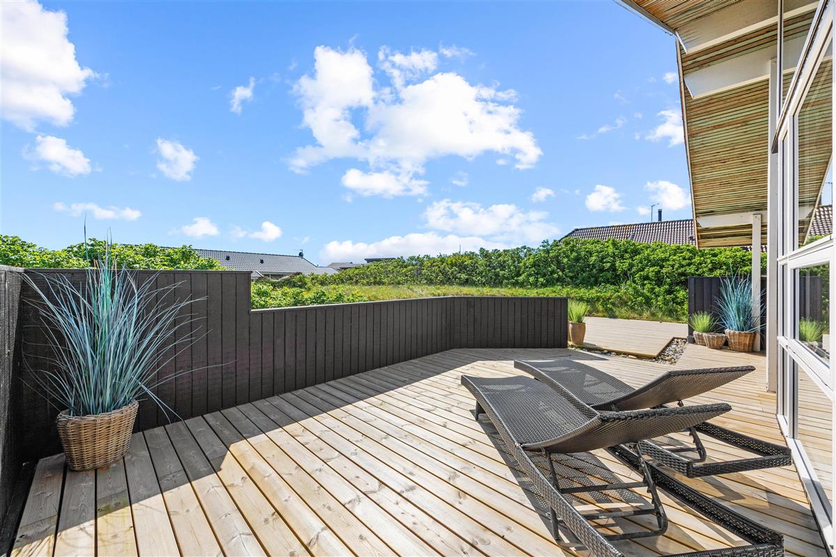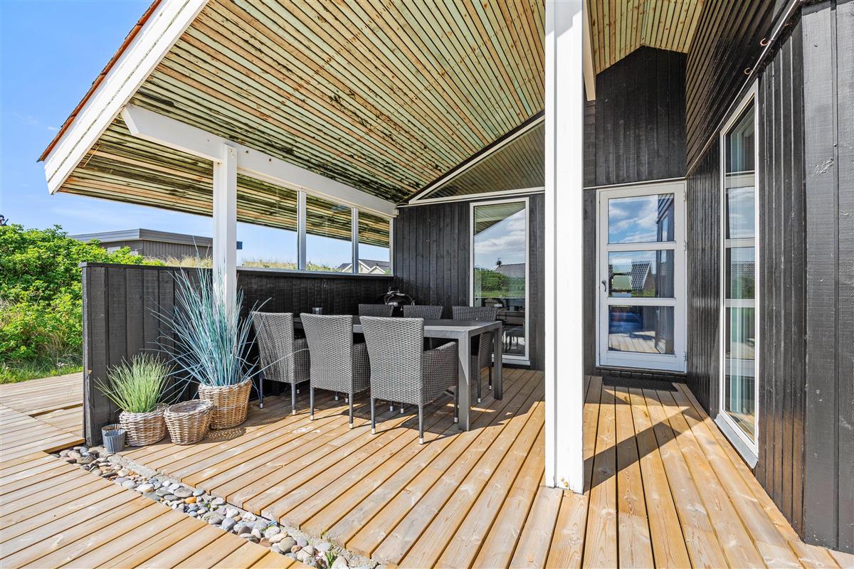 The southwest-facing terrace is accessed from the spacious living area. You can spend many pleasant hours here, as the terrace offers open, covered and sheltered areas, ensuring everyone finds their perfect outdoor spot. Enjoy sunbathing on the loungers, find a sheltered spot to read the latest thriller, or gather in the covered section for evening barbecues.