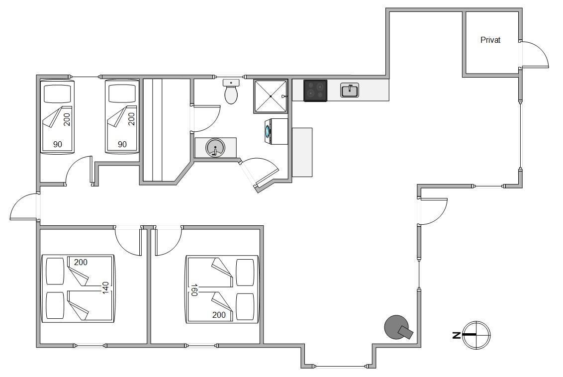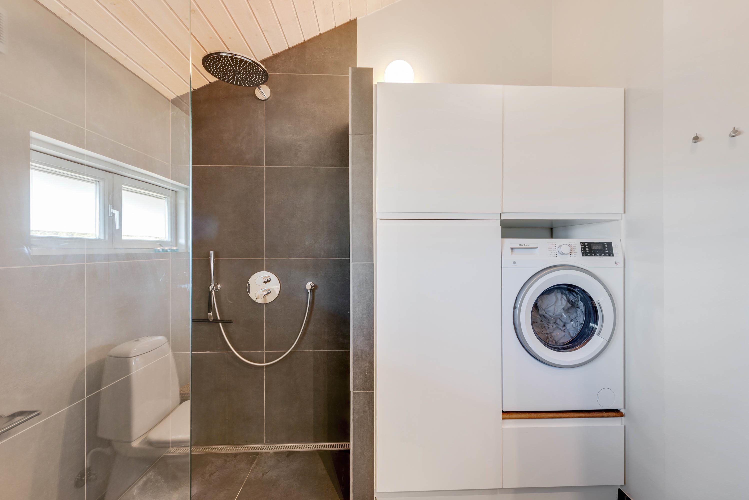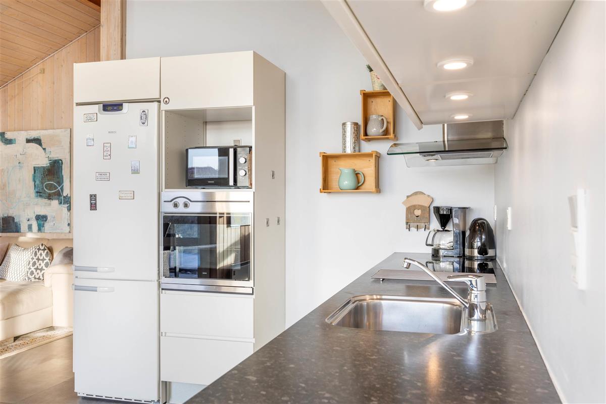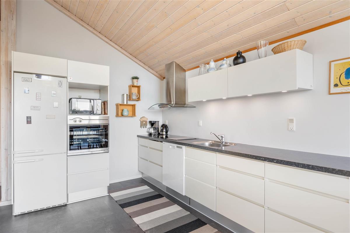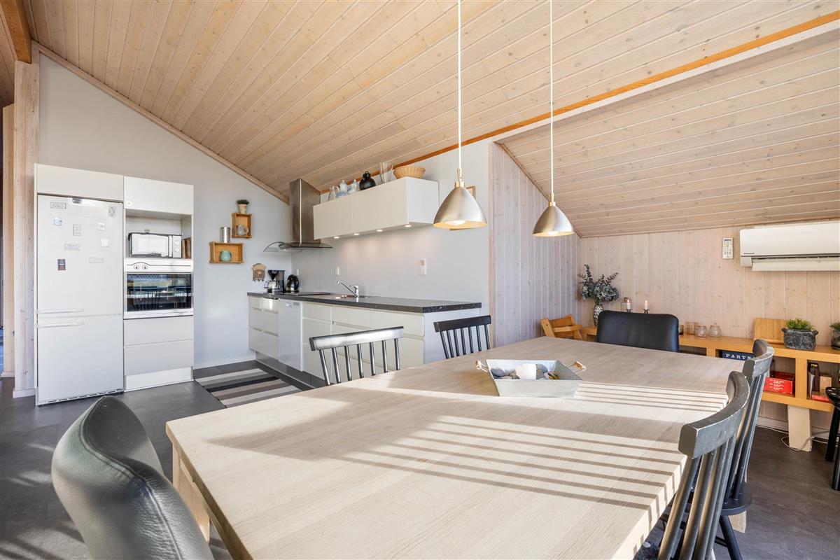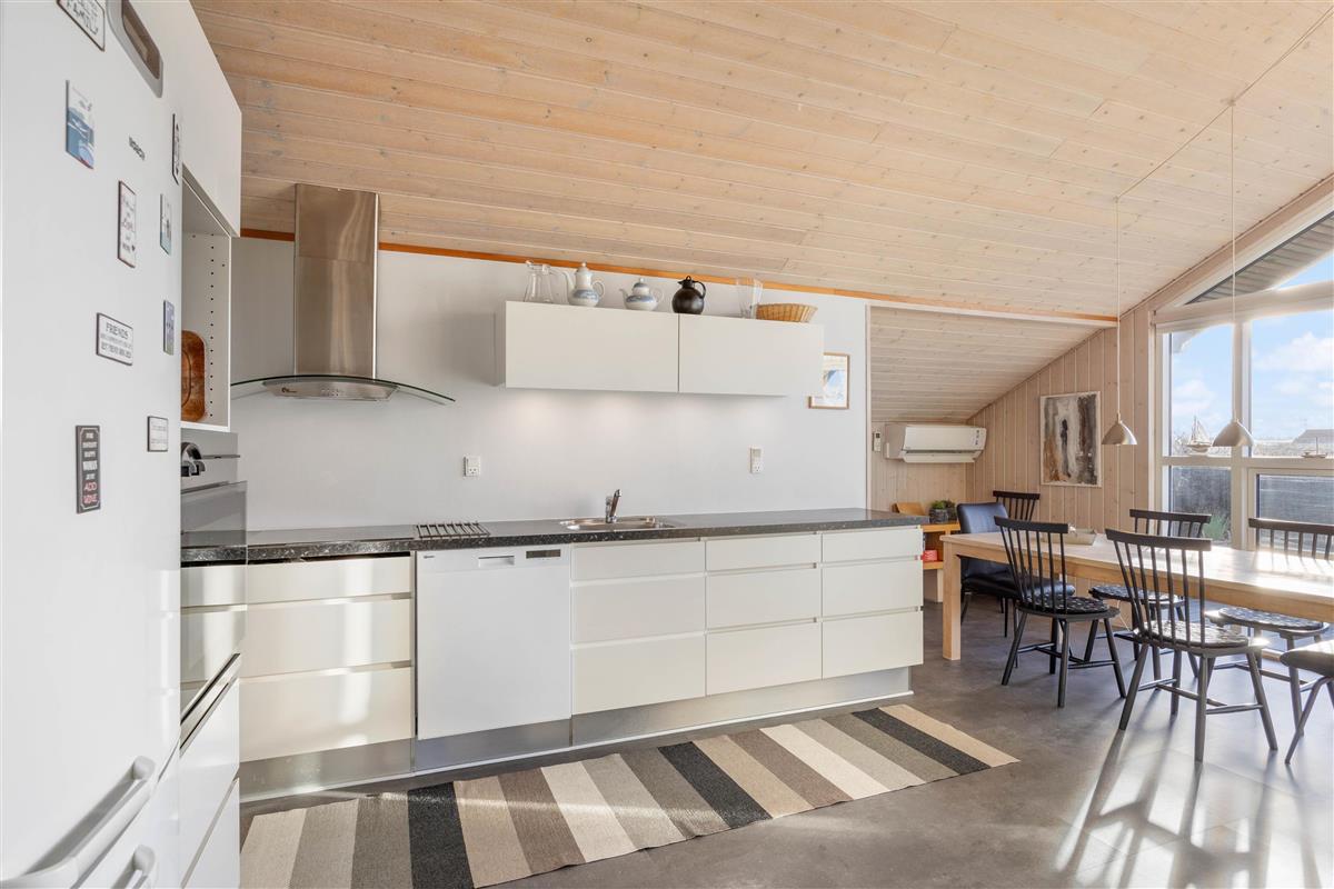 The holiday home at Bjerregårdsvej 119 was partially renovated in 2020 and features modern amenities including a dishwasher, induction hob and microwave - everything to support the holiday chef. The kitchen and living room share an open-plan layout, with large windows making the space feel welcoming, complemented by dark floors and light-coloured ceilings and walls. For evening entertainment, there are 3 German TV channels and an Apple TV receiver.