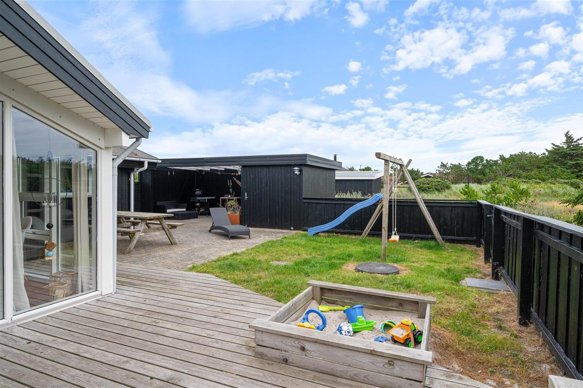 For younger guests, there's an integrated sandpit on the terrace and a lawn area for playing. The holiday home sits on a wonderful, spacious natural plot, just 500 metres from miles of sandy beach. There's also a swing with slide in the unfenced area of the grounds.