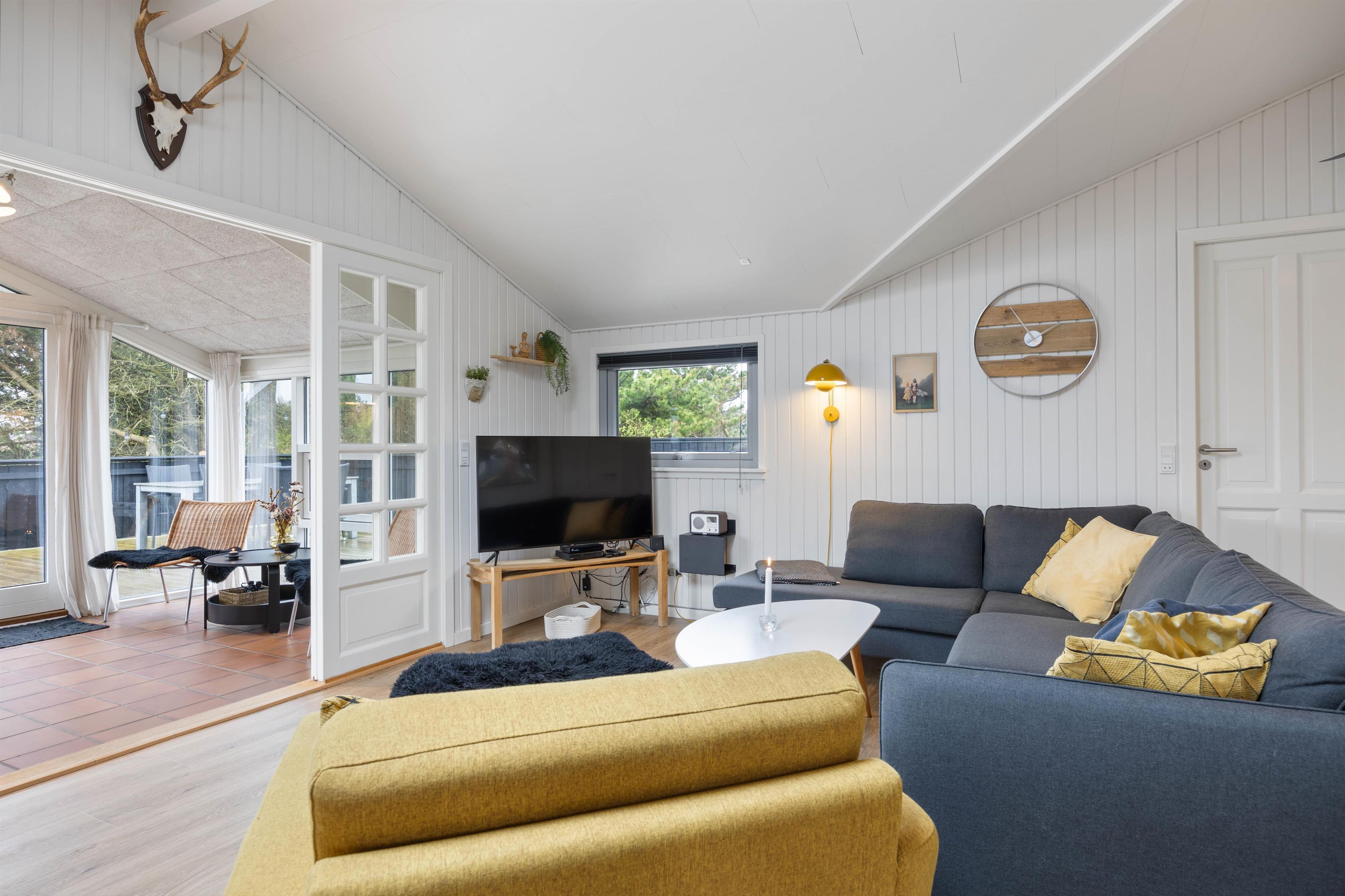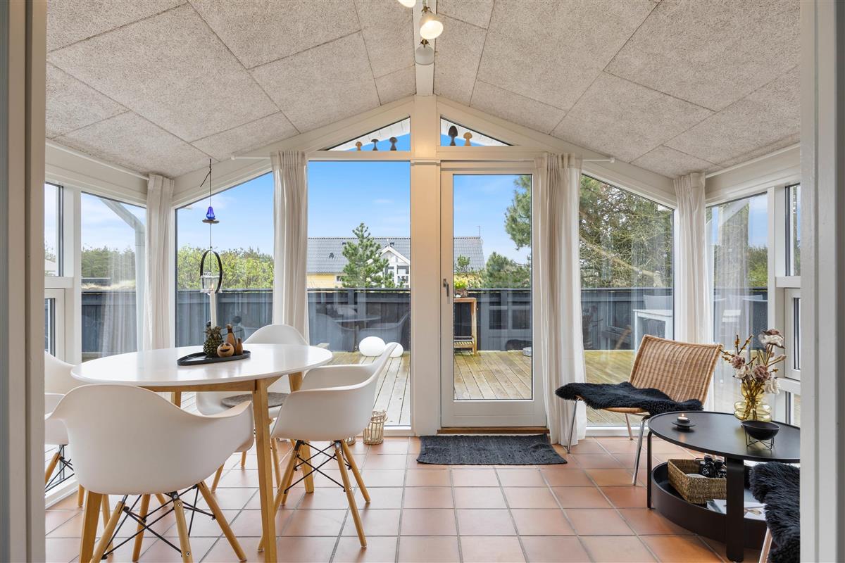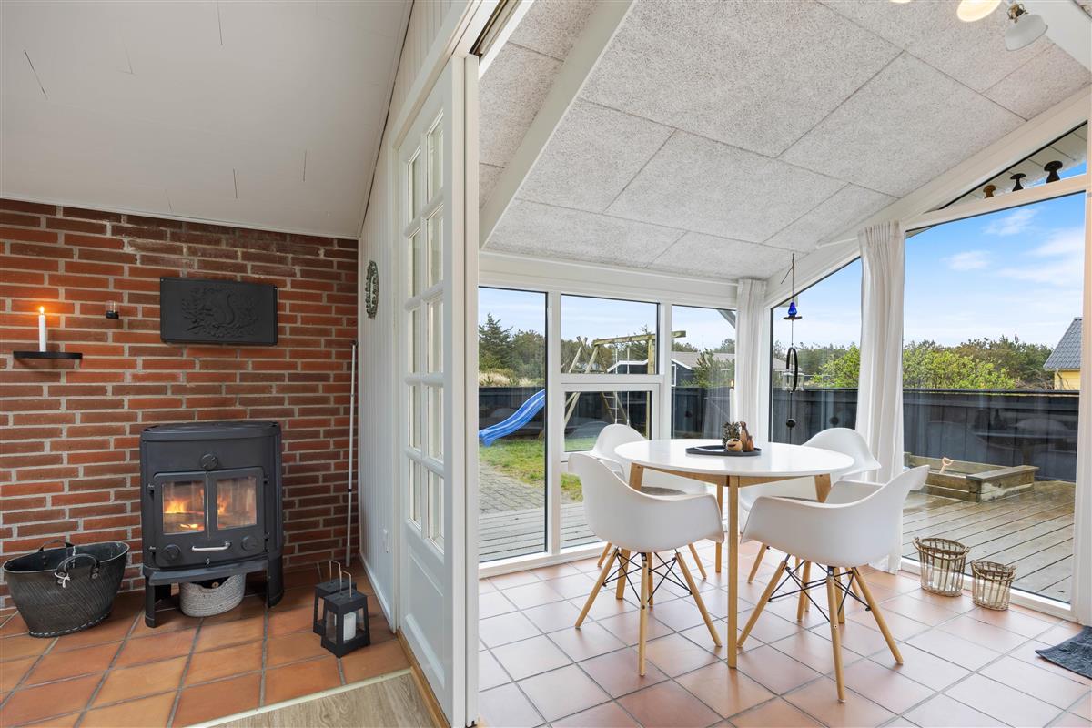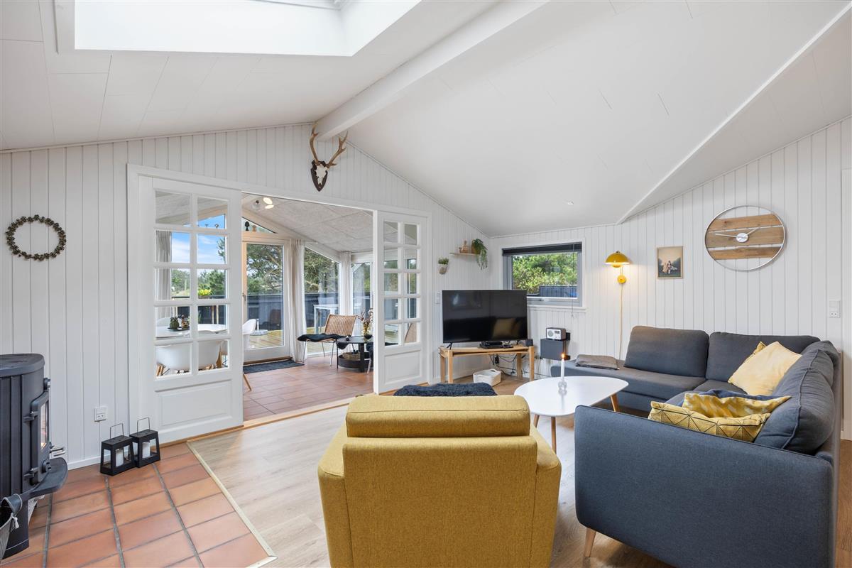 A beautiful holiday home with a large, enclosed terrace awaits you at Rauhesvej 21, situated on an attractive natural plot. It's ideal for families with children or a dog. Extend your summer in the delightful conservatory where you can enjoy sunshine year-round, or pamper yourself with the whirlpool and sauna in the holiday home.