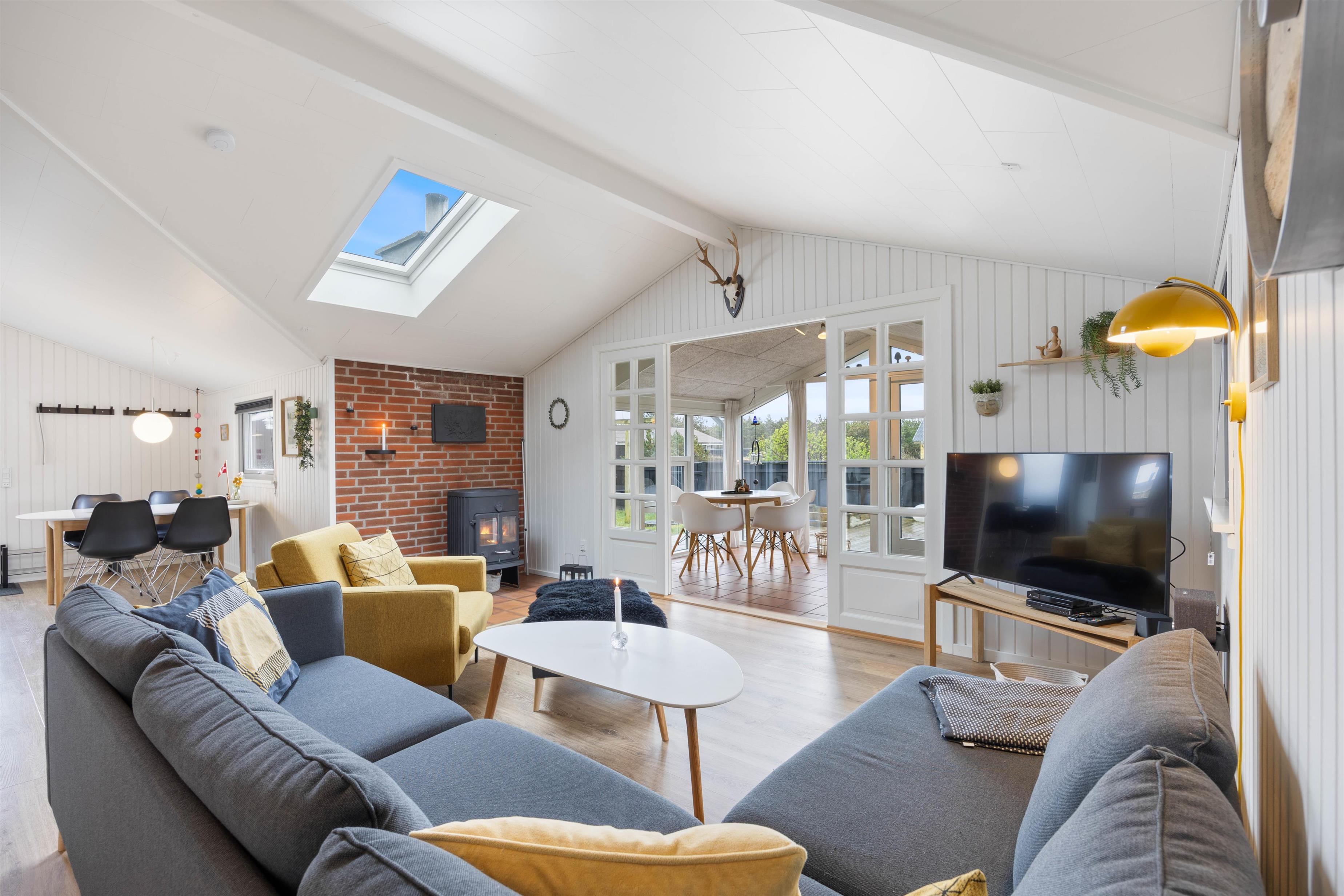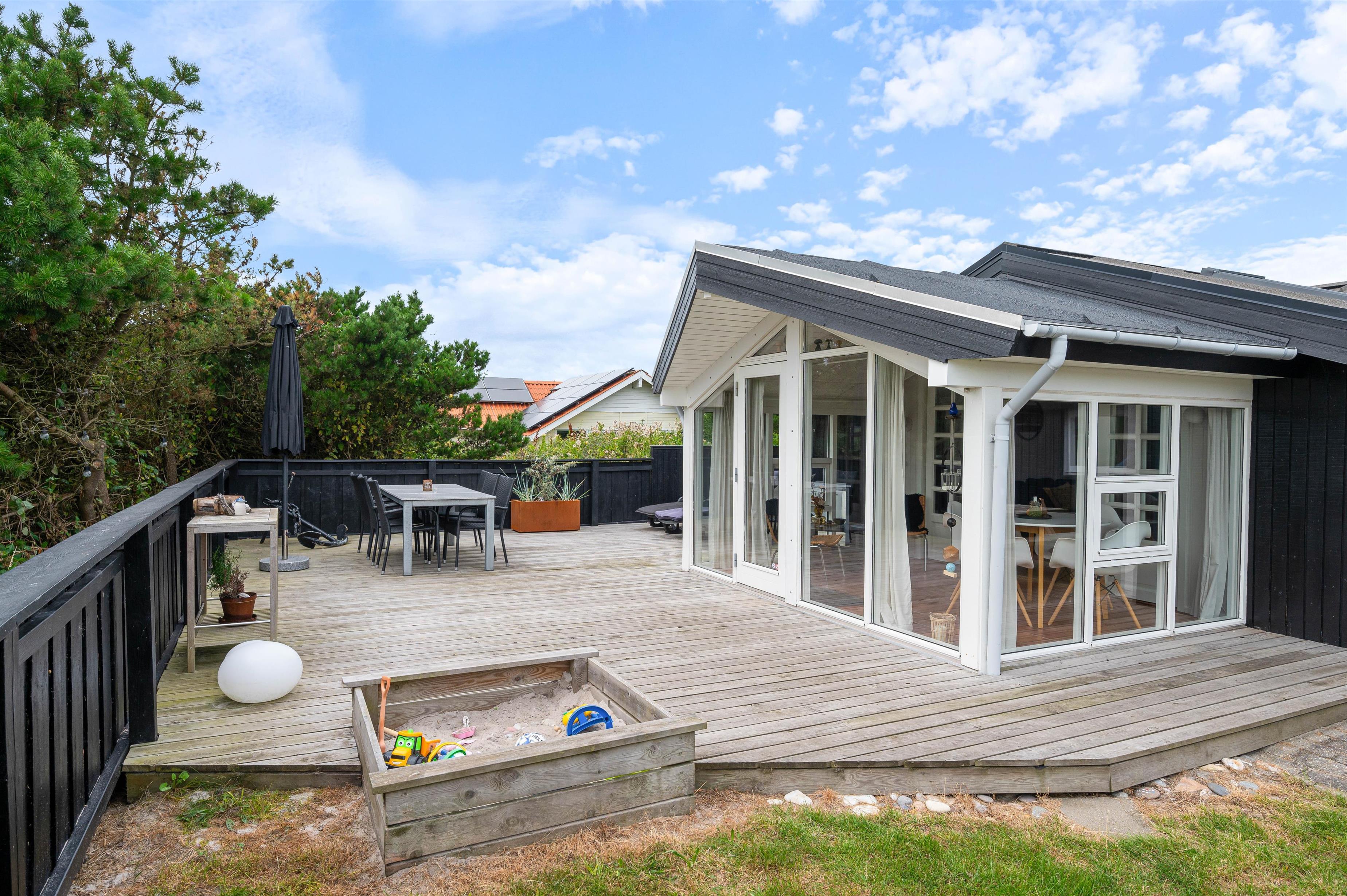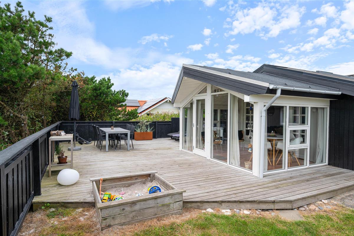A beautiful holiday home with a large, enclosed terrace awaits you at Rauhesvej 21, situated on an attractive natural plot. It's ideal for families with children or a dog. Extend your summer in the delightful conservatory where you can enjoy sunshine year-round, or pamper yourself with the whirlpool and sauna in the holiday home.