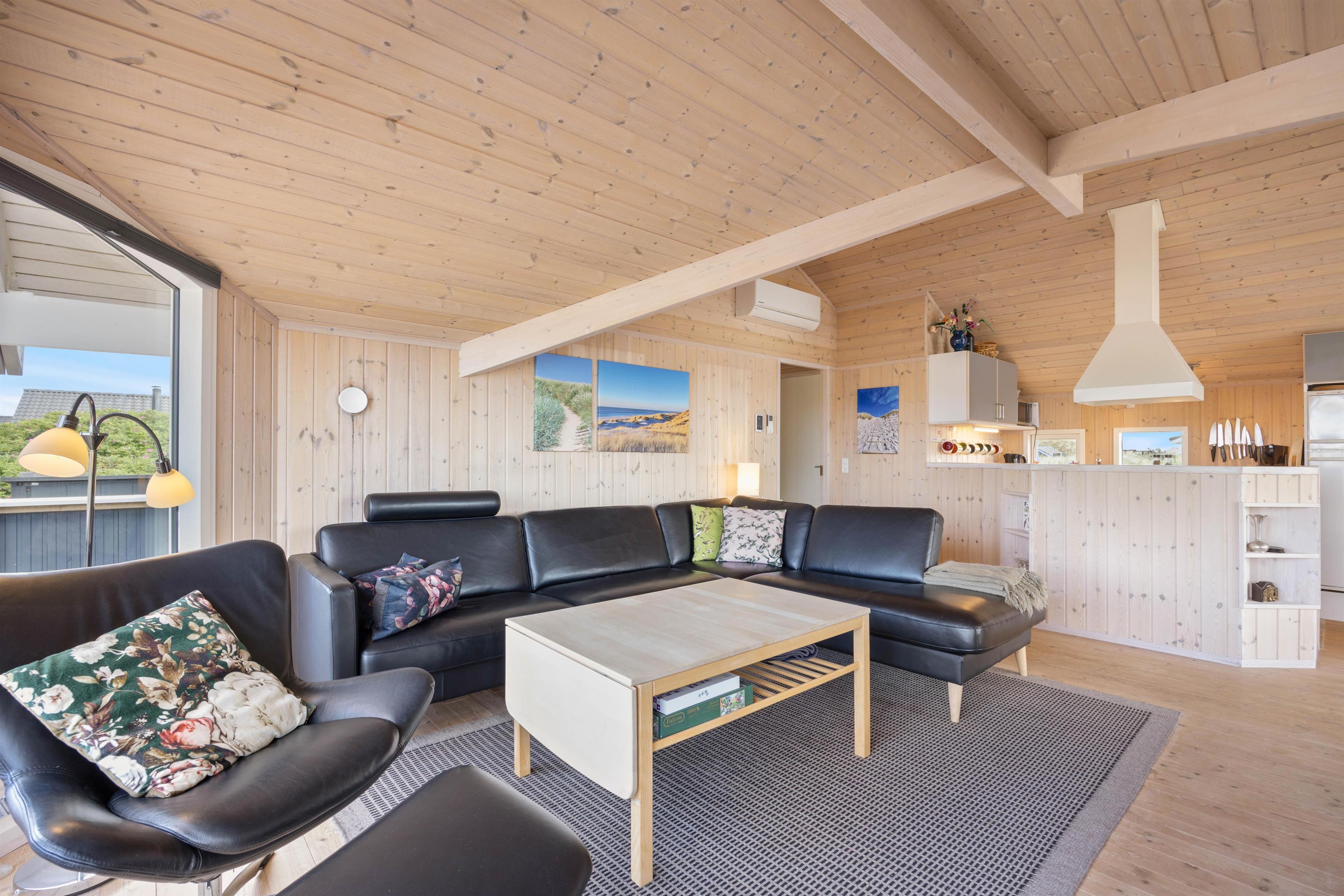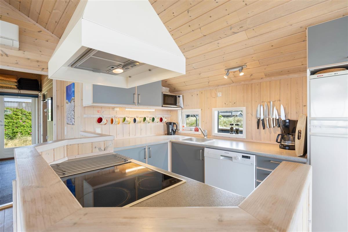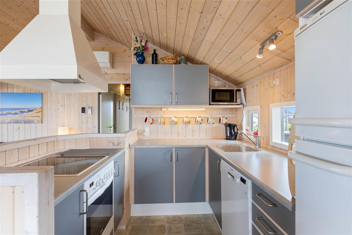 The open-plan kitchen is perfect for sociable cooking, while others might gather at the large dining table to plan the next excursion around Bjerregård. The holiday home is excellently equipped with both a dishwasher and washing machine, so you won't need to worry about household chores.