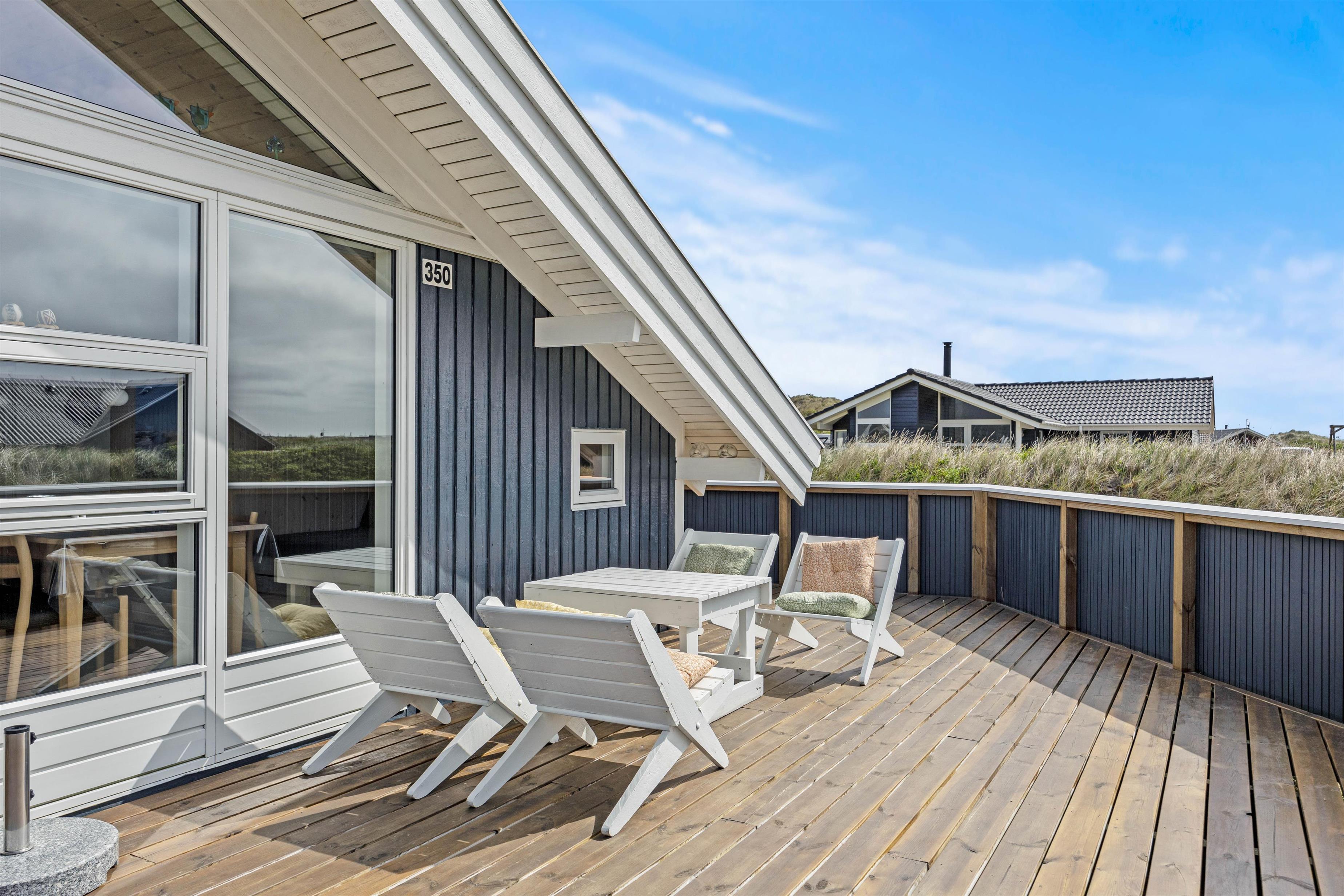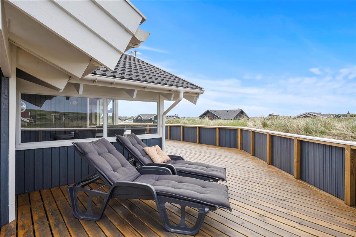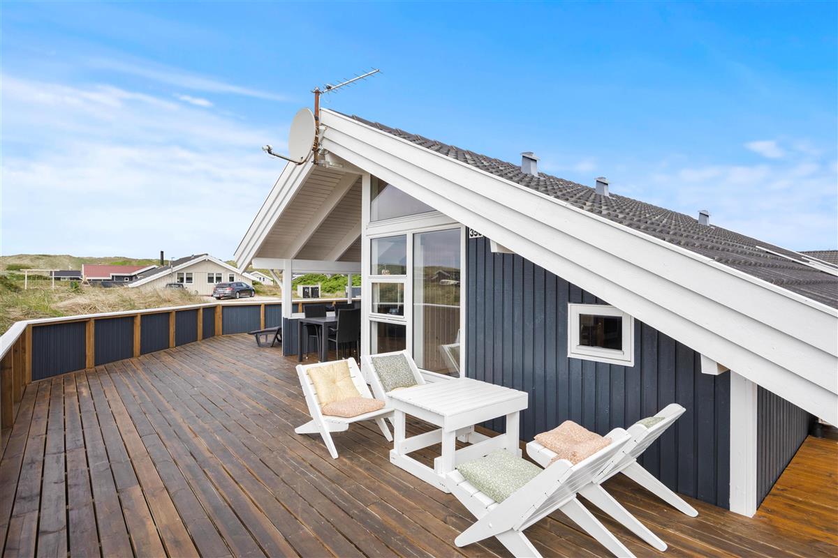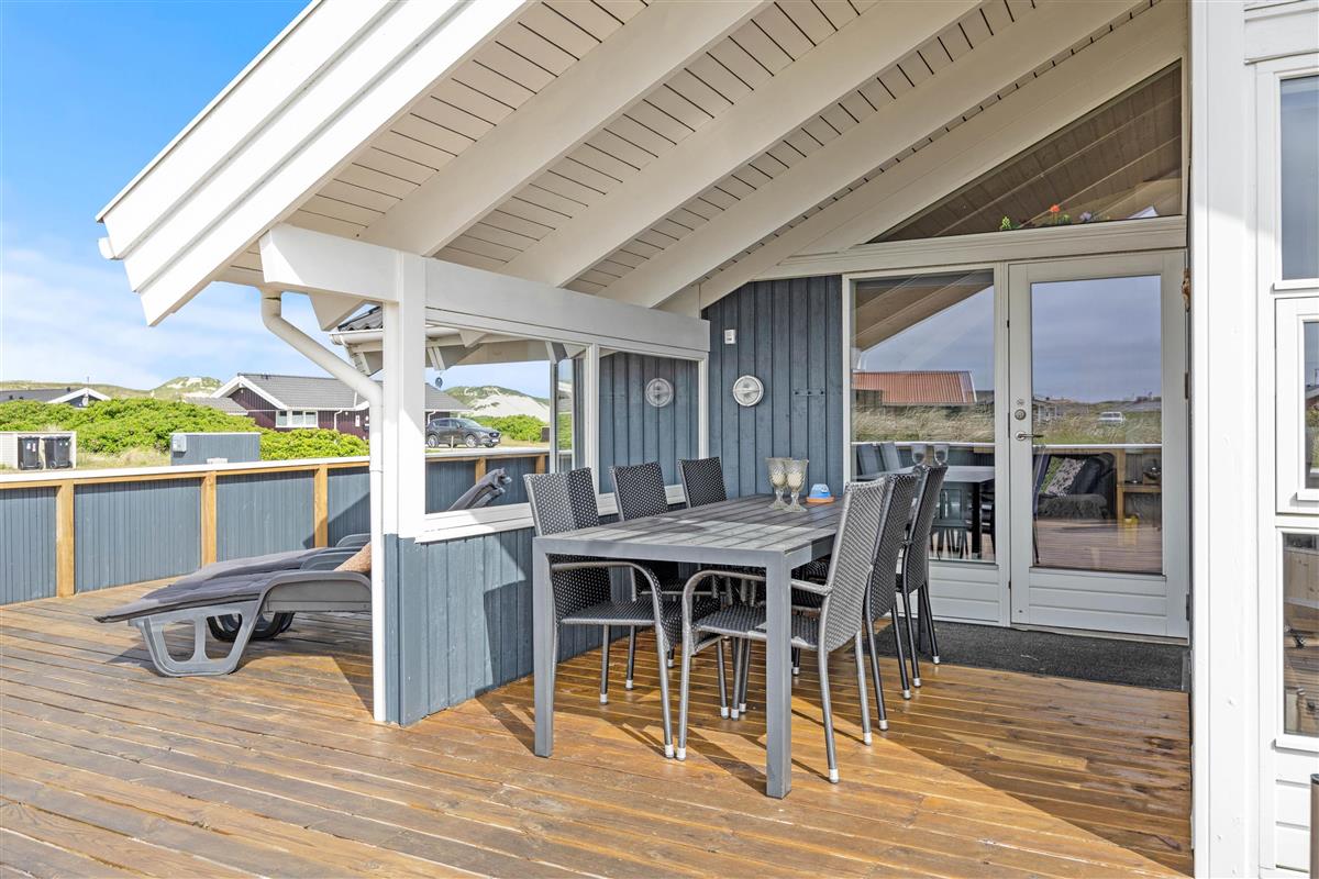 The living room opens onto a sheltered, partially covered terrace. This means you can still enjoy sitting outside even during occasional rain or strong winds. When the sun is shining, you can relax with a new book and cup of coffee on the open section of the terrace. As the terrace wraps almost entirely around the house, everyone can find their perfect spot.