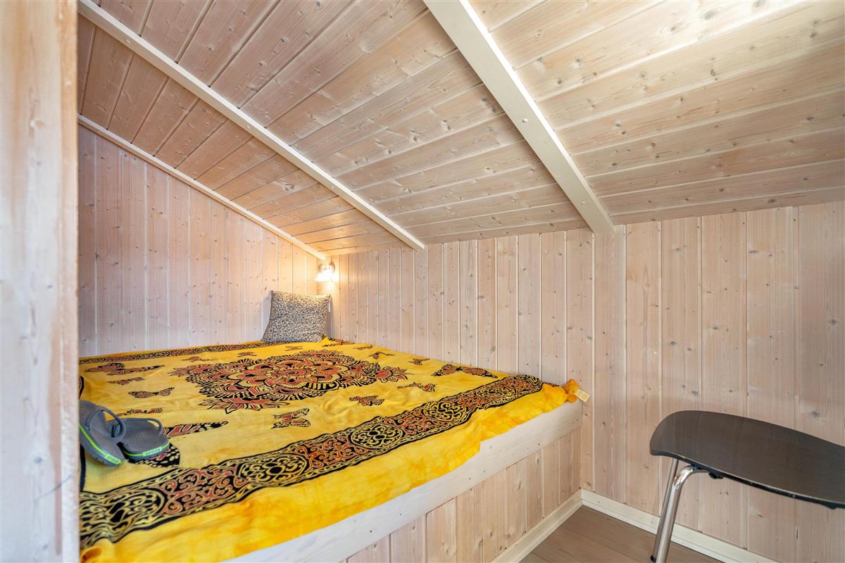 The adjoining kitchen is well-equipped, including a dishwasher and fridge-freezer. A cosy sleeping nook in the living room provides sleeping space for two, while two additional bedrooms, each with a double bed, offer private retreats.