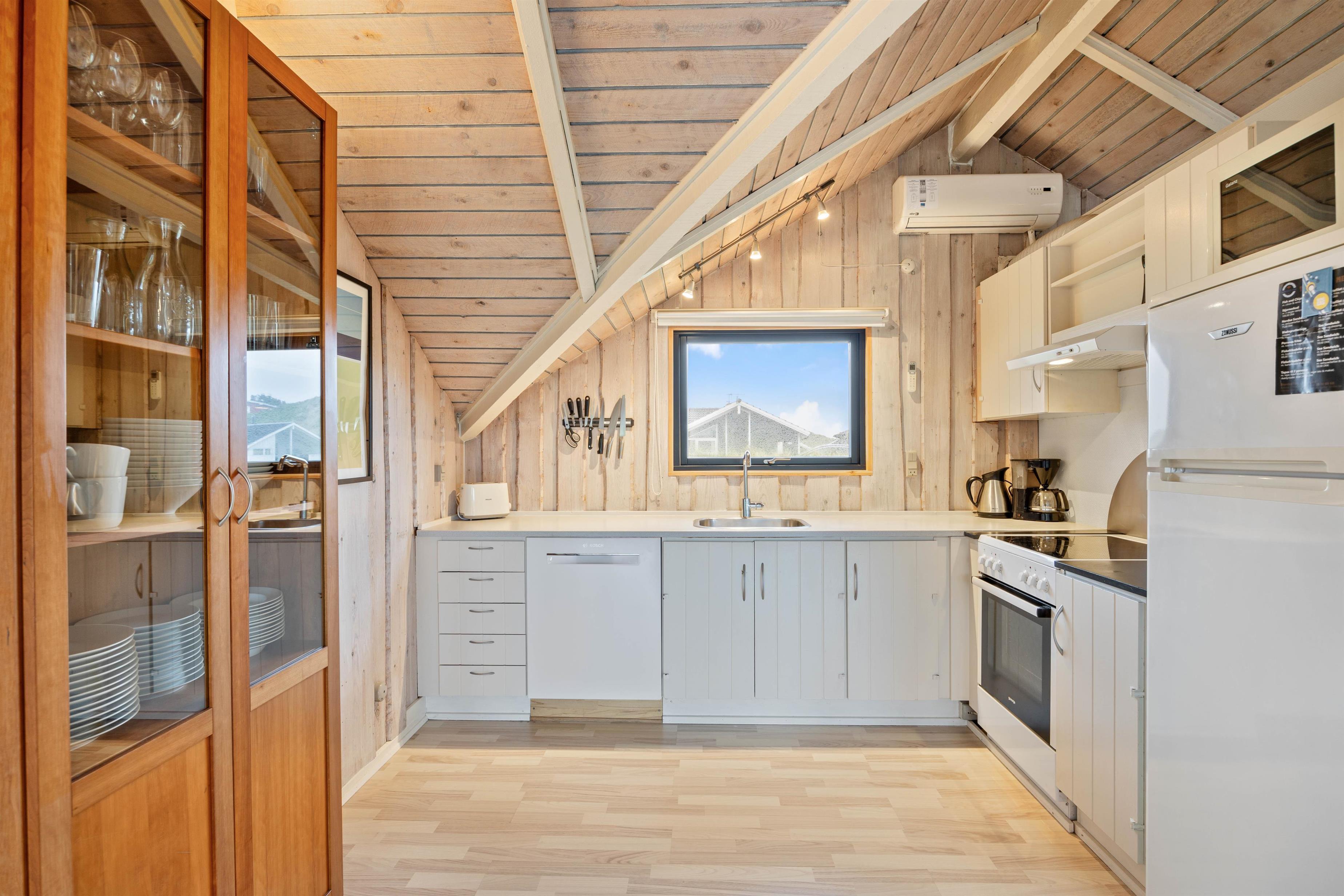 Just 400 metres separates you from the wide sandy beach of the Danish west coast. Here you can take long walks with your dogs, enjoy a refreshing dip in the North Sea, or fly a kite. The heathland and paths along Ringkøbing Fjord are perfect for cycling. A short walk from your holiday home takes you to the local shop, where you can get fresh bread rolls in the morning and all other essential supplies.