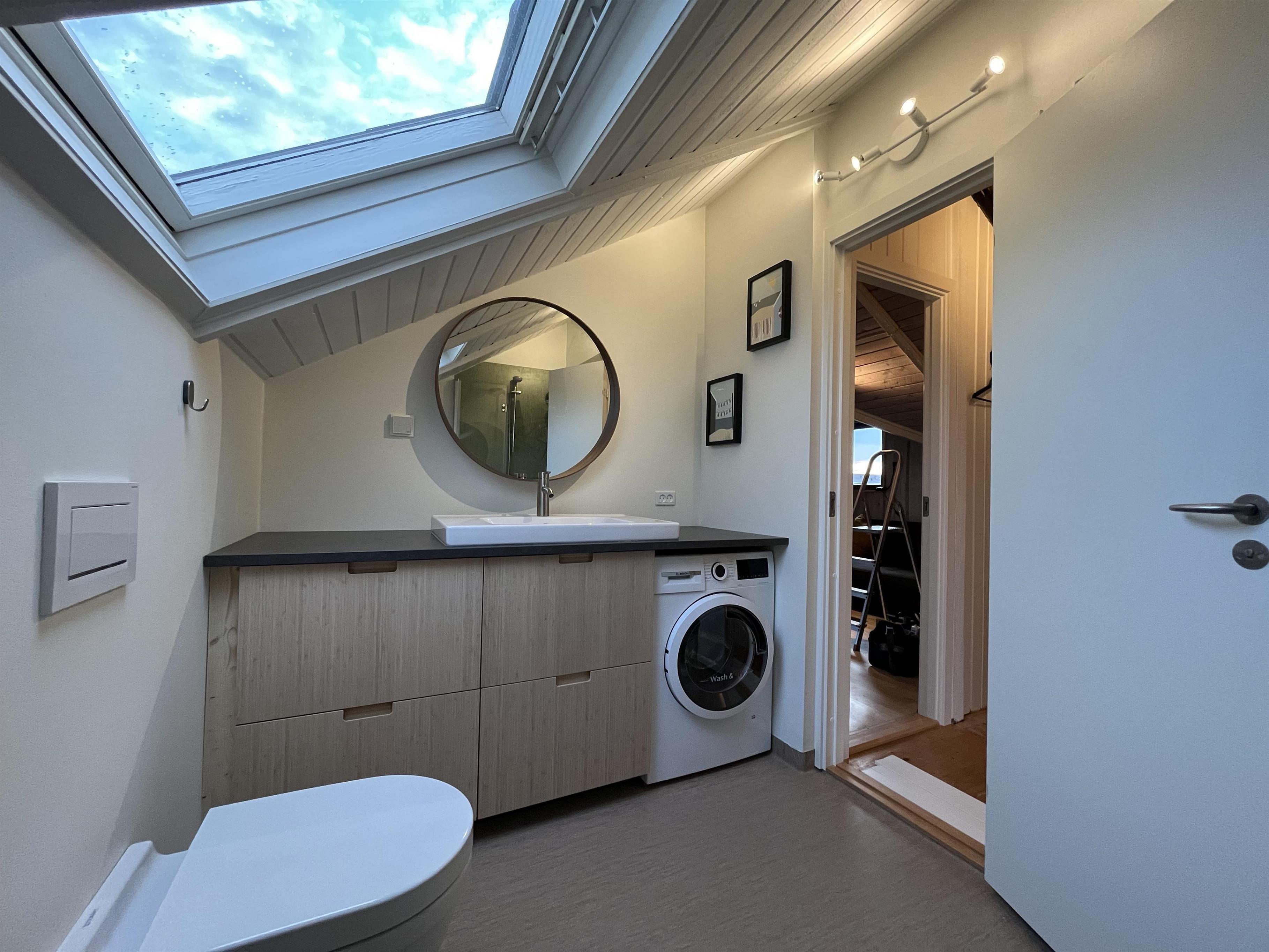 The well-maintained bathroom, which was renovated in 2014, is equipped with a shower, washing machine and tumble dryer. This means you can keep up with laundry throughout your stay.