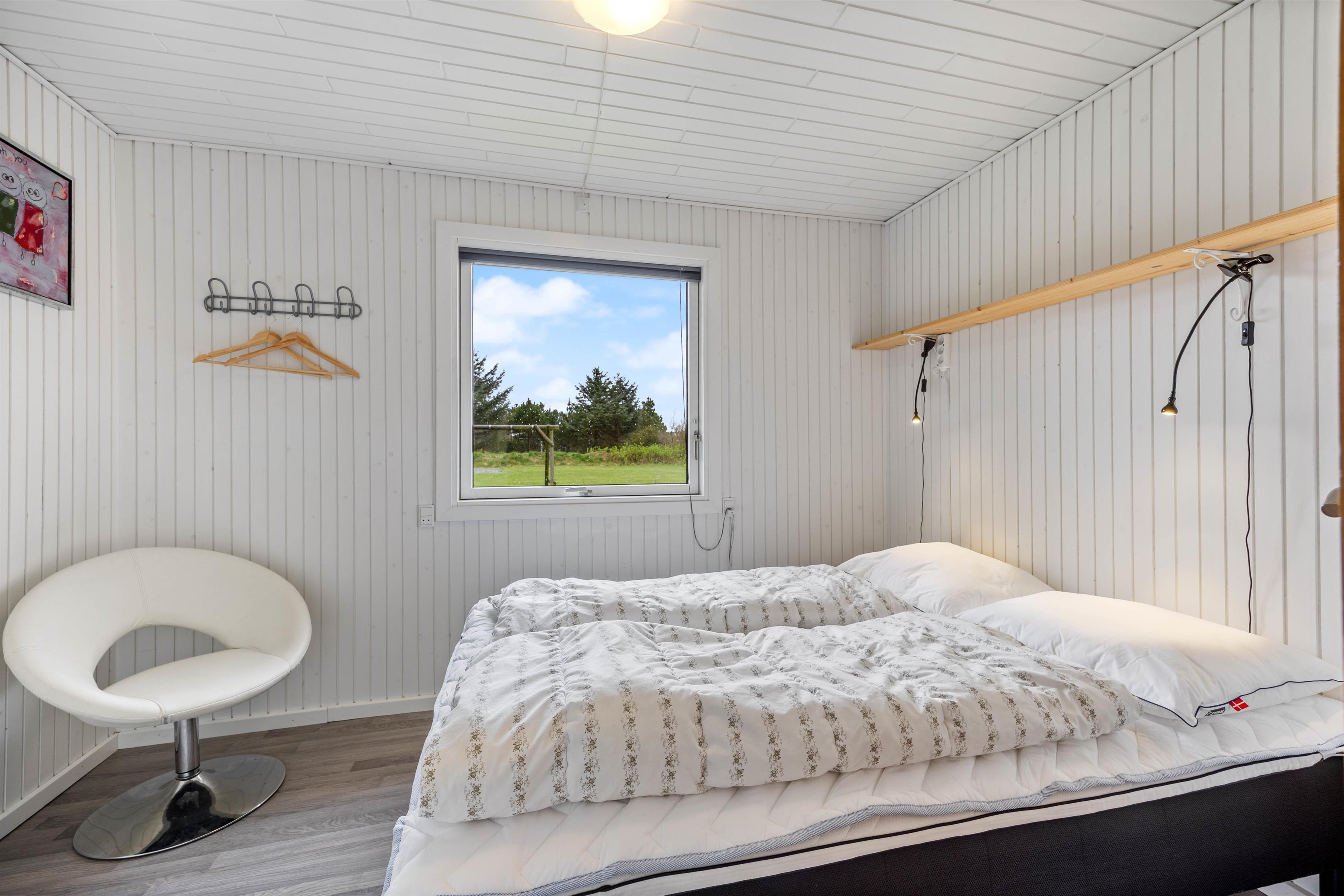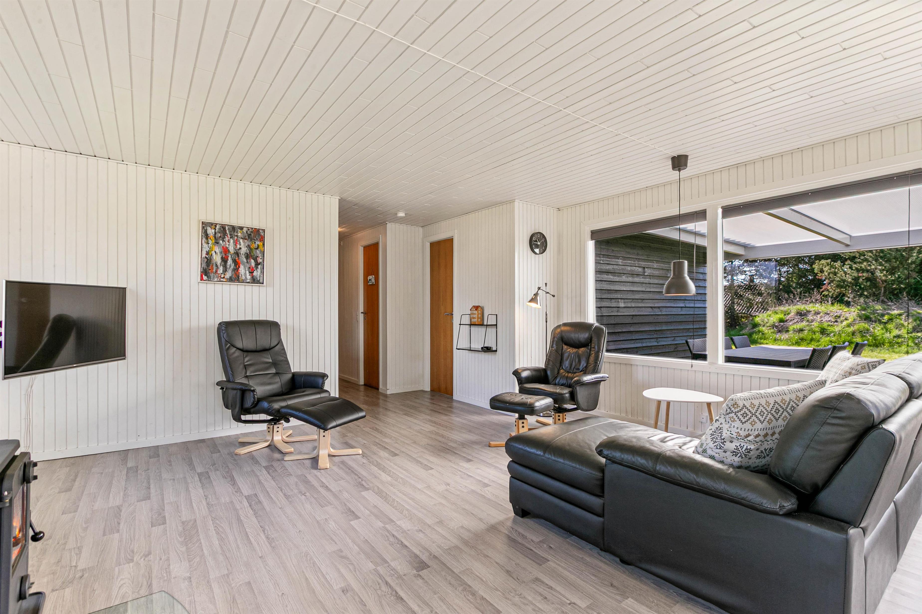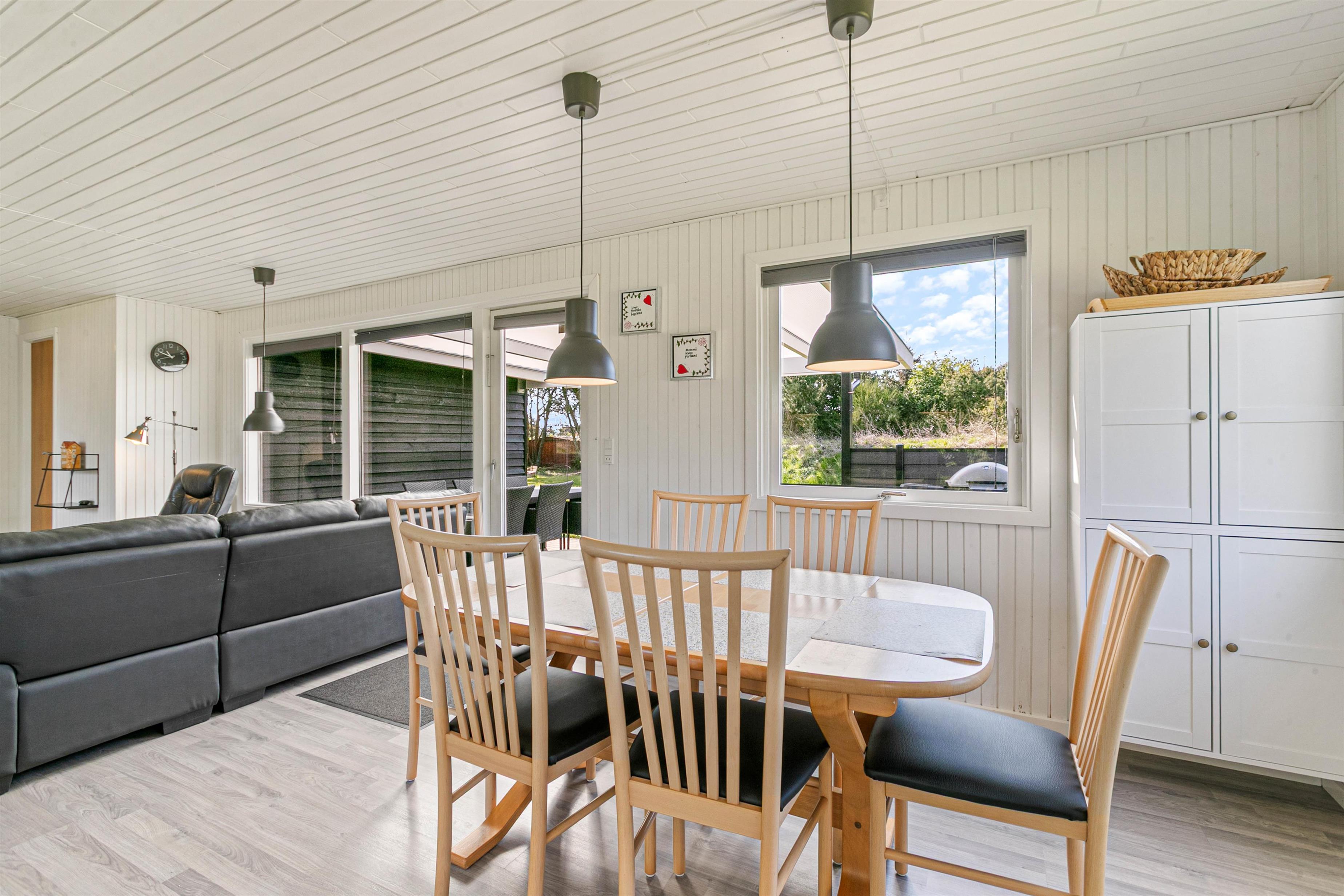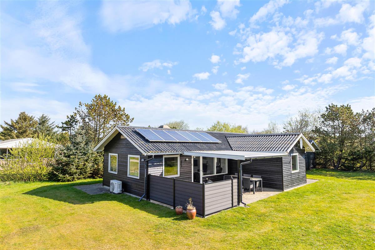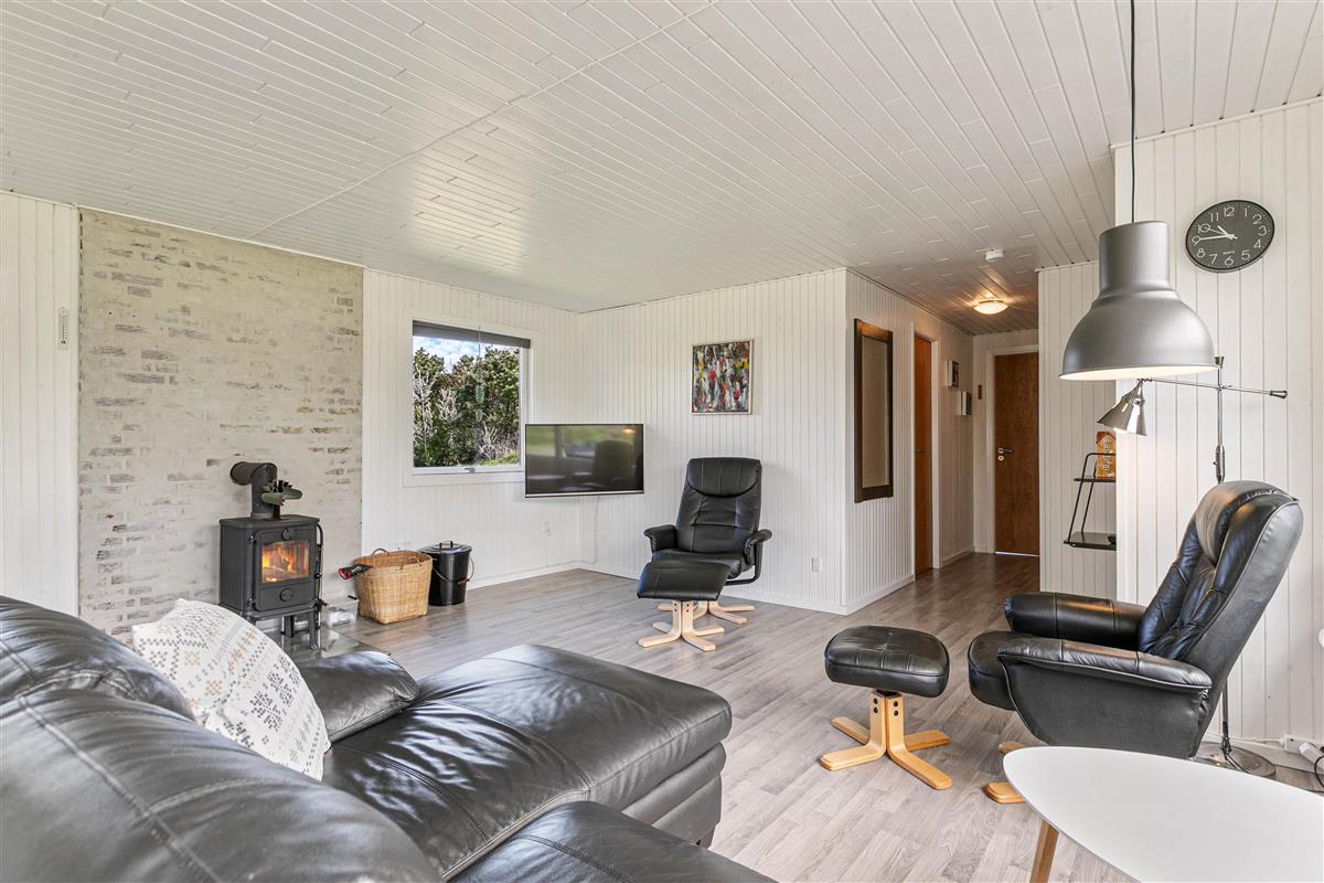 Located at Sigfred Jensens Vej 37 in Bjerregård on the Danish west coast, this classic holiday home features a games room and beautiful garden plot. Renovated in 2023, it now showcases classic Scandinavian style with natural colours and cosy furnishings.