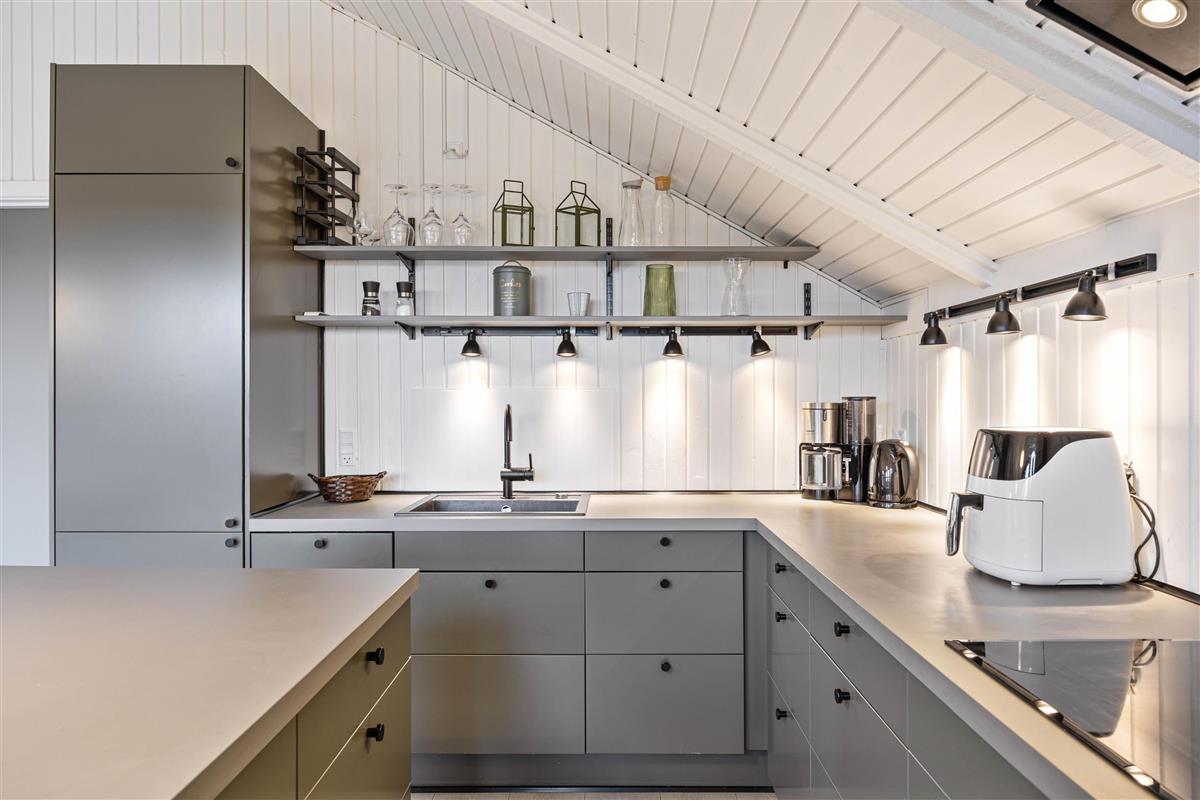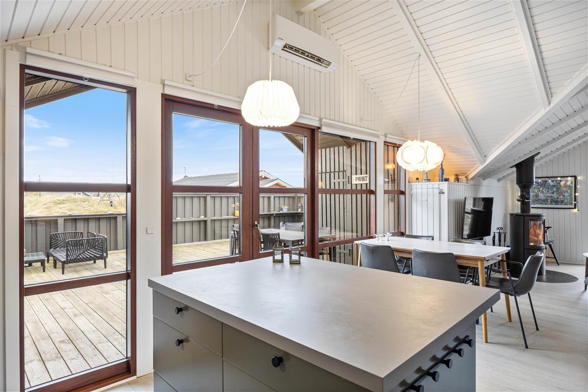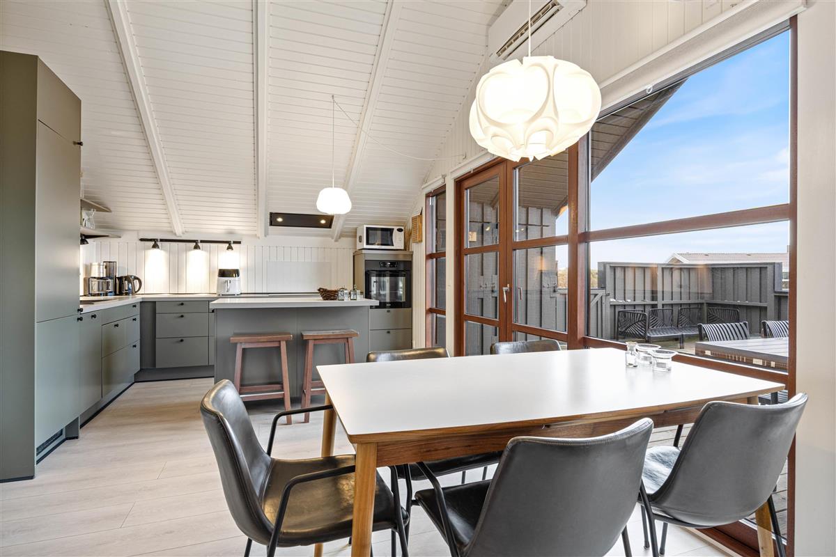 This holiday home provides the perfect setting for a family holiday. The living room, dining area and kitchen are integrated into one space where all family members can gather - whether helping with cooking, reading aloud or planning the next day's adventures. Large windows and patio doors flood the space with natural light.