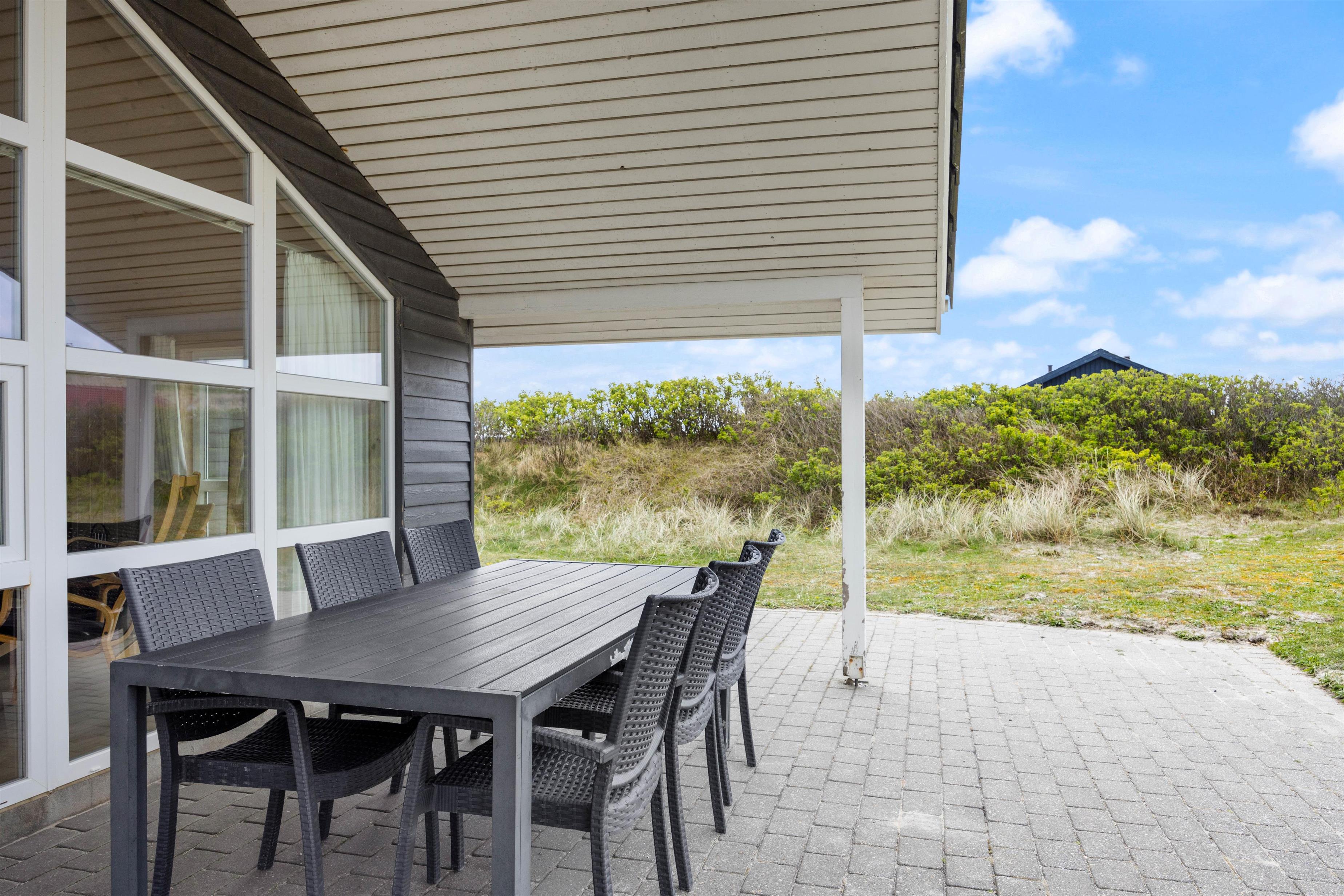 From the large, partially covered terrace, you can enjoy views over the dunes. The holiday home is naturally screened, ensuring your privacy.