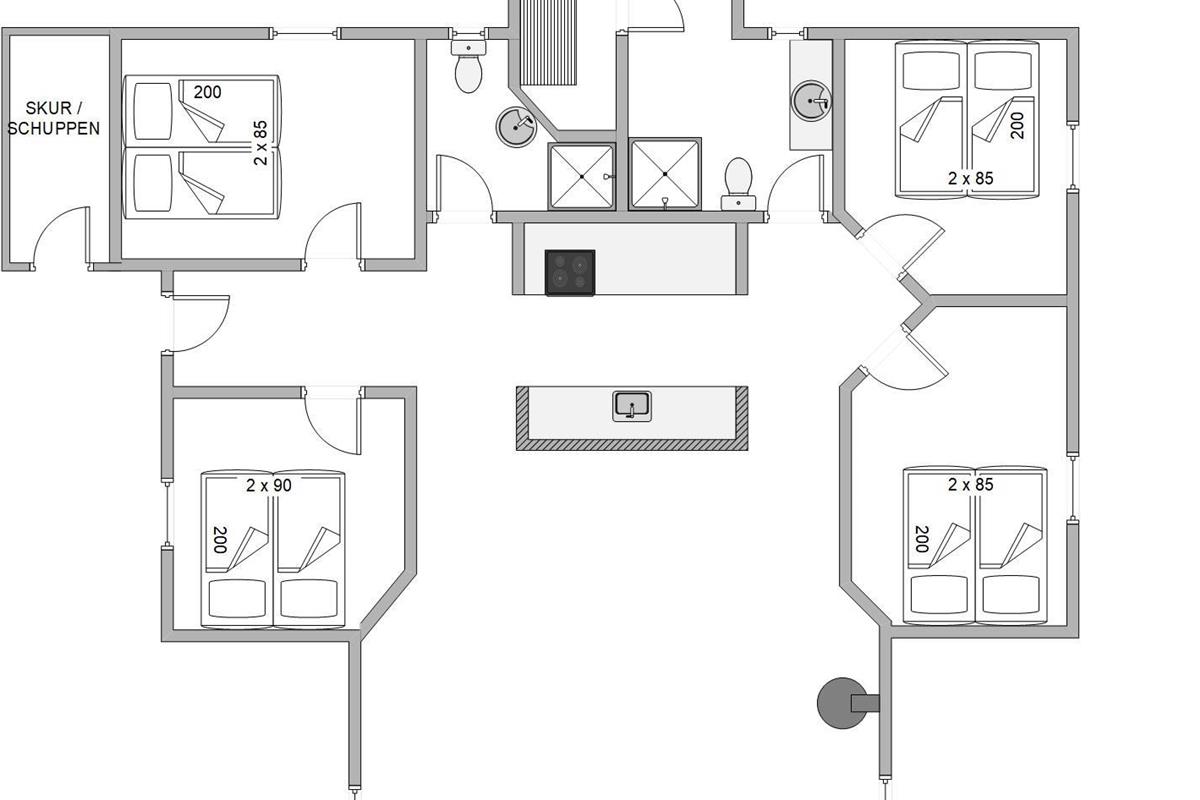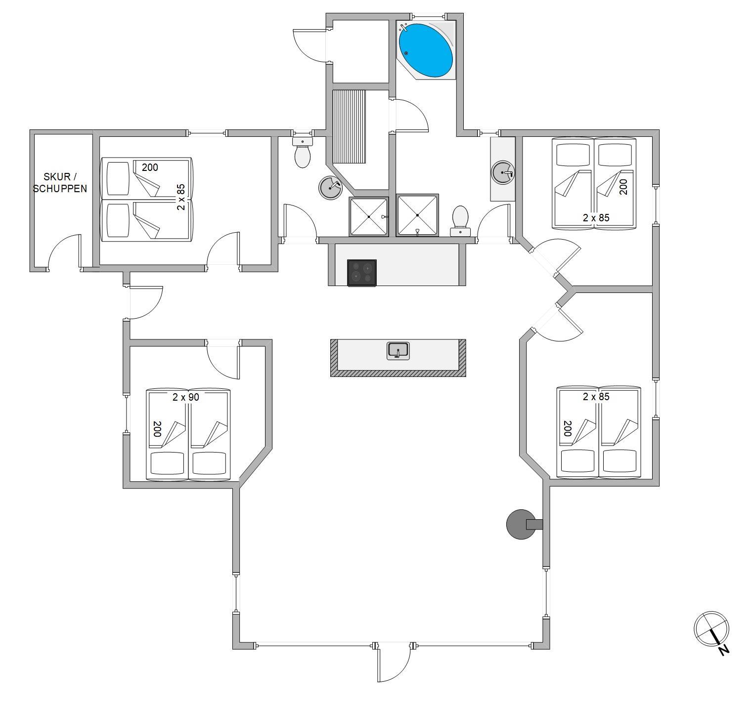 The holiday home also includes two superb bathrooms with underfloor heating and showers. One bathroom features an additional whirlpool for 6 people and a sauna.
