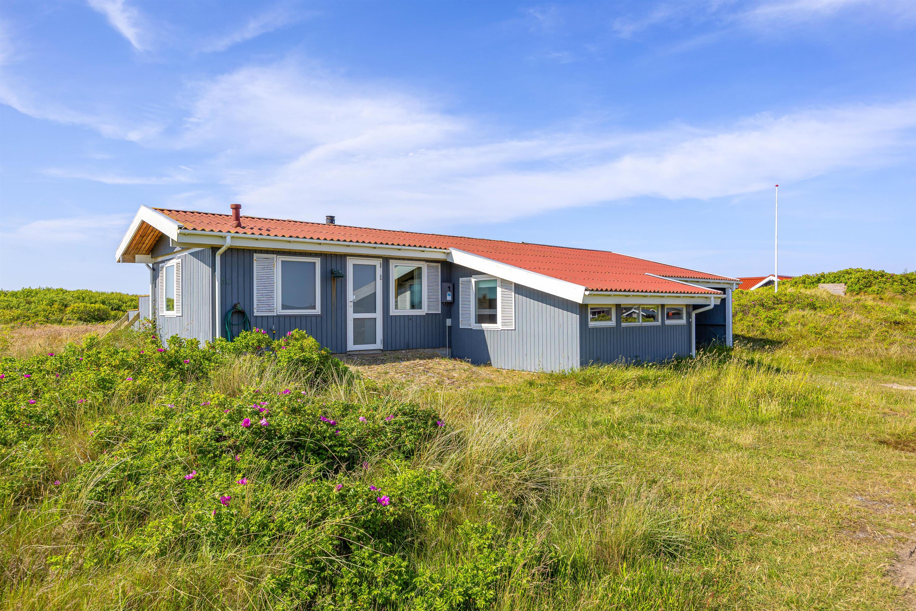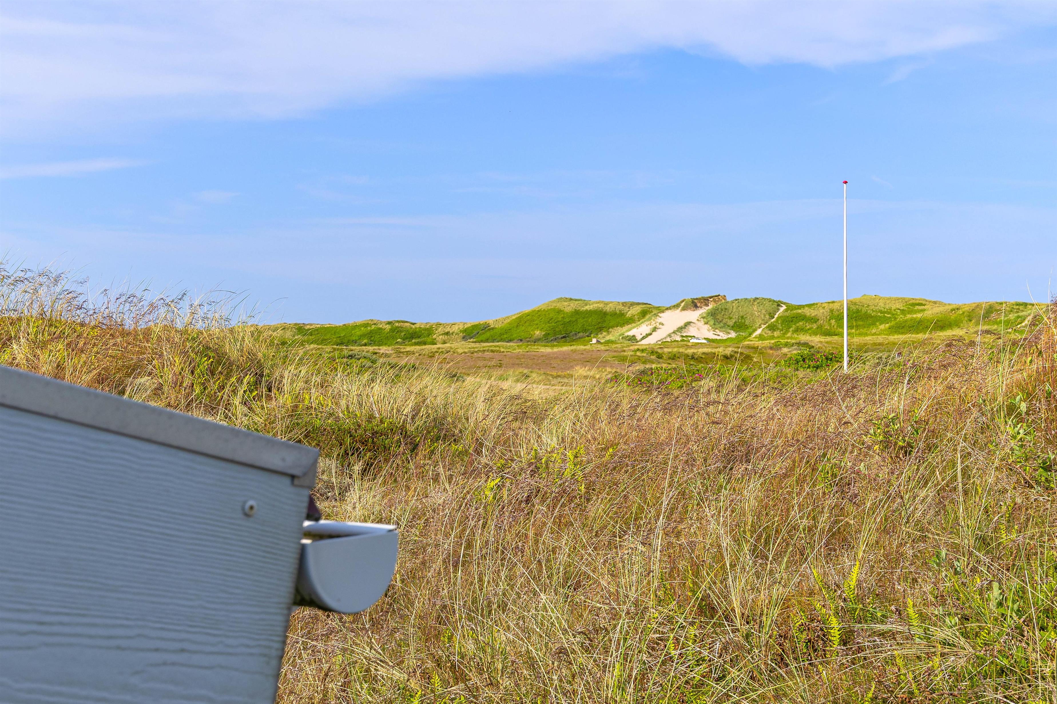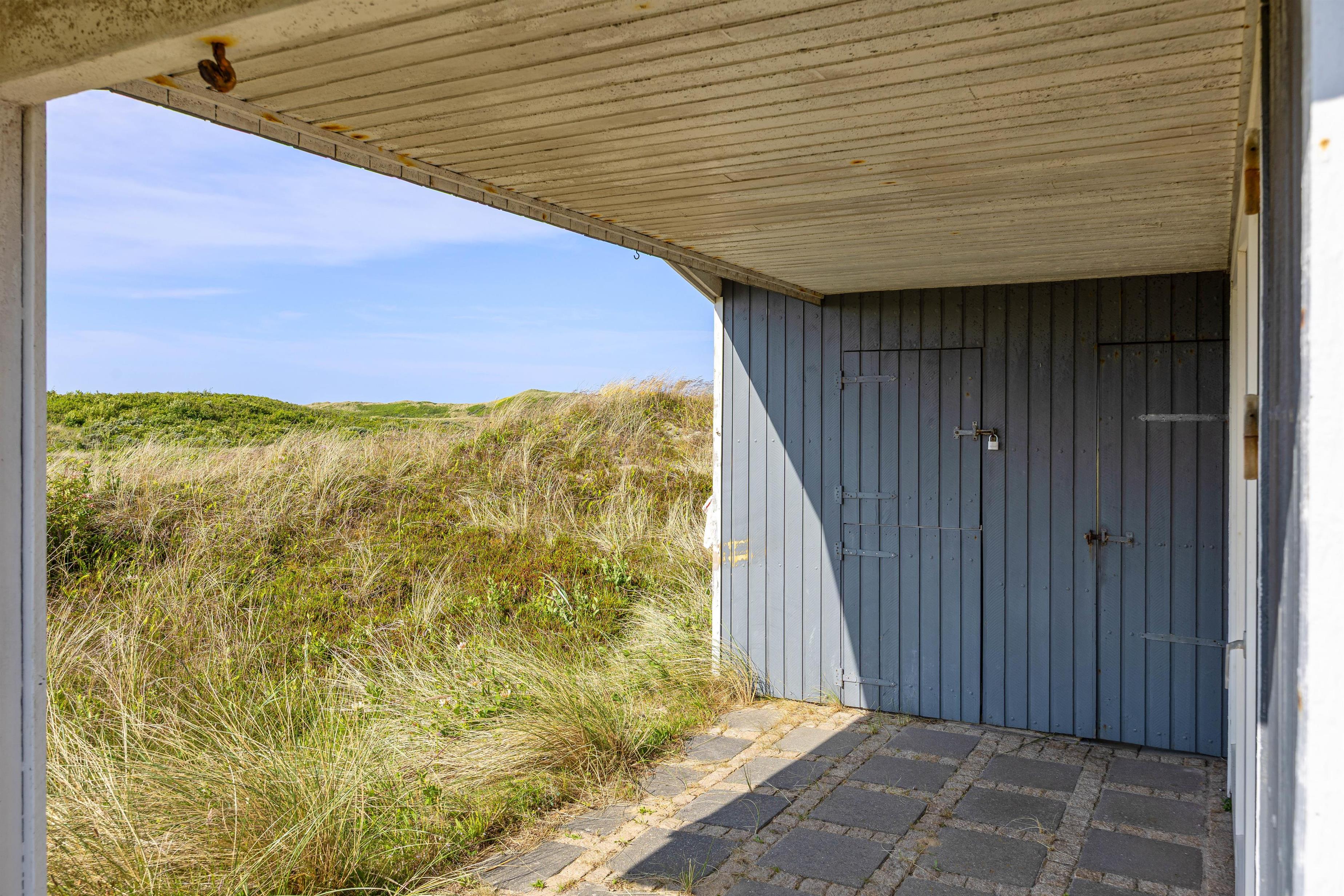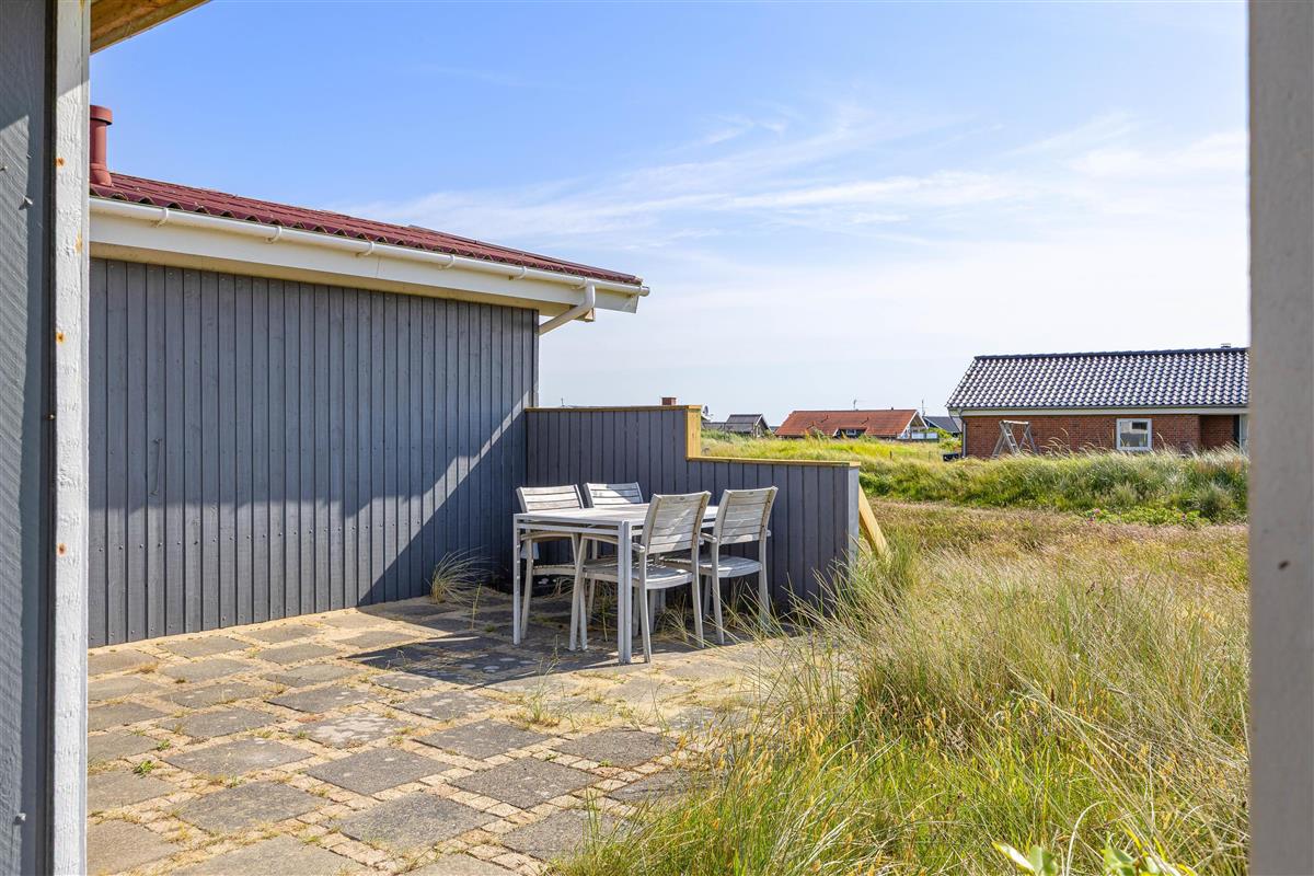 There is both a covered and a shielded part of the terrace where you can find shelter and enjoy a cup of coffee or a meal. The surrounding grounds are approximately 1,270 m², and there is the opportunity to barbecue on summer evenings, weather permitting. The view is characterised by the surrounding natural grounds and dune landscape.