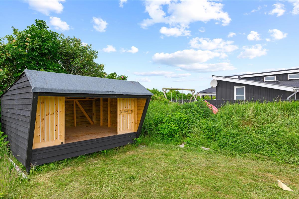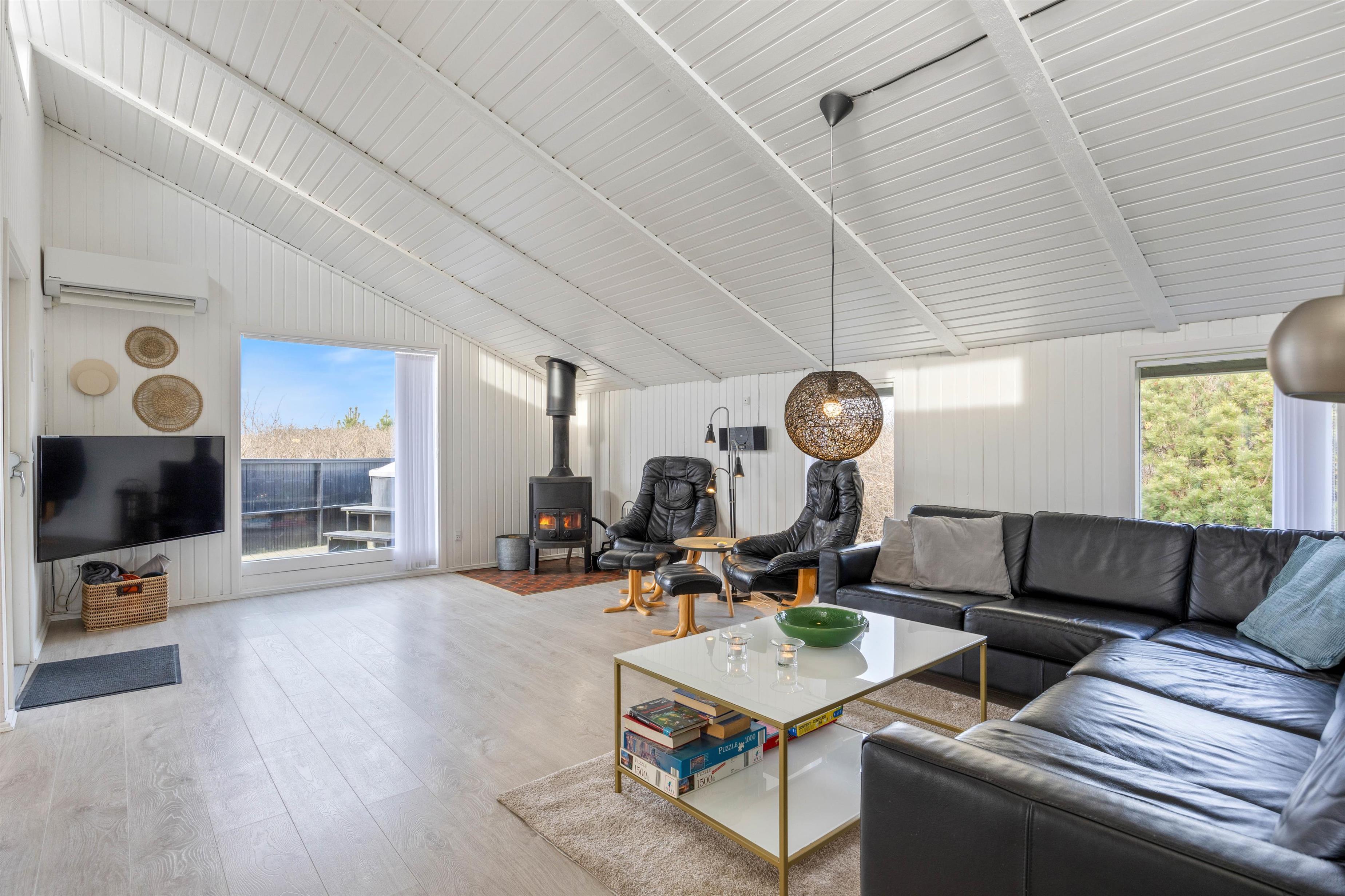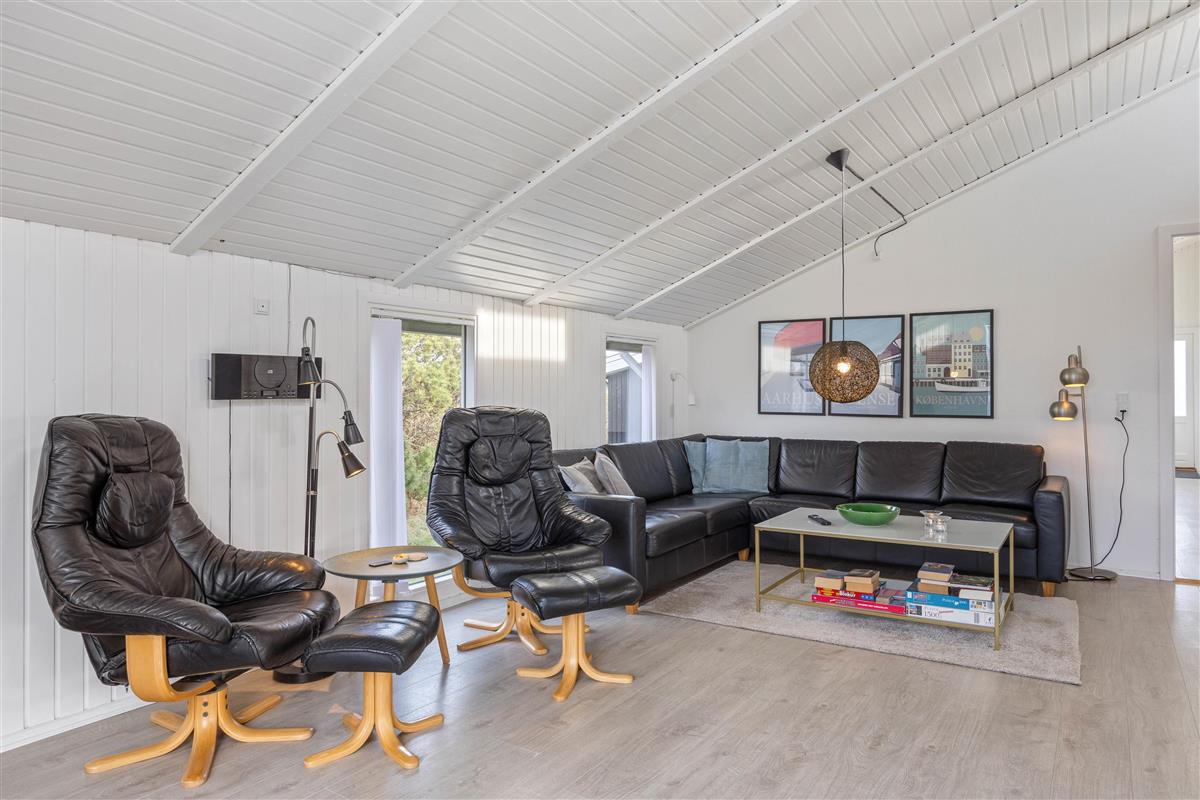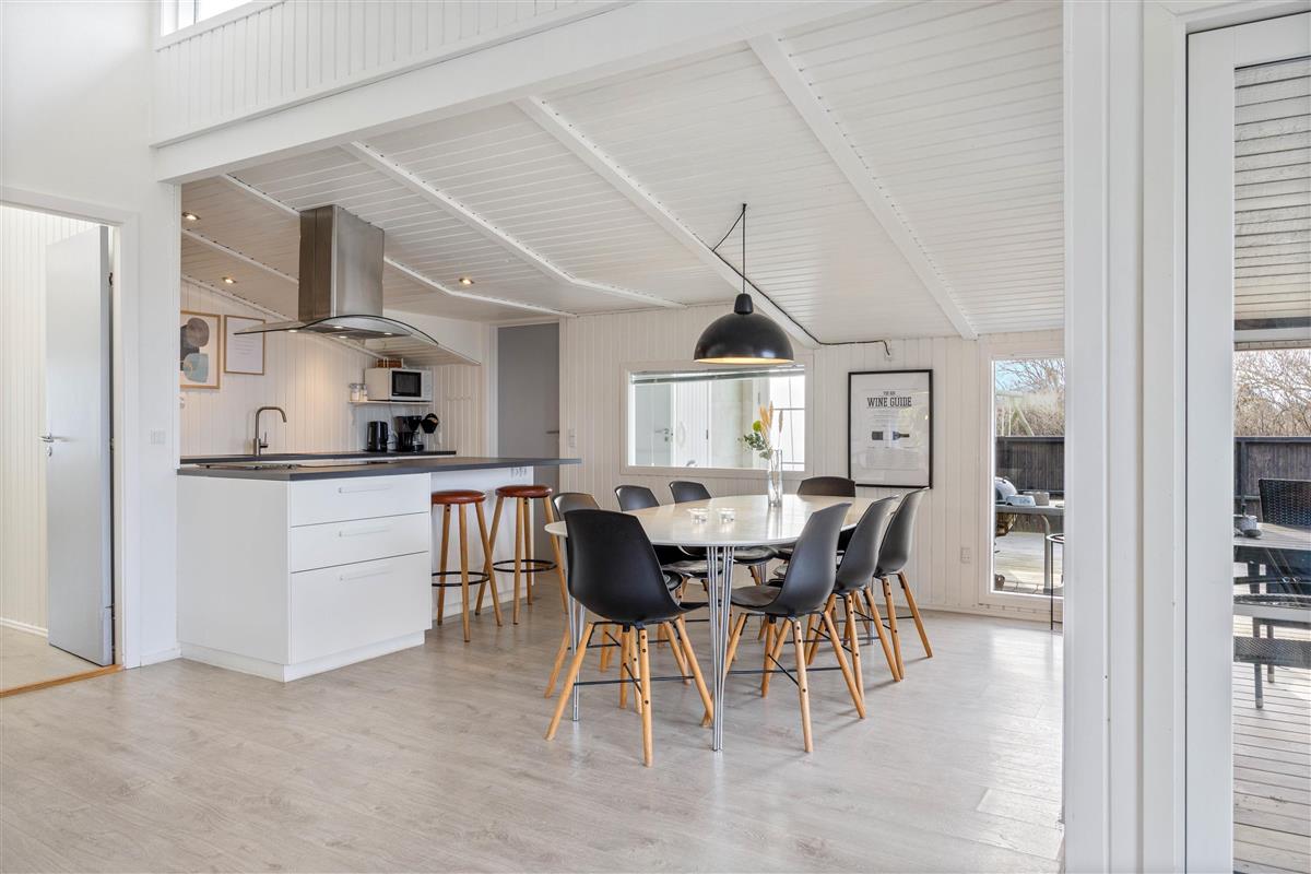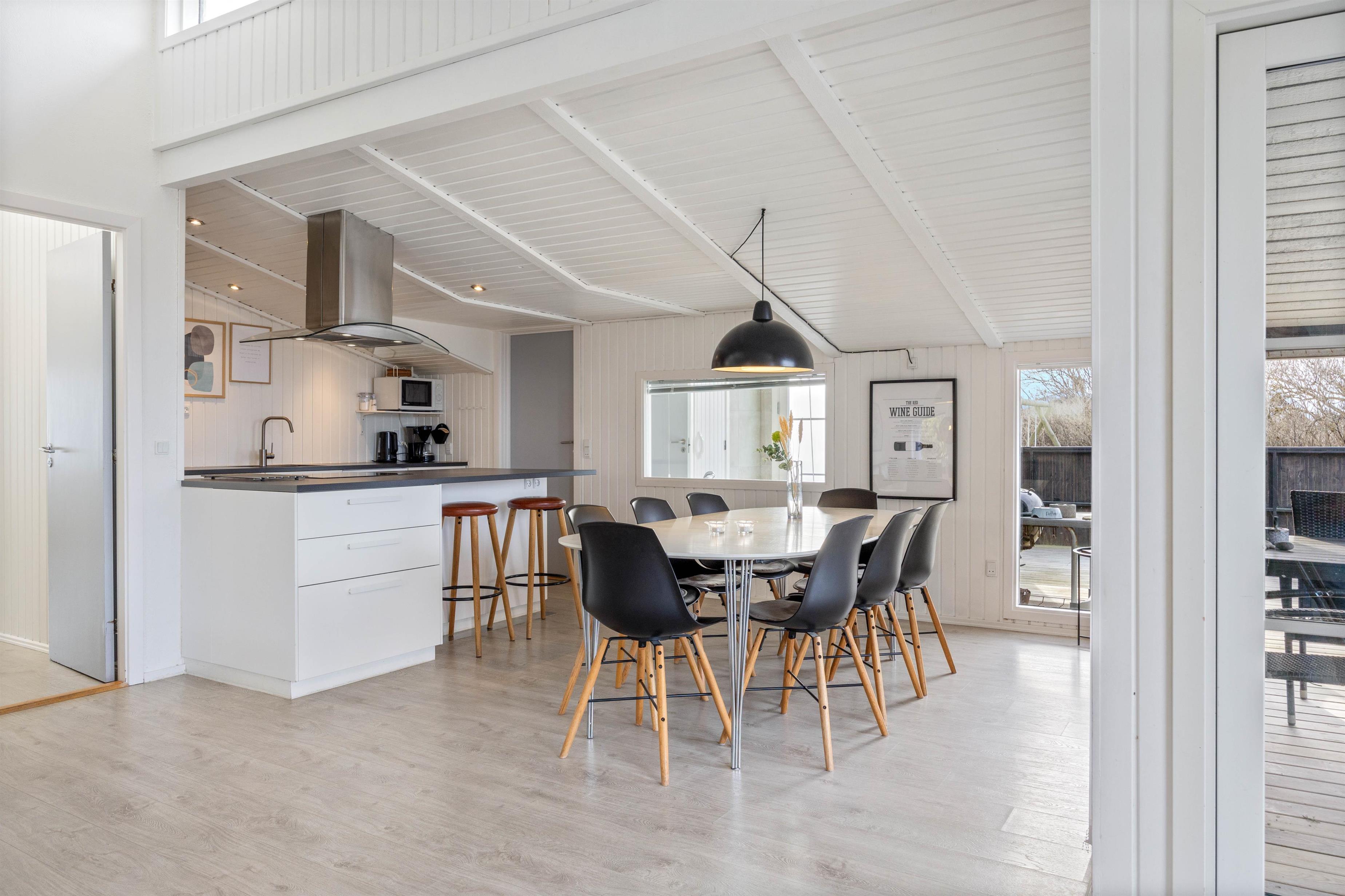 Located in the heart of this holiday destination at Julianevej 1, Bjerregård, you'll find this exciting holiday home, beautifully renovated in 2020. The holiday home's distinctive roof design features a series of skylights that flood the interior with natural light, creating a bright and welcoming atmosphere.