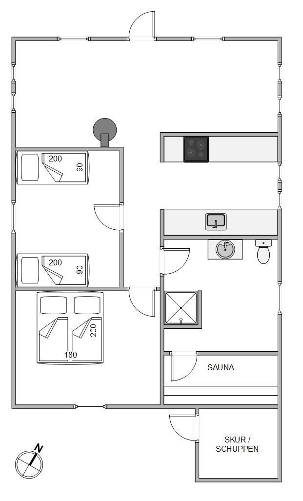 This holiday home, furnished in typical Scandinavian style, features a bright, welcoming living area that invites you to relax by the wood-burning stove. The whole family can get comfortable on the cosy sofa for a DVD evening together. The holiday home receives three German TV channels. If you prefer not to use the wood-burner, the energy-efficient heat pump provides heating throughout.