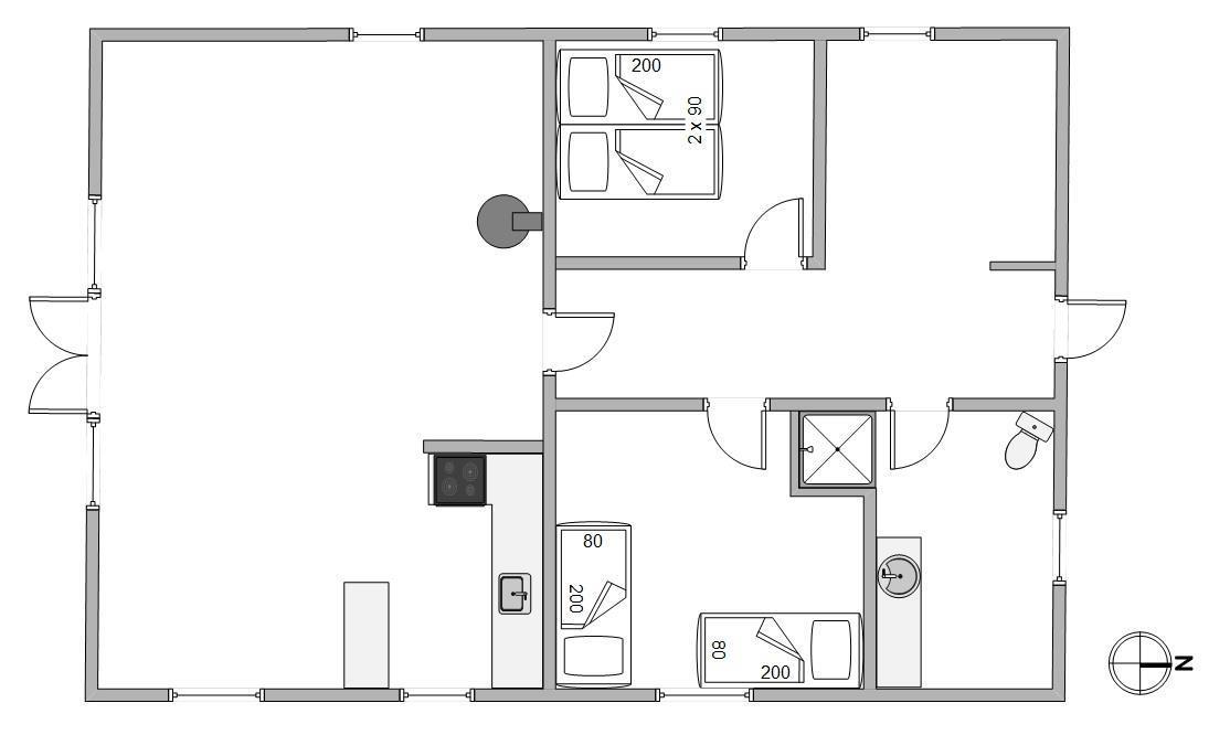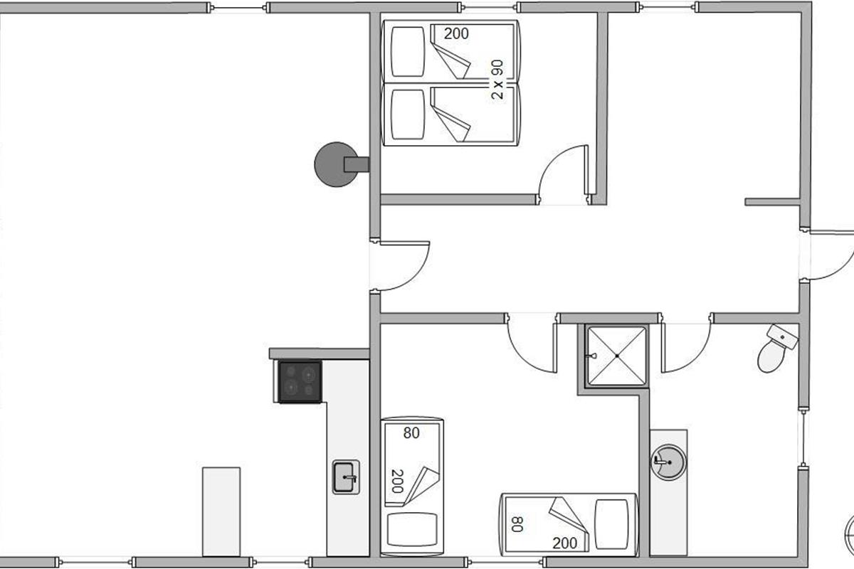 Your holiday home offers 75 square metres of living space with a well-designed layout perfectly suited to your needs. As is typical in Danish holiday homes, there's a central living space combining the kitchen, dining area and living room.