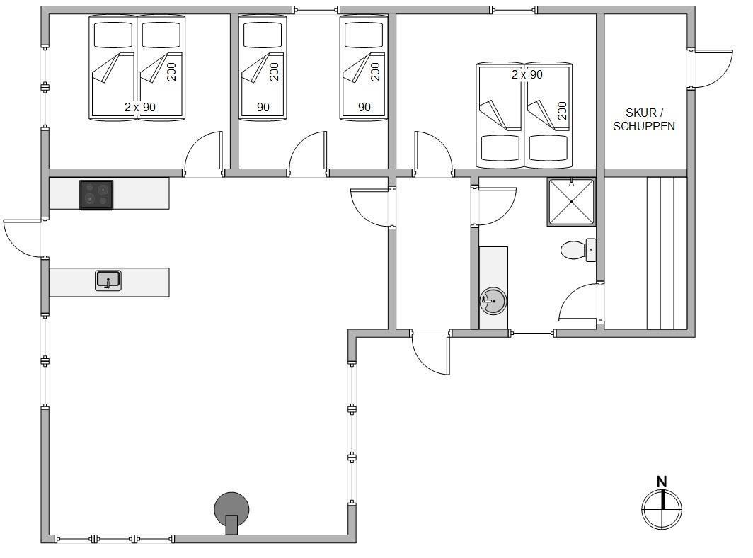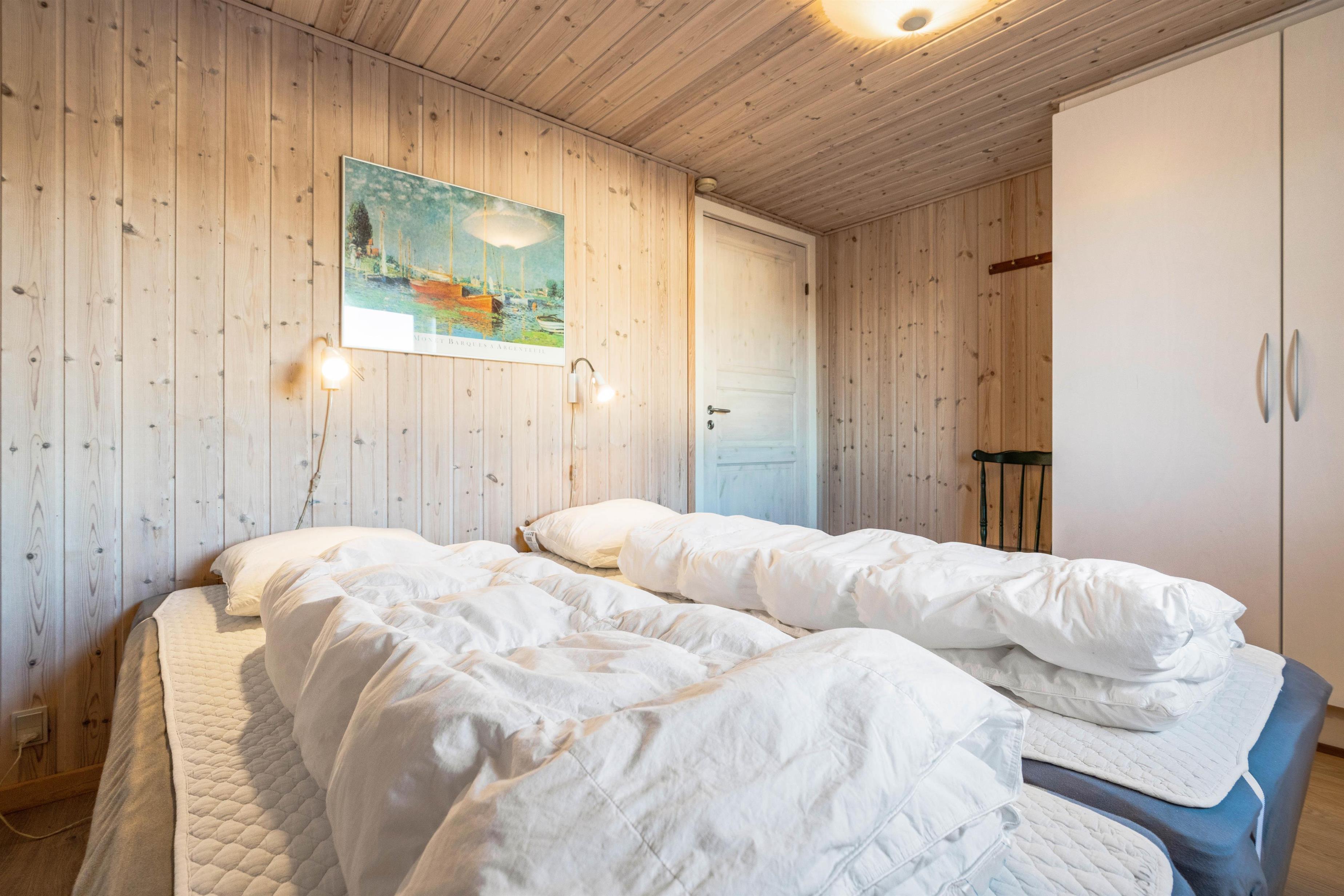 In the open-plan kitchen, which adjoins the living area, you'll find everything needed to treat yourselves to delicious home-cooked meals. Fishing enthusiasts will particularly appreciate the separate 100-litre freezer. The three comfortable bedrooms feature two double beds and two single beds, ensuring a restful night's sleep.