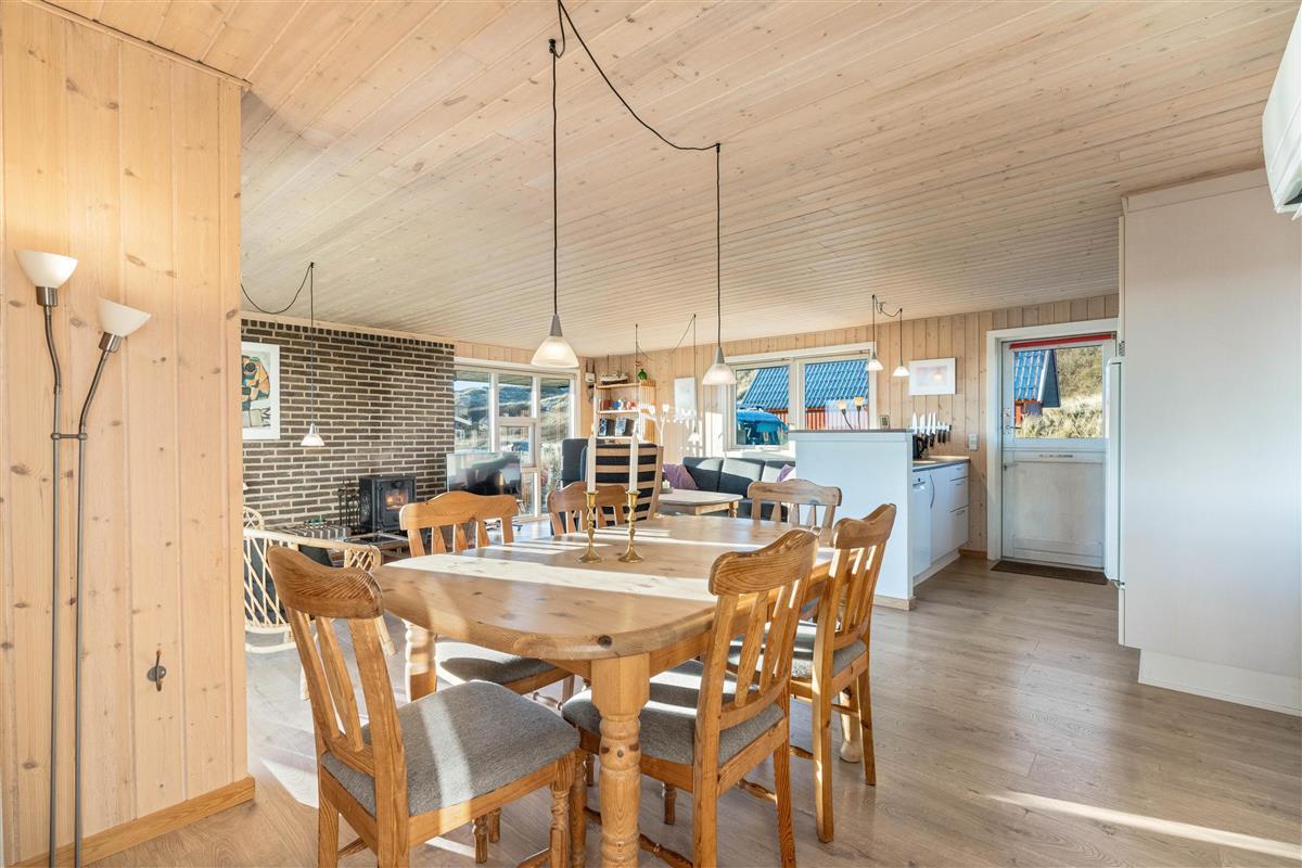 This beautiful holiday home is bright and welcoming, furnished in typical Scandinavian style to make you feel at home straight away. The spacious living area is perfect for game nights or family meals. Make yourself comfortable on the cosy sofa in front of the warming wood-burning stove, watch a DVD together or settle down with a good book.