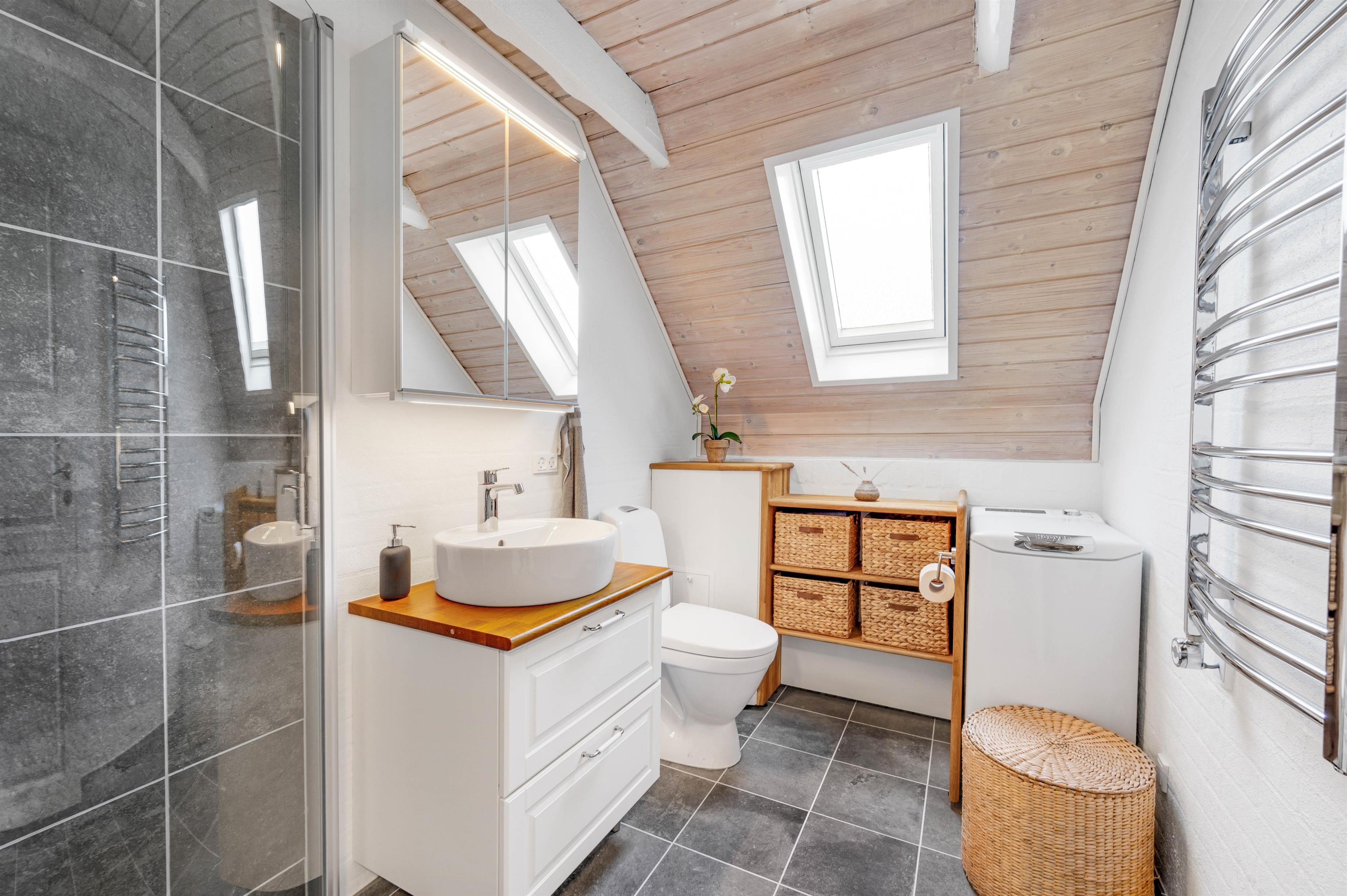 The three bedrooms are comfortably furnished, with double beds (140x200cm and 180x200cm) in two of them. The third bedroom has a single bed measuring 90x180cm. The bathroom, which features underfloor heating and a heated towel rail, has a modern, bright design. A washing machine is provided for added convenience.
