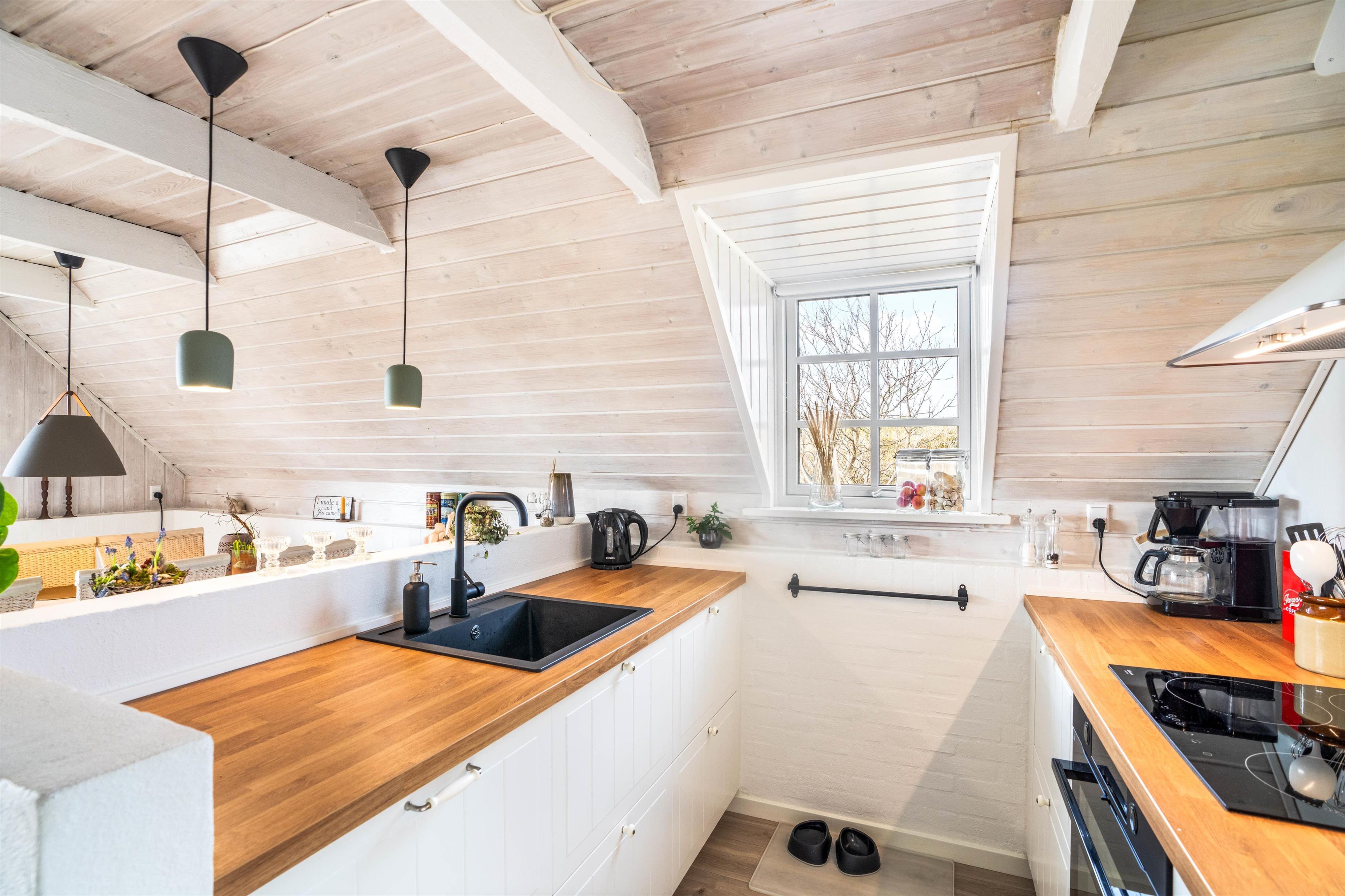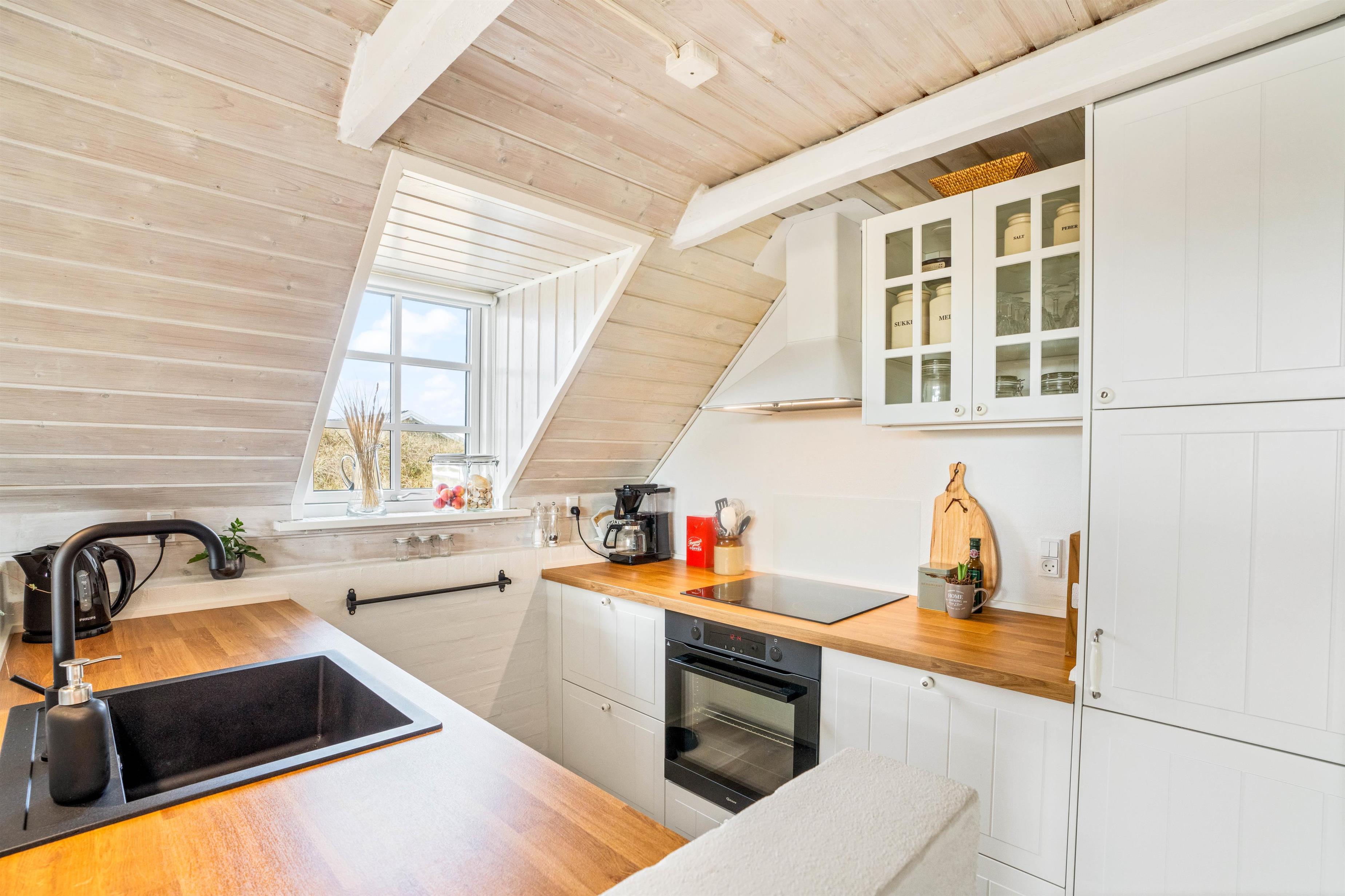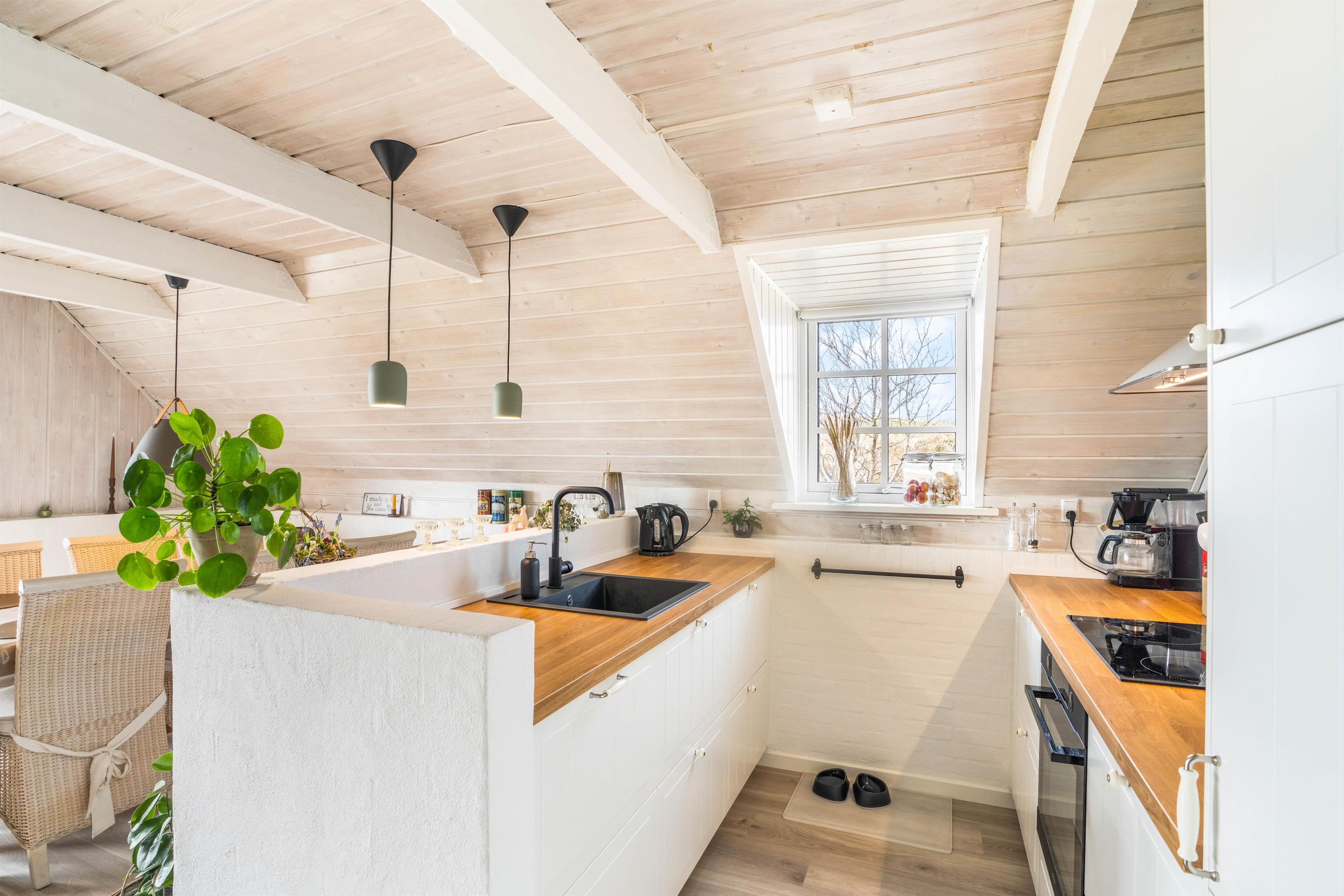 The holiday home sits on a beautiful natural plot on a quiet side street in Bjerregård. The peaceful surroundings make it perfect for a relaxing, undisturbed holiday.