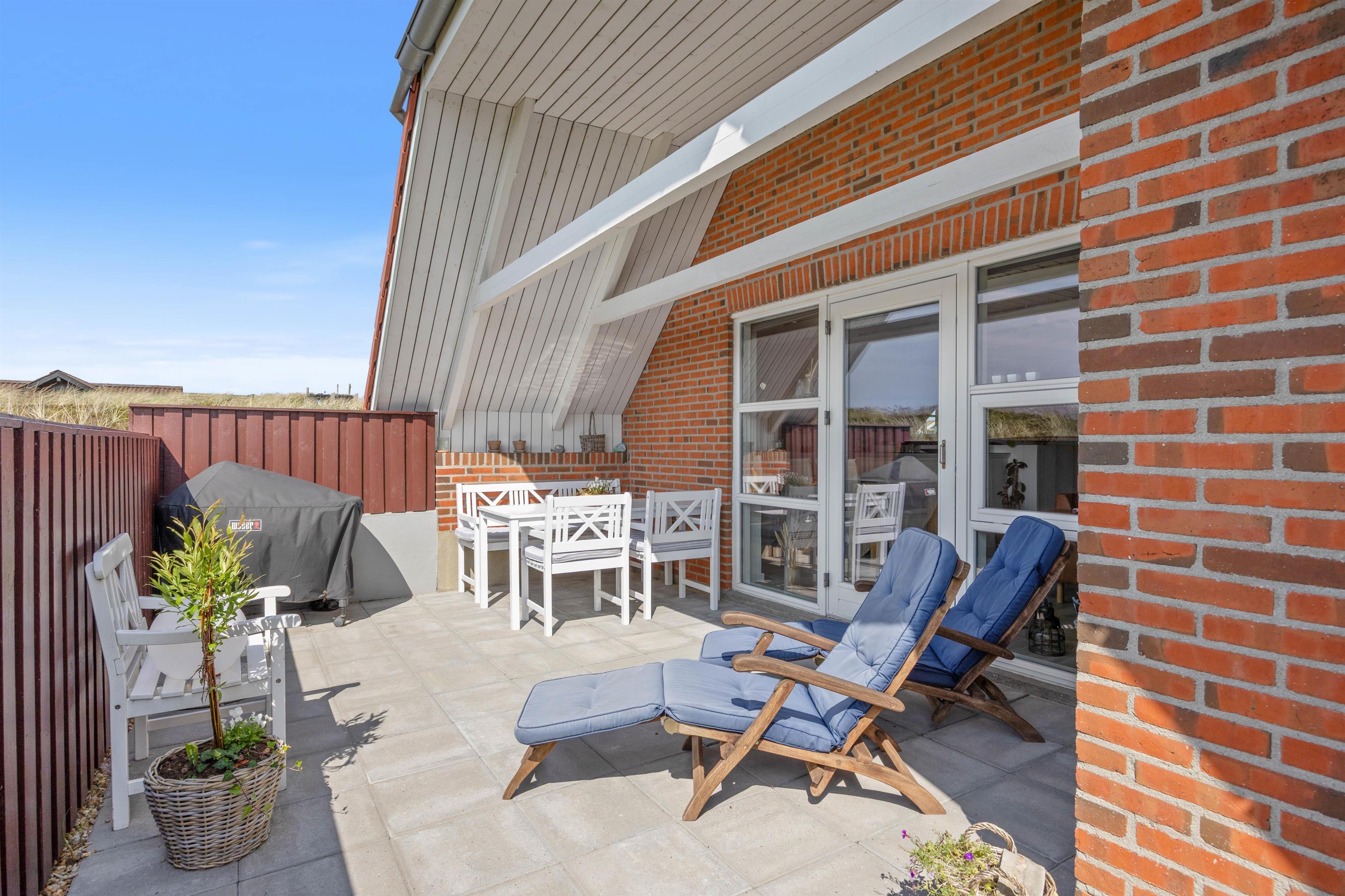 Around the holiday home, there are several spots where you can enjoy the sunshine and nature. Part of the terrace is enclosed, making it ideal for dogs, ensuring they can't wander off.