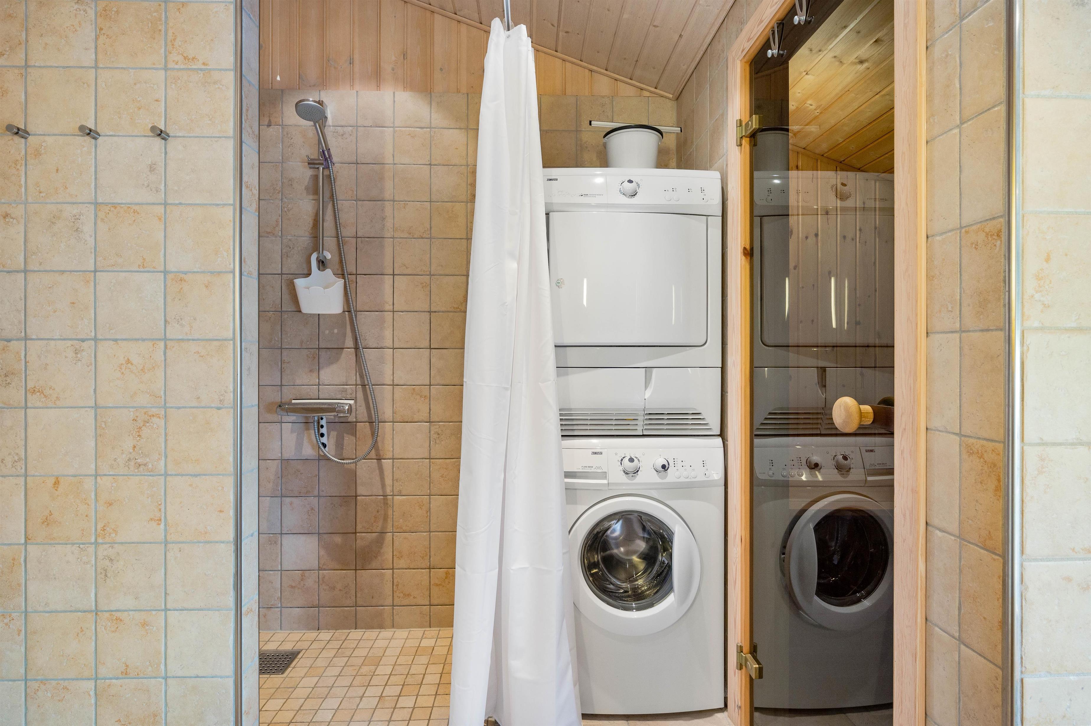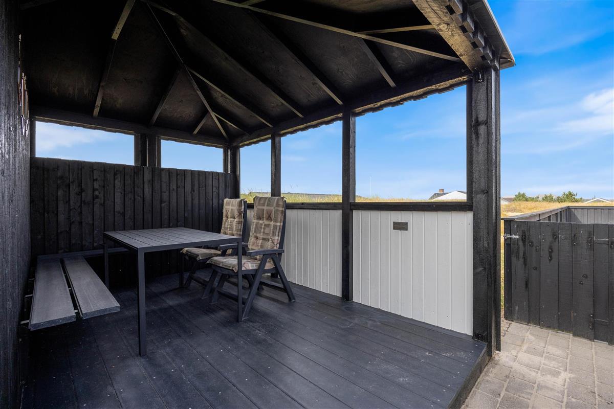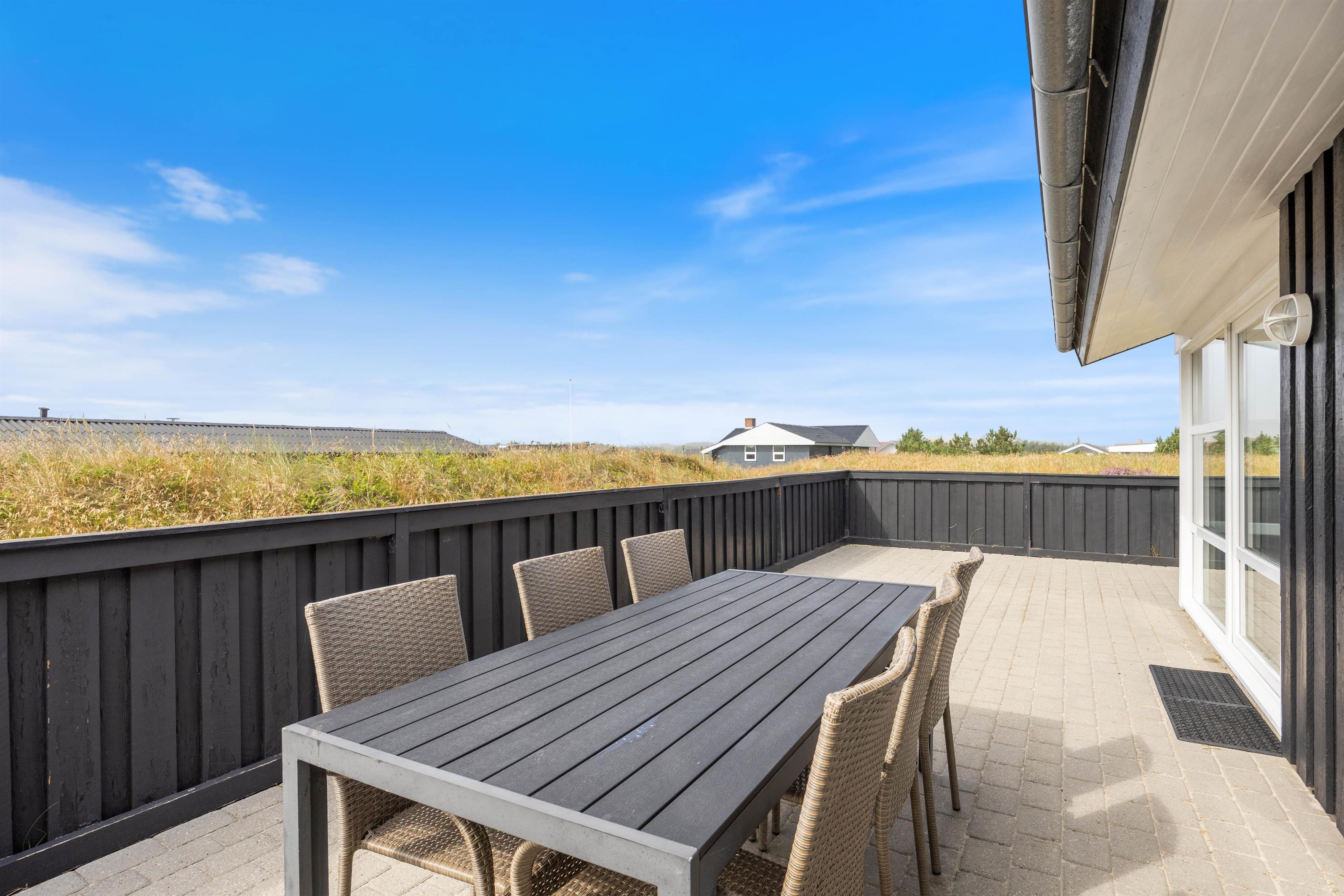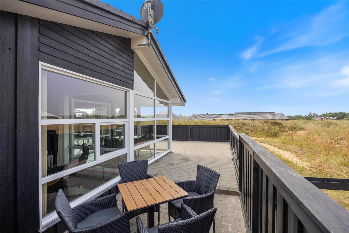 The outdoor area features a large enclosed terrace that wraps around three sides of the house. Here you'll find plenty of opportunities to enjoy nature and sunshine throughout the day from comfortable garden furniture and sun loungers. In the evening, the barbecue is perfect for social gatherings. Children can enjoy themselves on the swing and in the sandpit.
