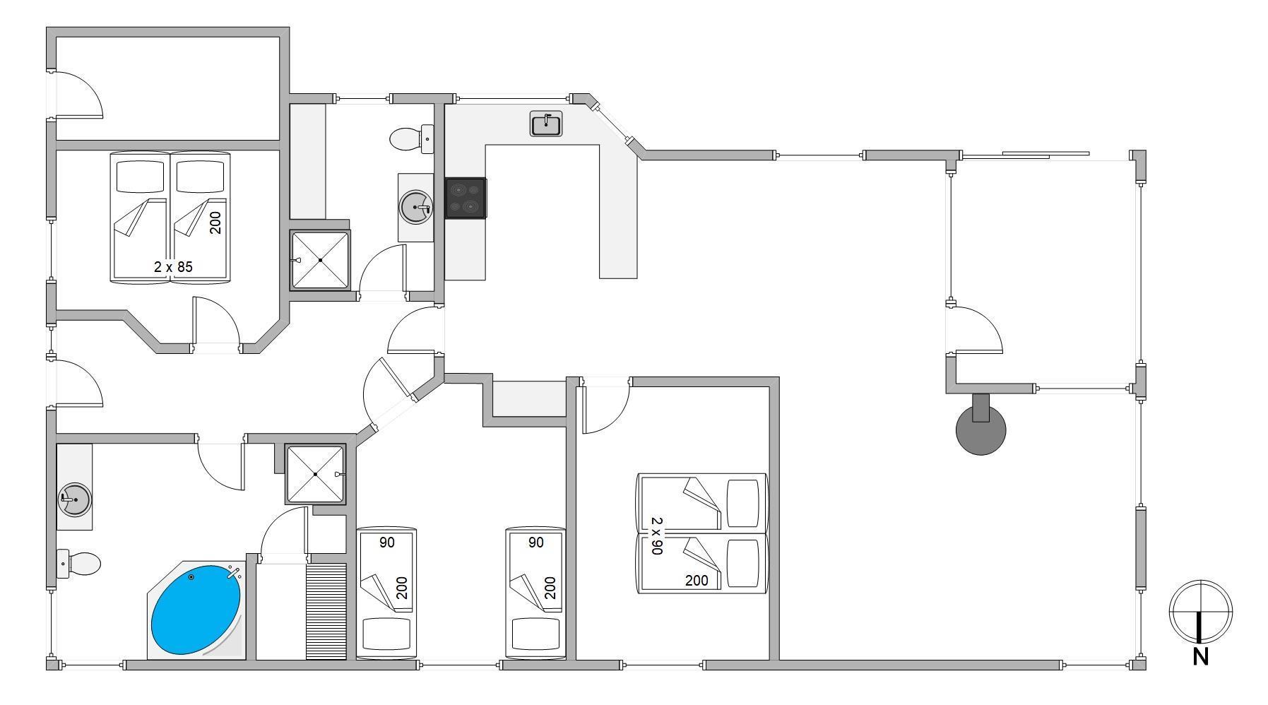 Located at Dortheasvej 49 in the Bjerregård holiday region, this beautifully furnished holiday home features a large, enclosed terrace and a cosy conservatory. The holiday home offers its own wellness suite with whirlpool and sauna. The attractive interior includes elegant furniture and stylish brick flooring. There's space for 6 people in 3 comfortable bedrooms.
