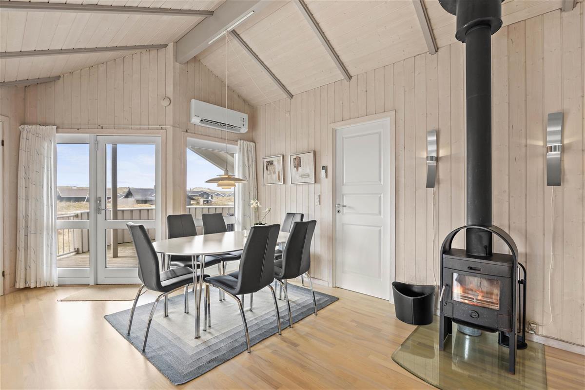 A lovely, well-maintained holiday home with two fenced terraces - ideal if you're travelling with small children or a dog. The wood-burning stove creates a cosy atmosphere in the living area, whilst a whirlpool and sauna are available for relaxation. Besides being close to the sea, the location is perfect for long walks in the heathland or leisurely cycling tours along the Danish west coast.