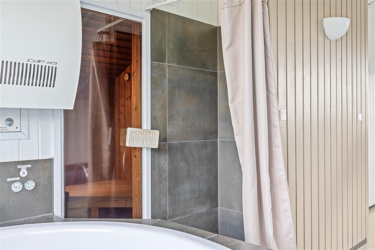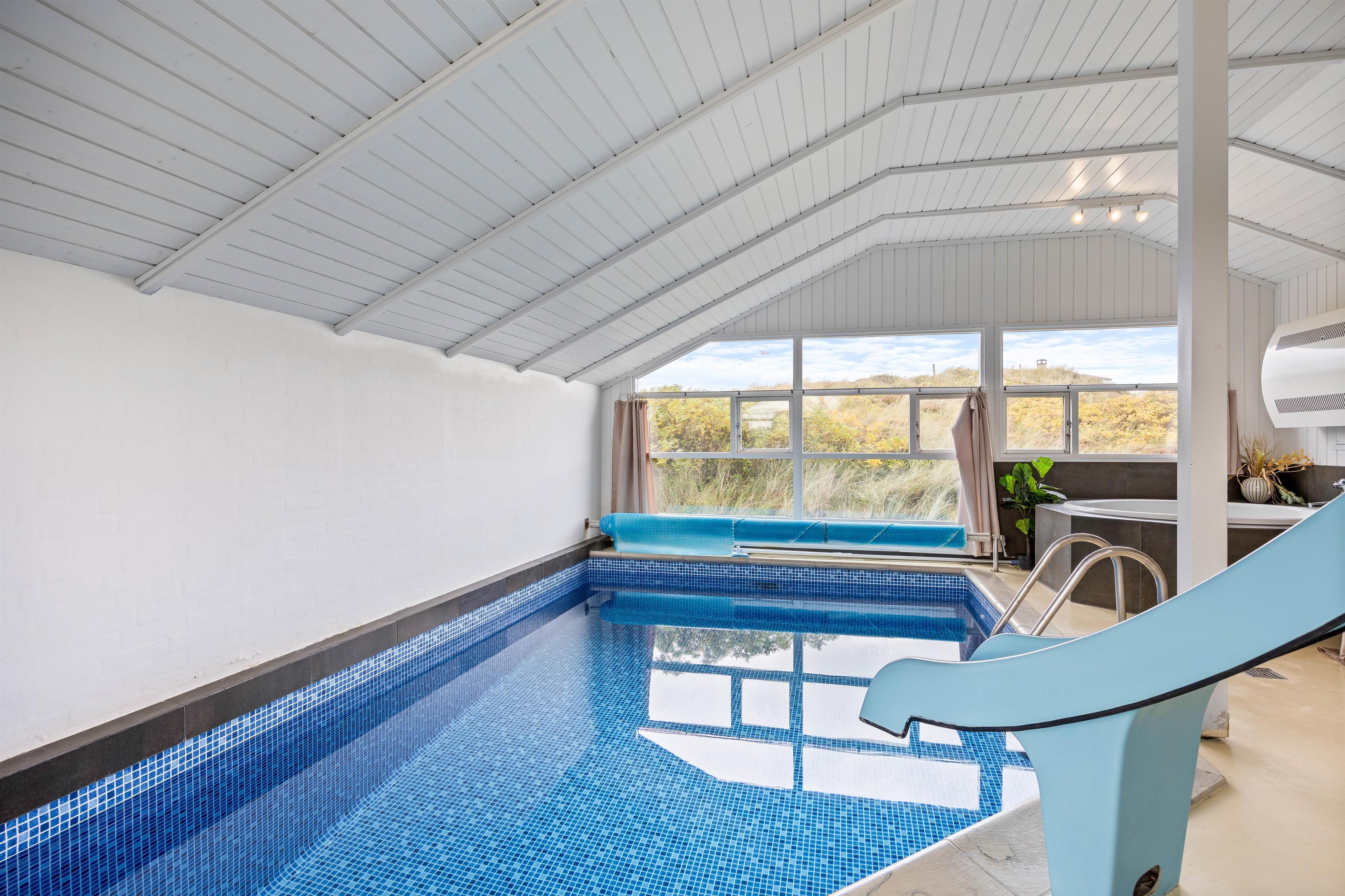 Attention families with children looking for a beach holiday - take a look at this beautiful pool house, renovated in 2022, featuring a slide for little ones. The holiday home also offers a sauna and hot tub, plus modern amenities including a dishwasher, washing machine and tumble dryer.