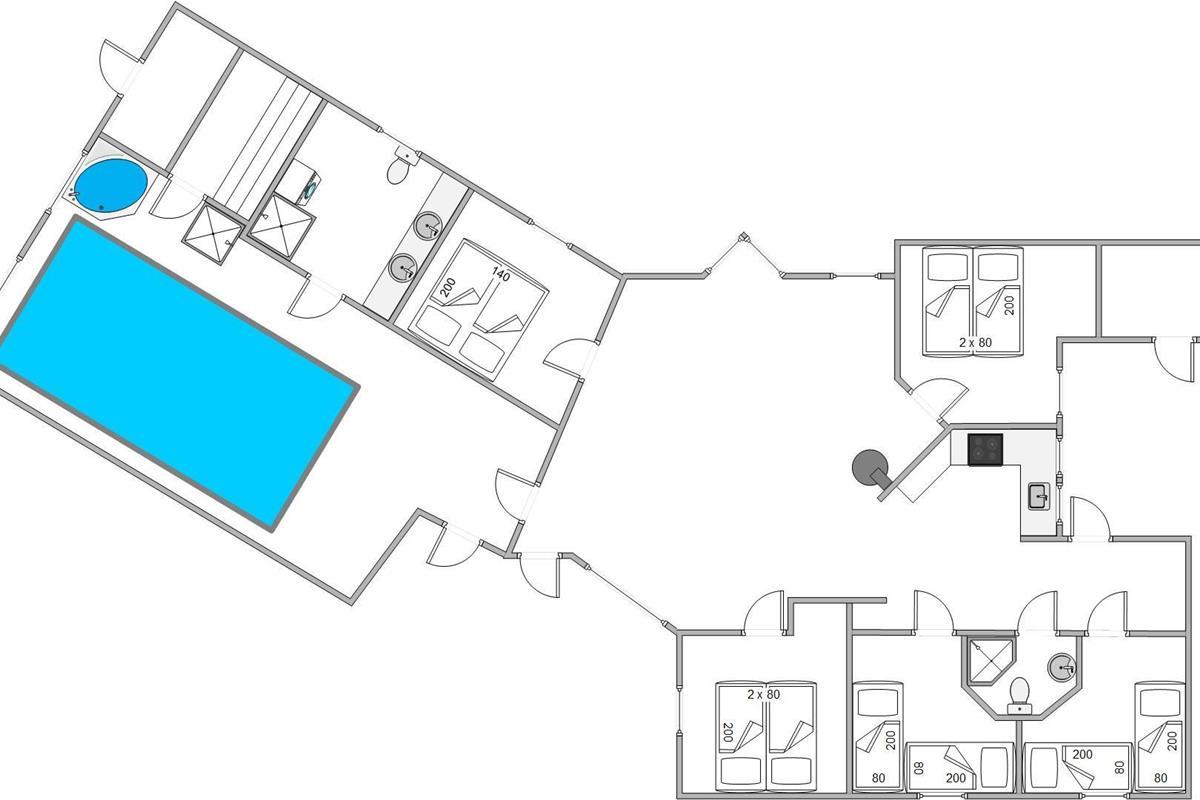 The five bedrooms are furnished with double and single beds, plus wardrobes for your clothes. Up to 10 people can enjoy a wonderful stay here. Please note that the two beds in the single bedrooms measure 70x190 cm, making them more suitable for younger guests.