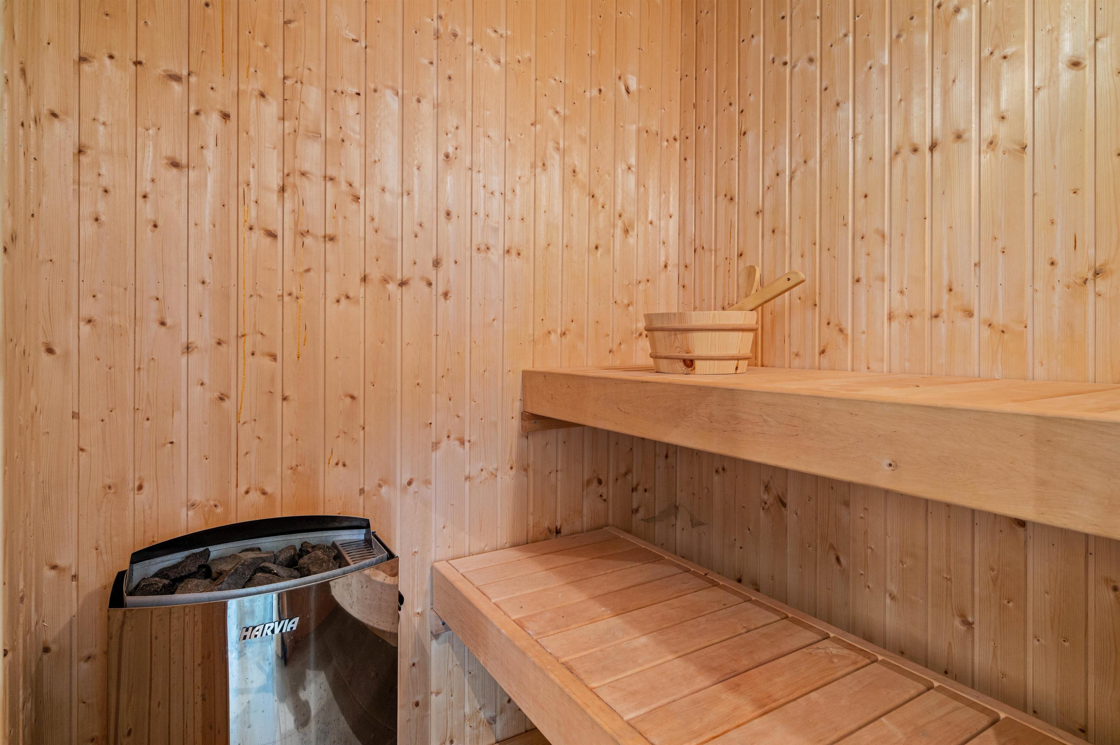 The stylish furnishings extend beyond the living area to the two bathrooms. The main bathroom offers pure relaxation with a sauna and whirlpool. Beautiful laminate flooring runs throughout the living area and the three bedrooms.